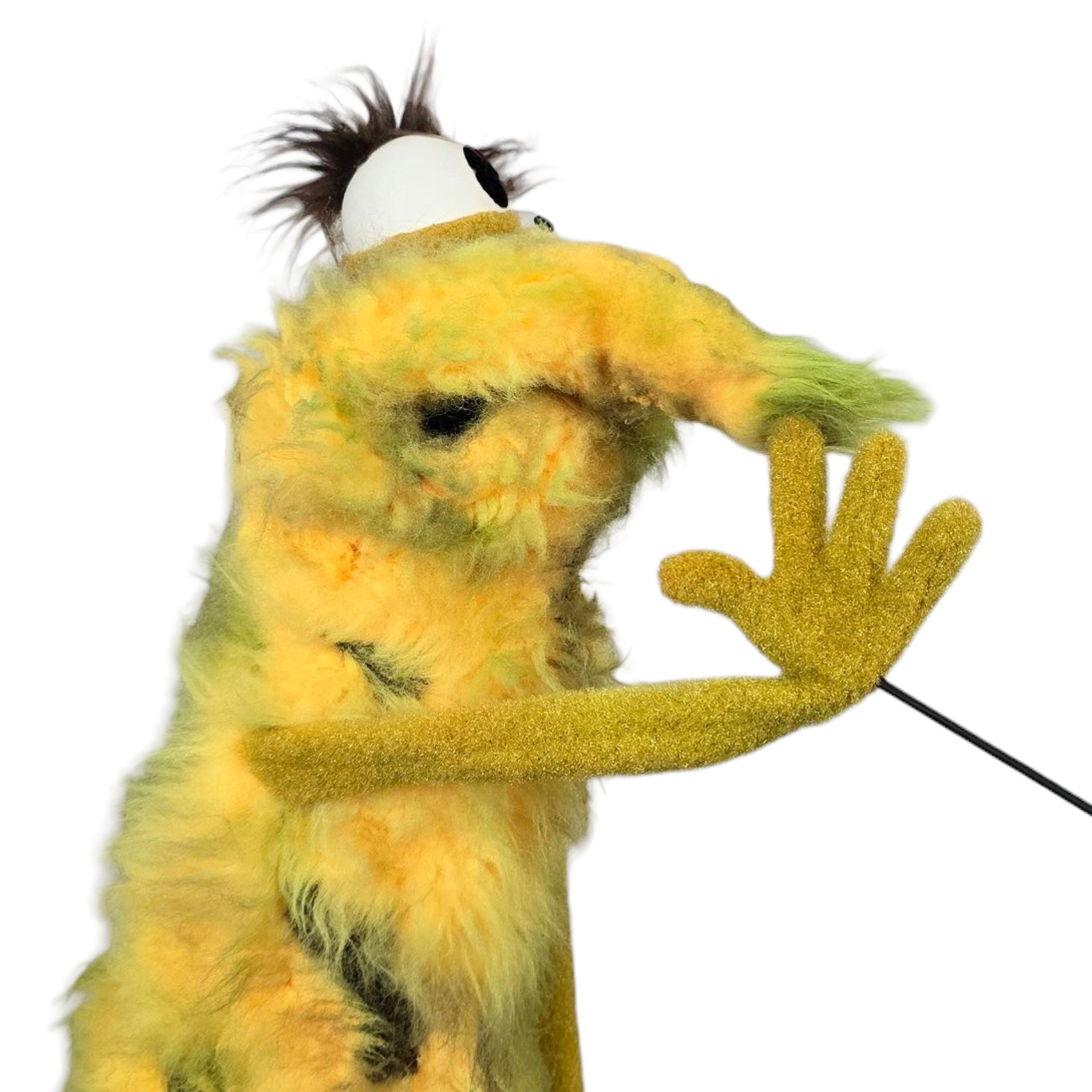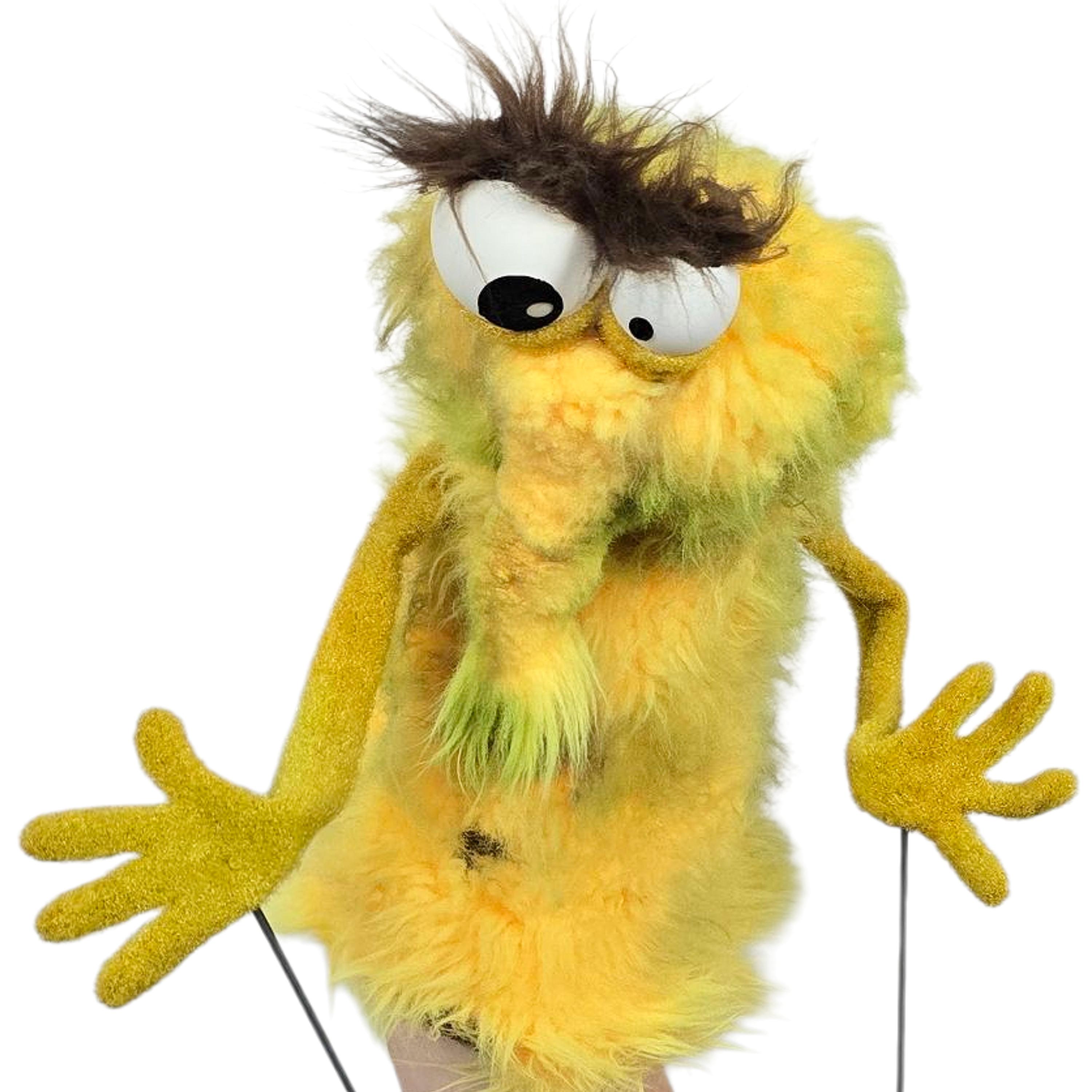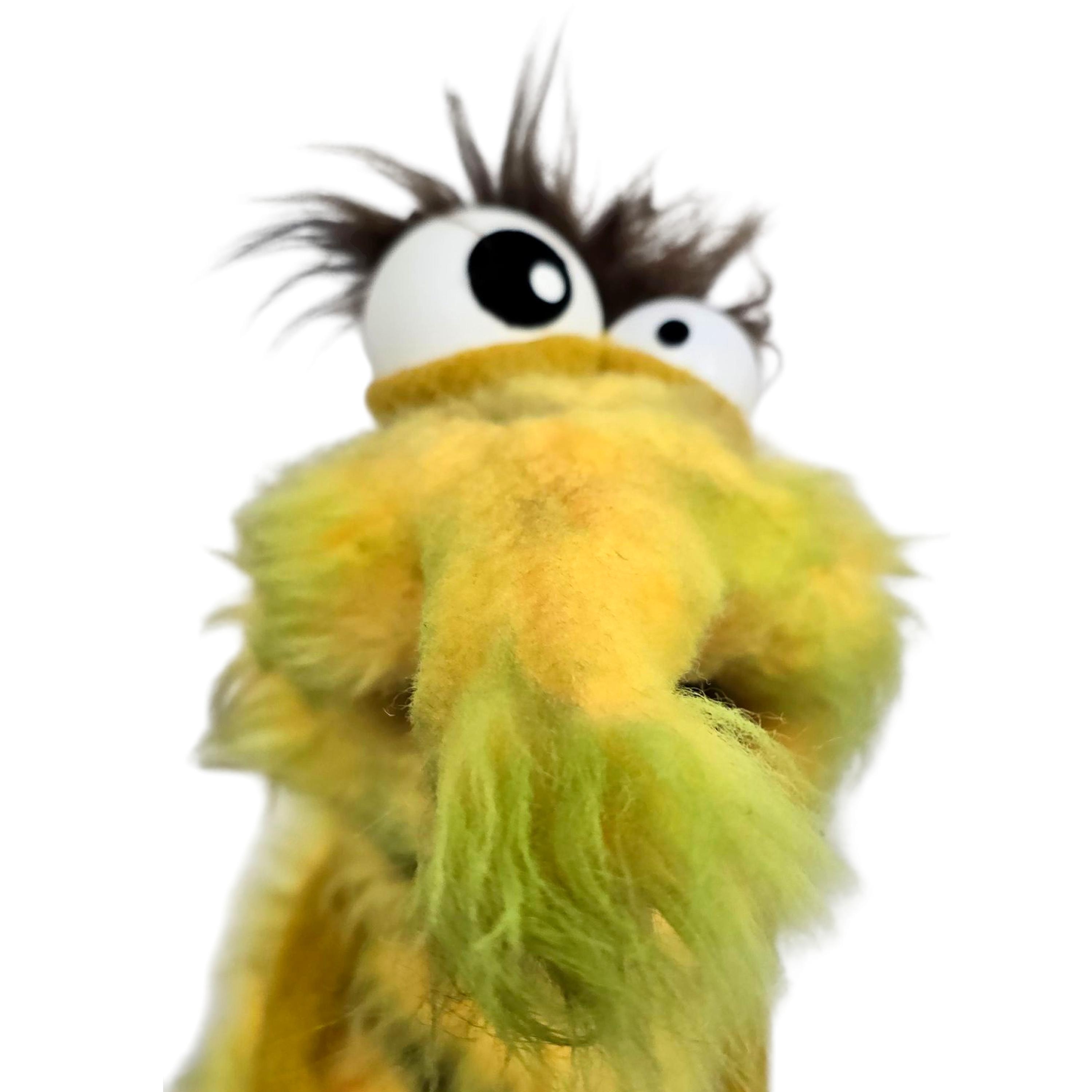 This is a hand and rod puppet of a little monster character. It is of professional quality, using quality fabrics. Made of faux fur and F3 nylon fleece (puppet fleece). With permanent arm rods. See the attached photos for more!