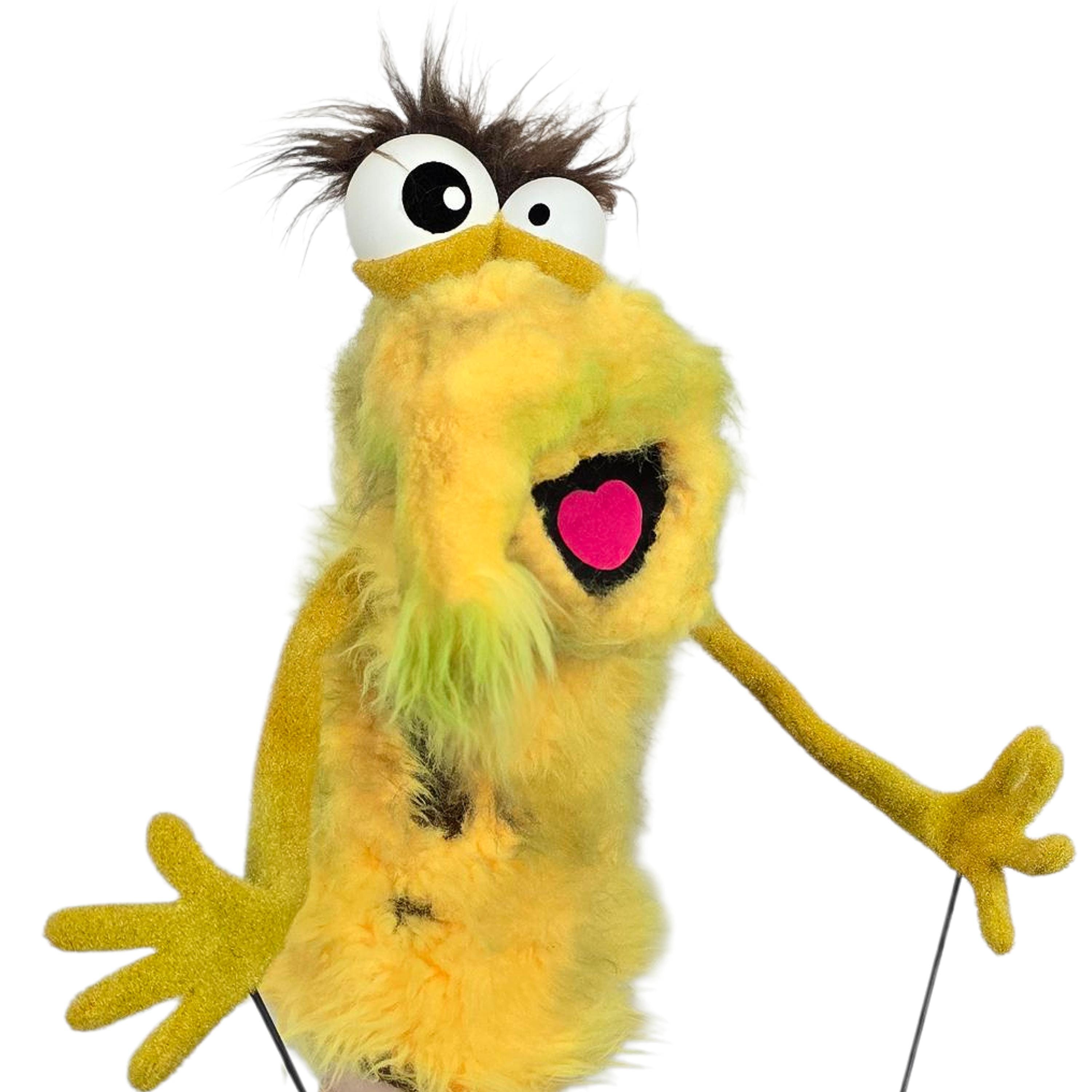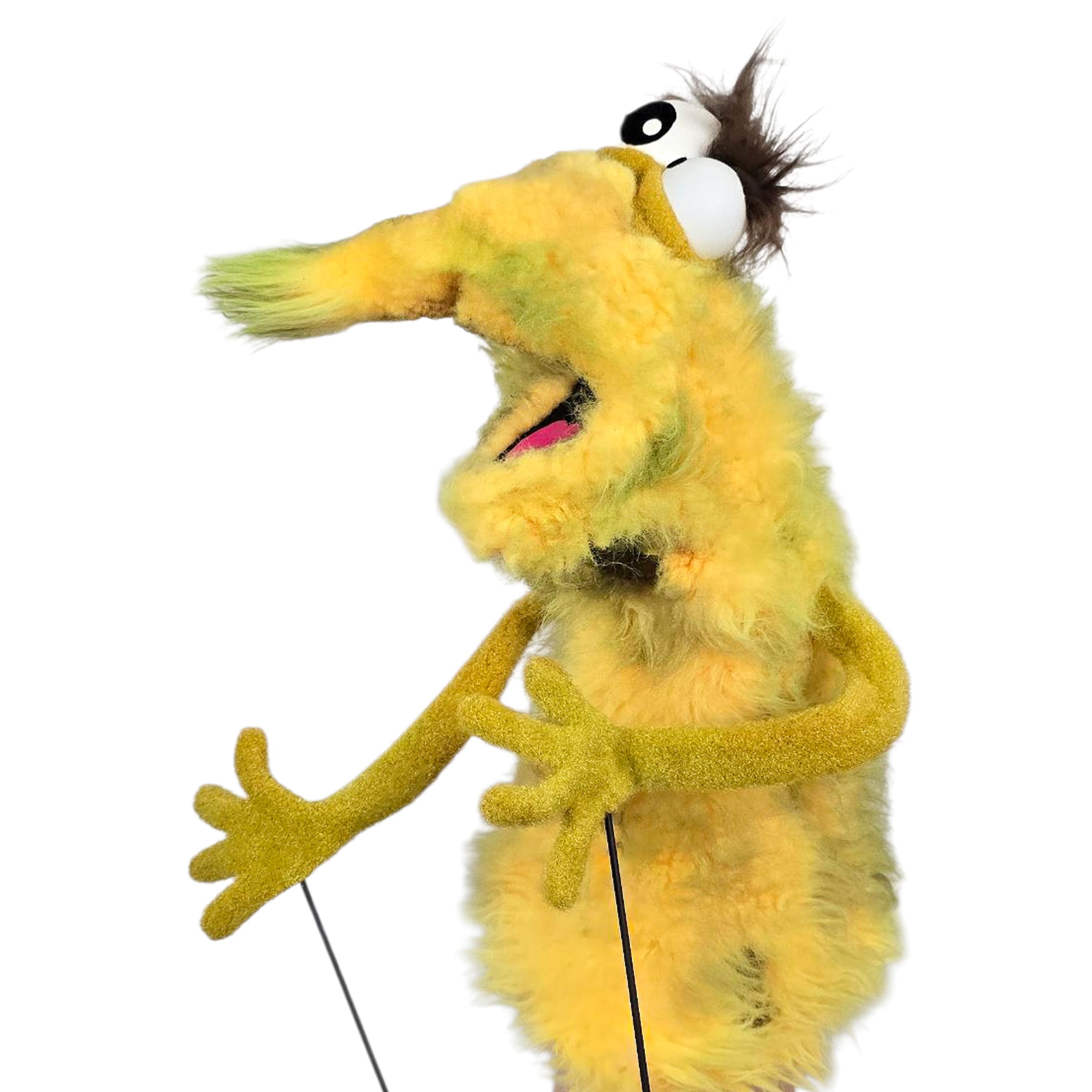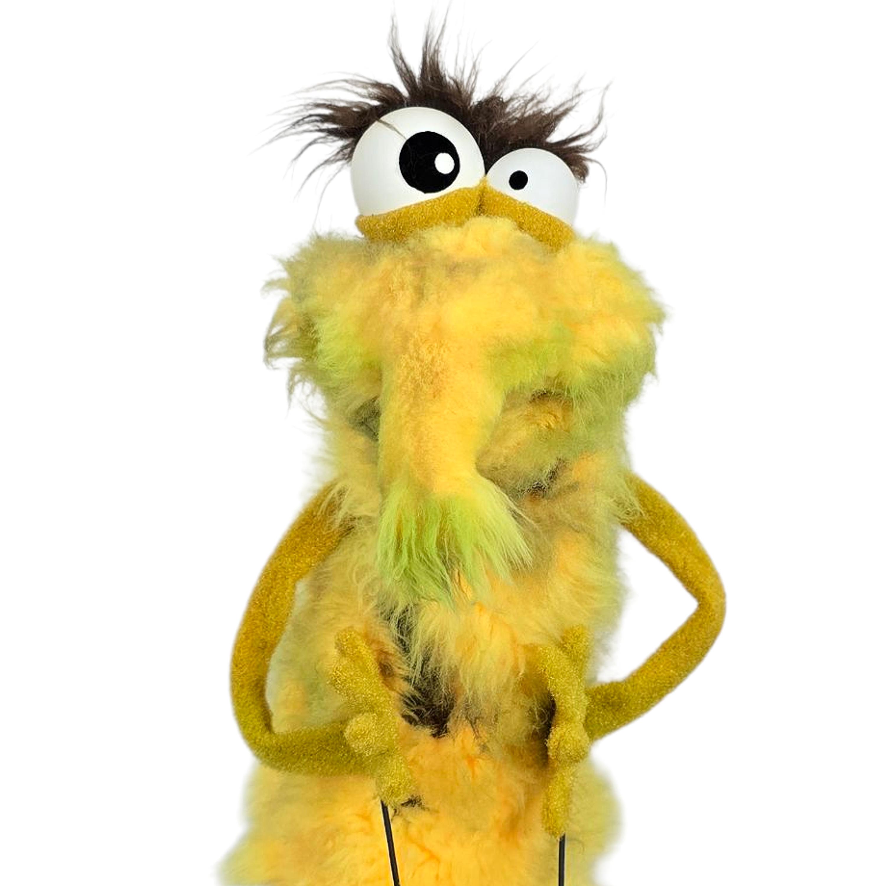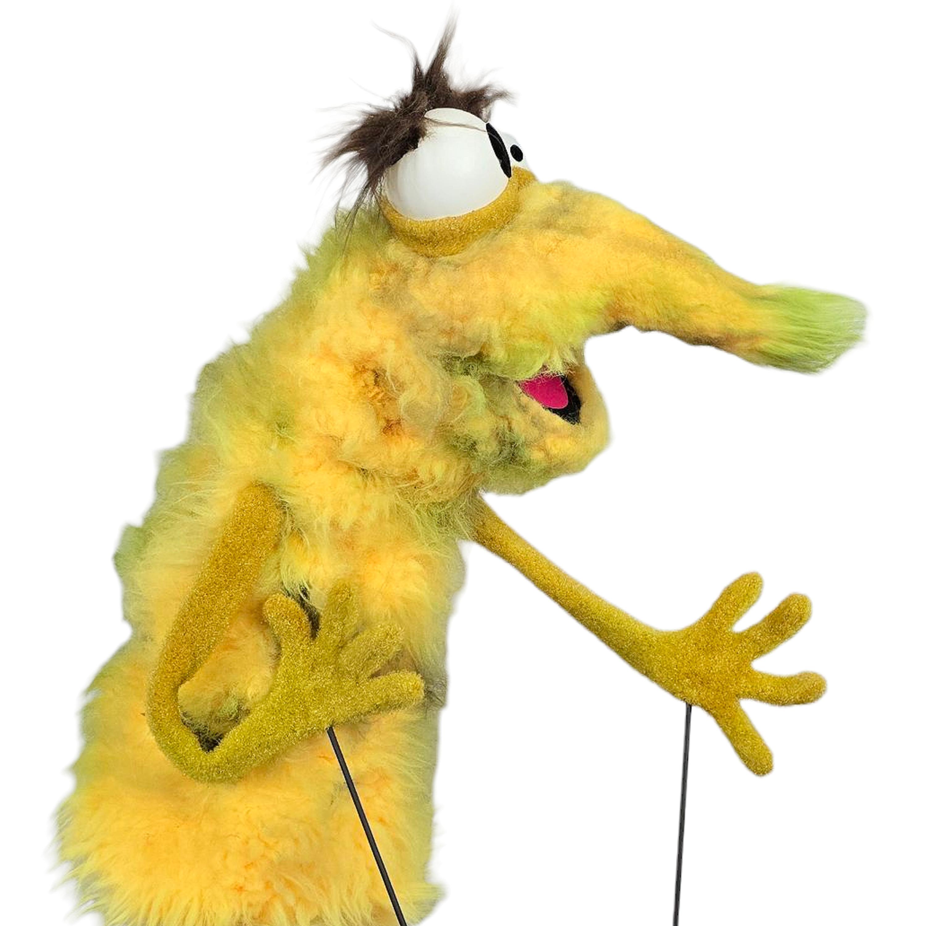 This is a hand and rod puppet of a little monster character. It is of professional quality, using quality fabrics. Made of faux fur and F3 nylon fleece (puppet fleece). With permanent arm rods. See the attached photos for more!
