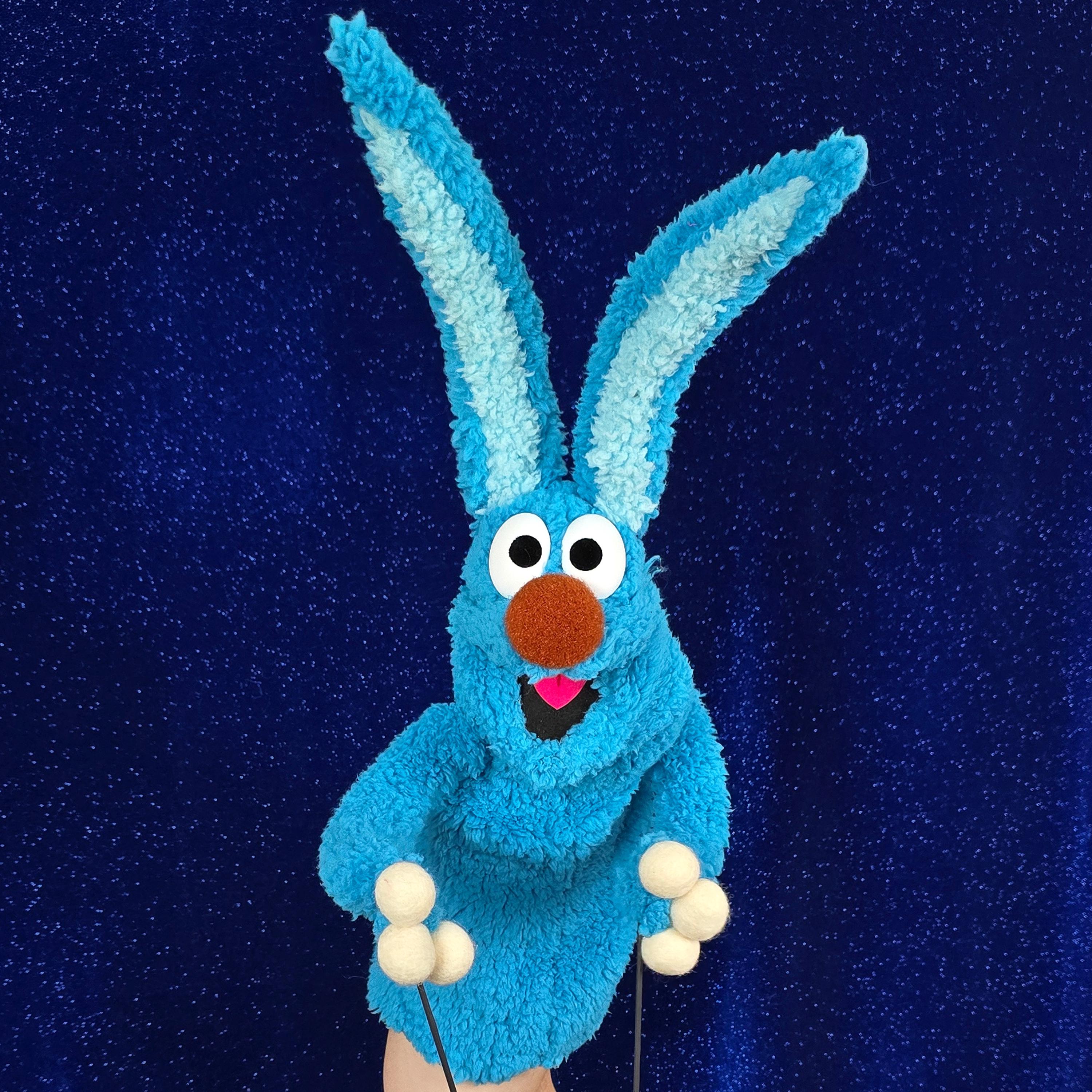 This is a puppet of a rabbit. It is of professional quality, using quality fabrics. Made of faux sherpa fur. With extra bouncy ears. See the attached photos for more!