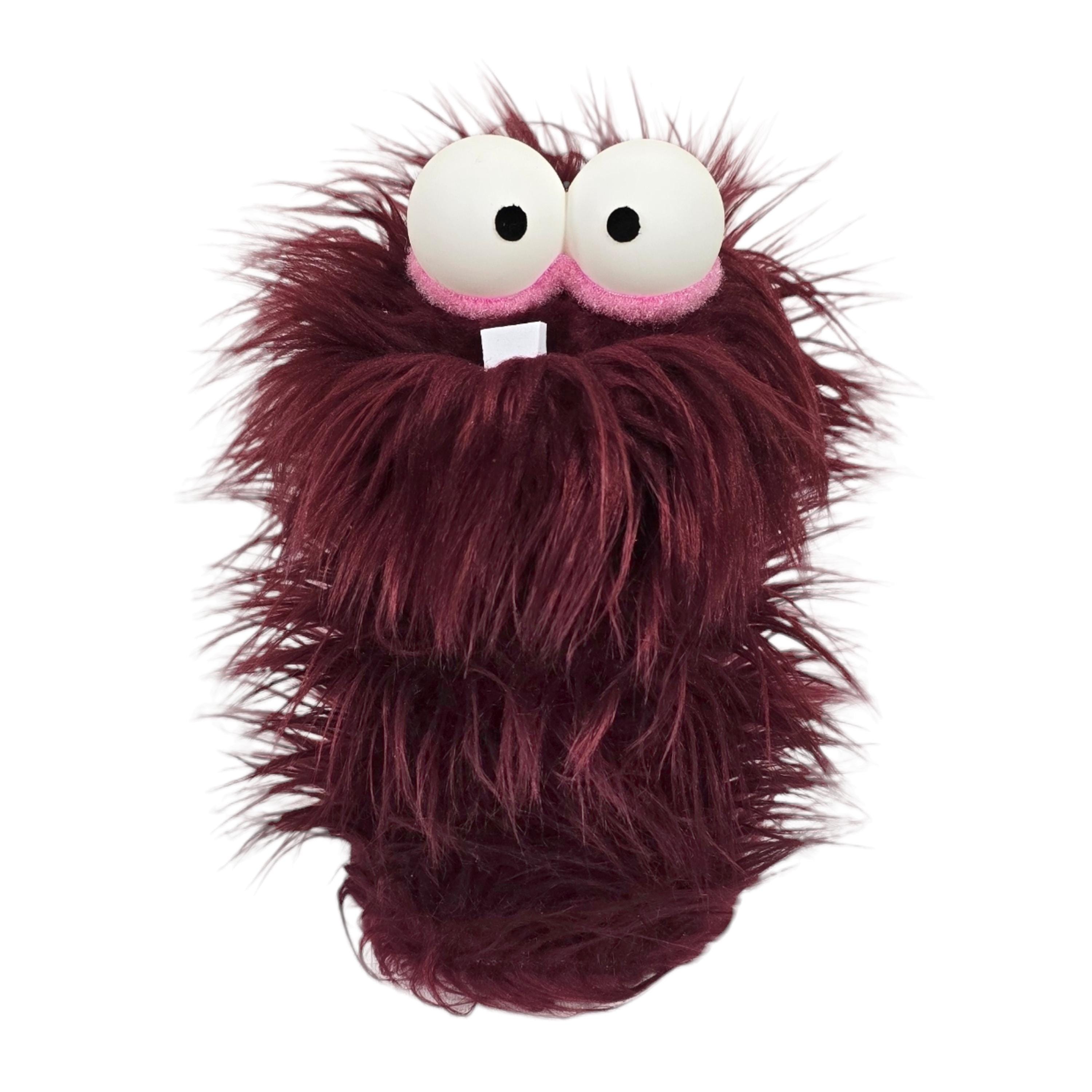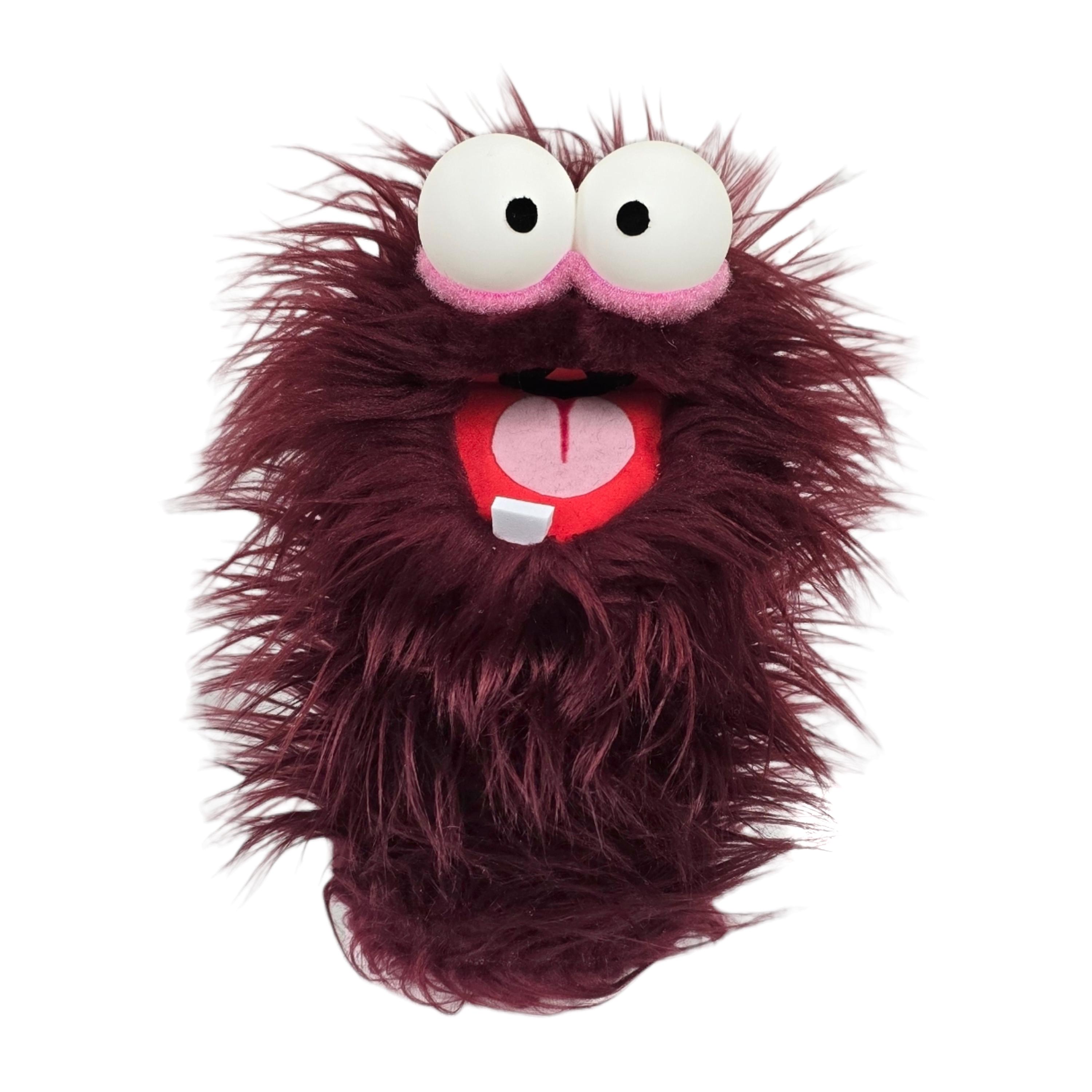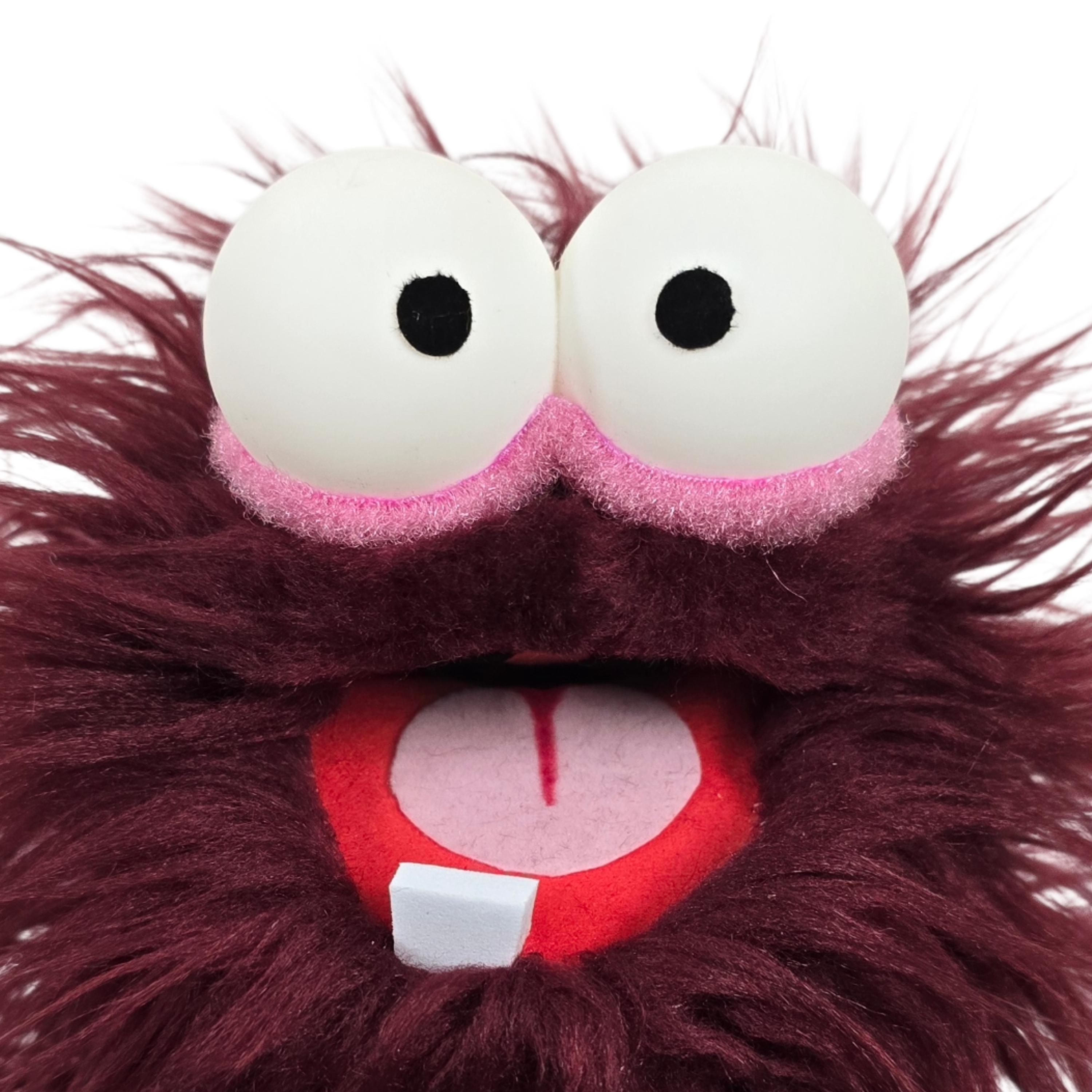 This is a practice puppet of a maroon/ burgundy monster with an underbite and one tooth. Perfect for puppetry practice! It is of professional quality, using quality fabrics. Made of faux fur. See the attached photos for more!