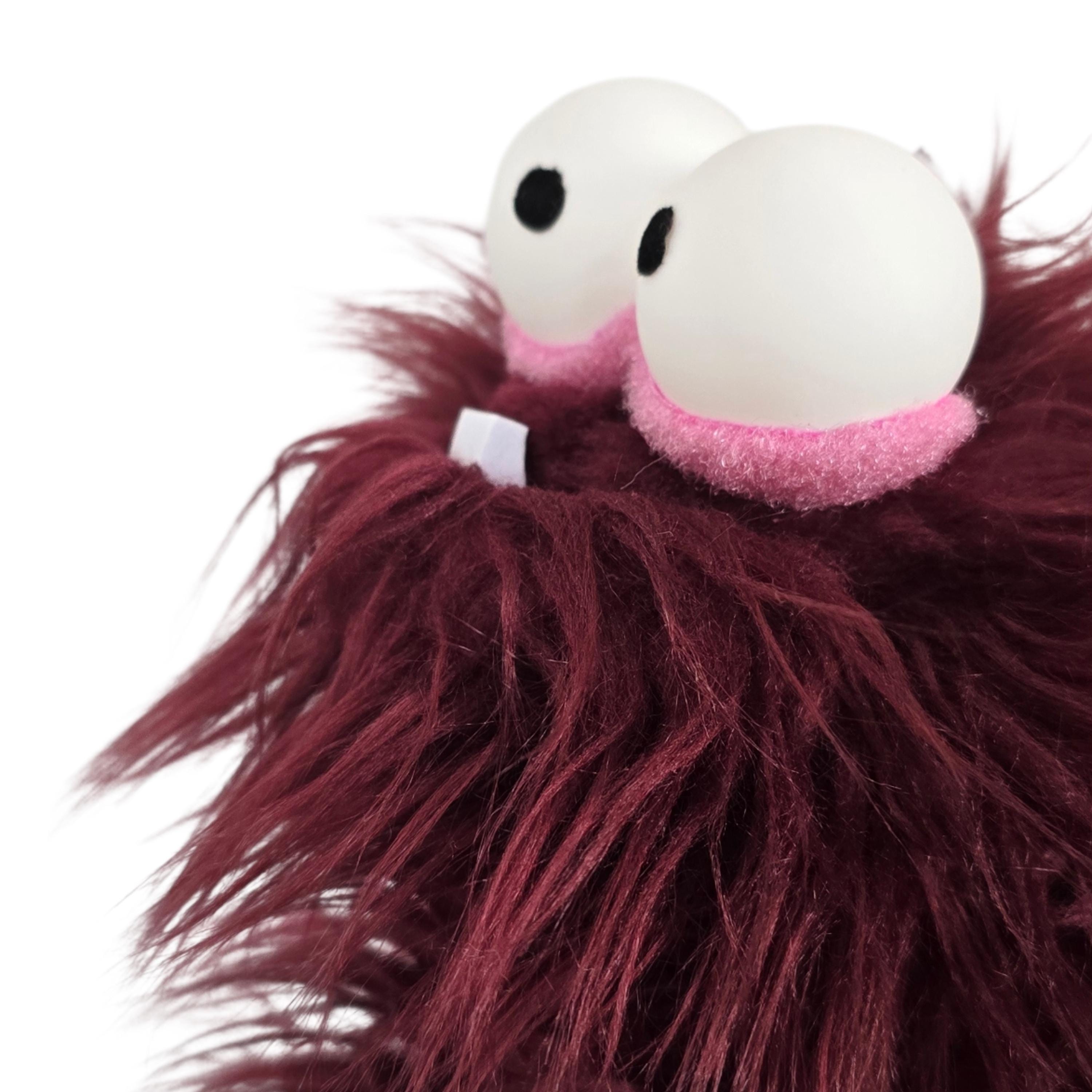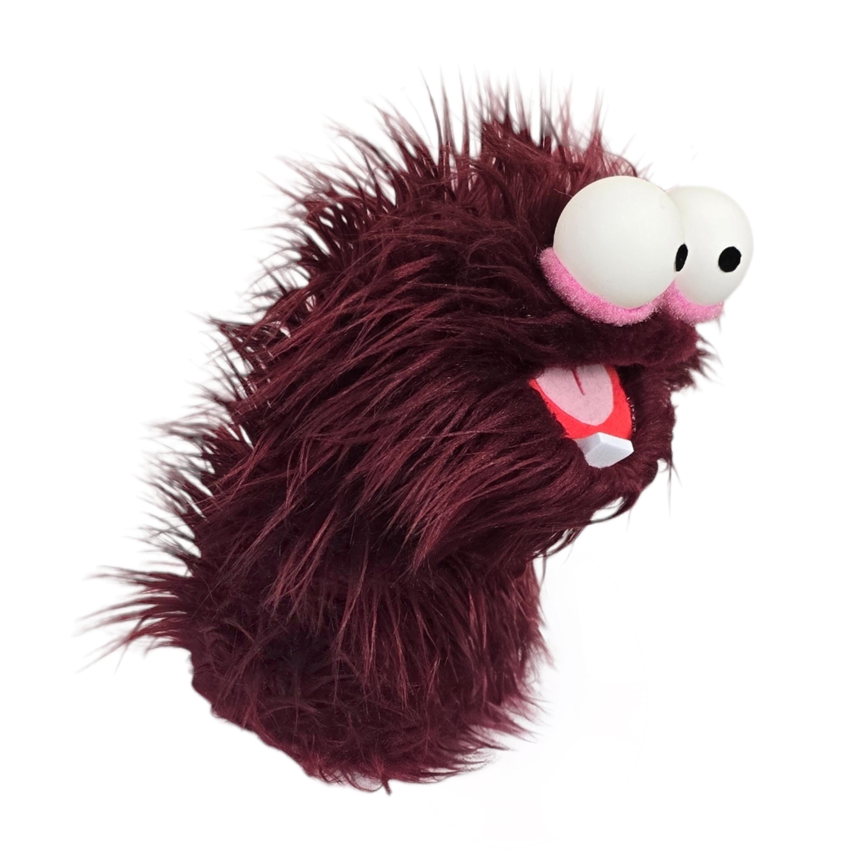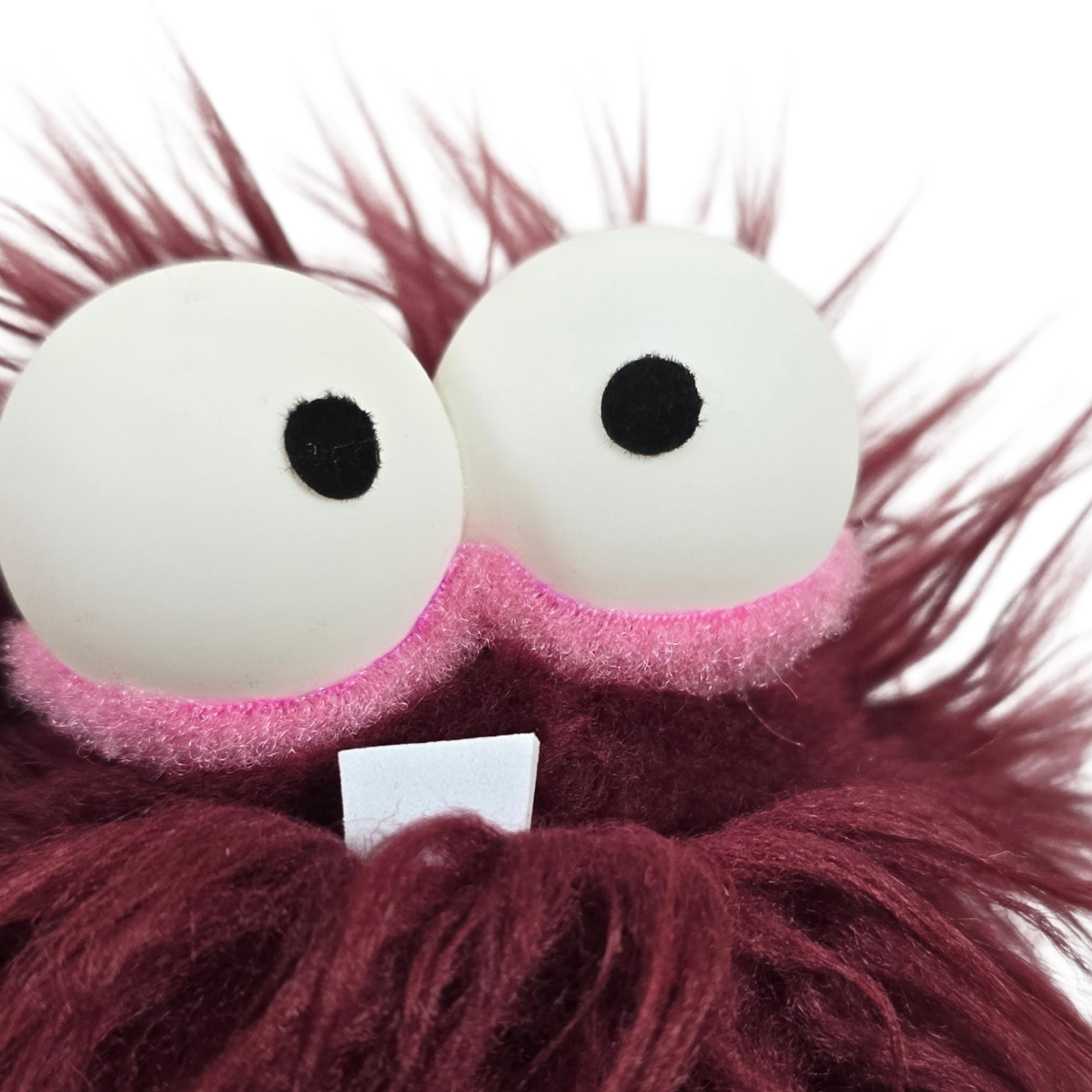 This is a practice puppet of a maroon/ burgundy monster with an underbite and one tooth. Perfect for puppetry practice! It is of professional quality, using quality fabrics. Made of faux fur. See the attached photos for more!
