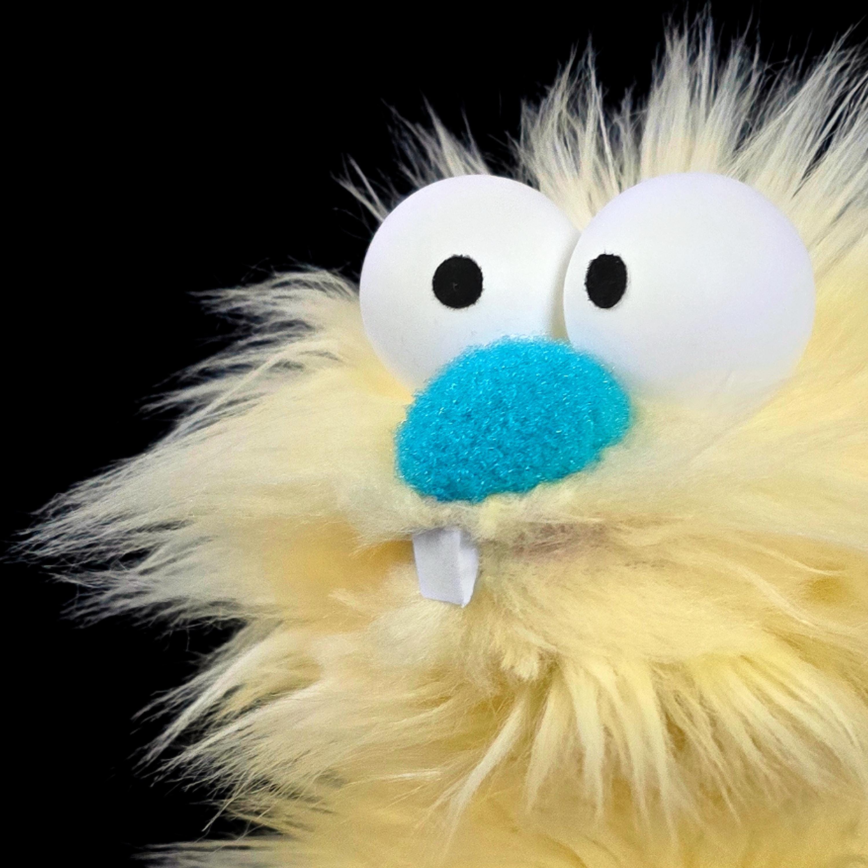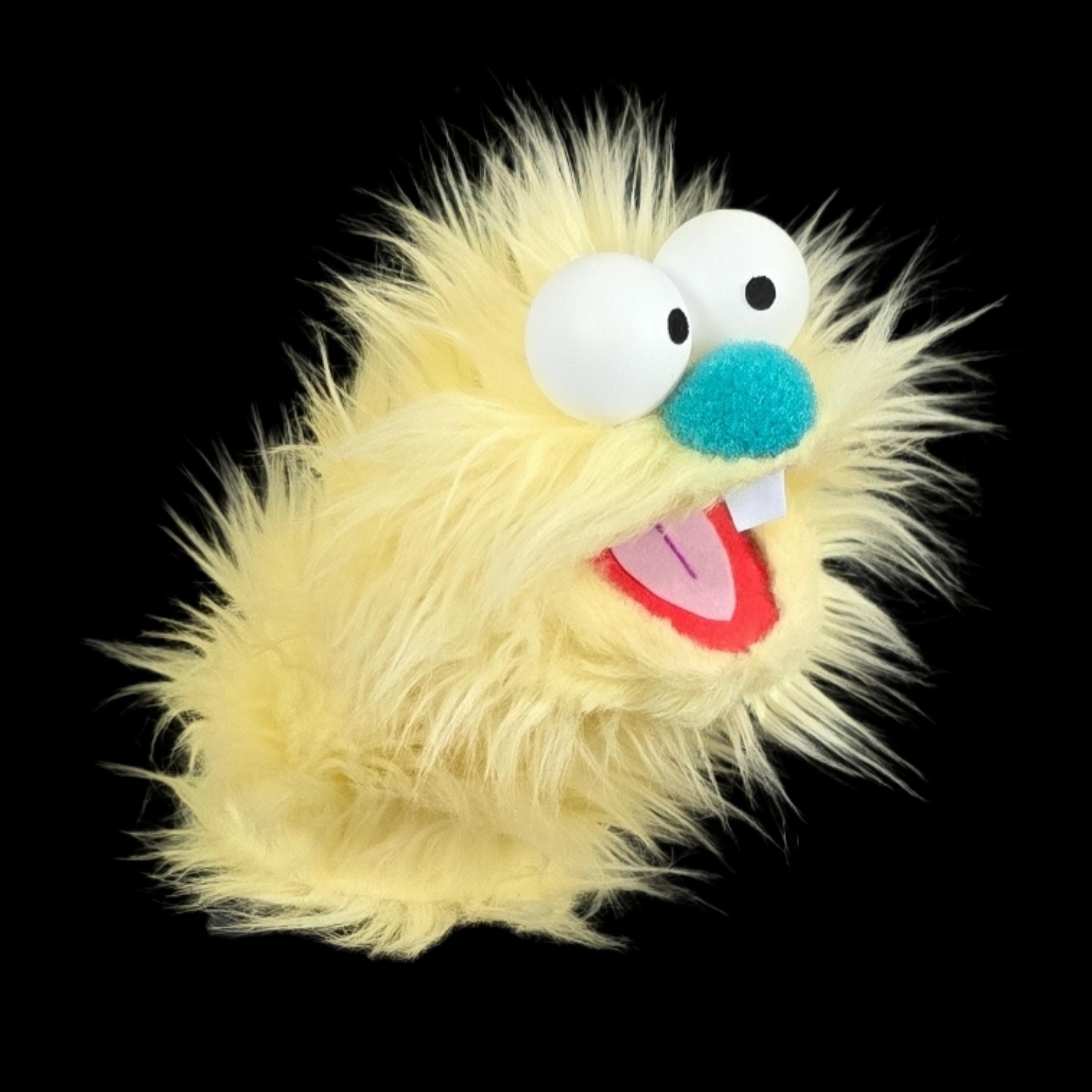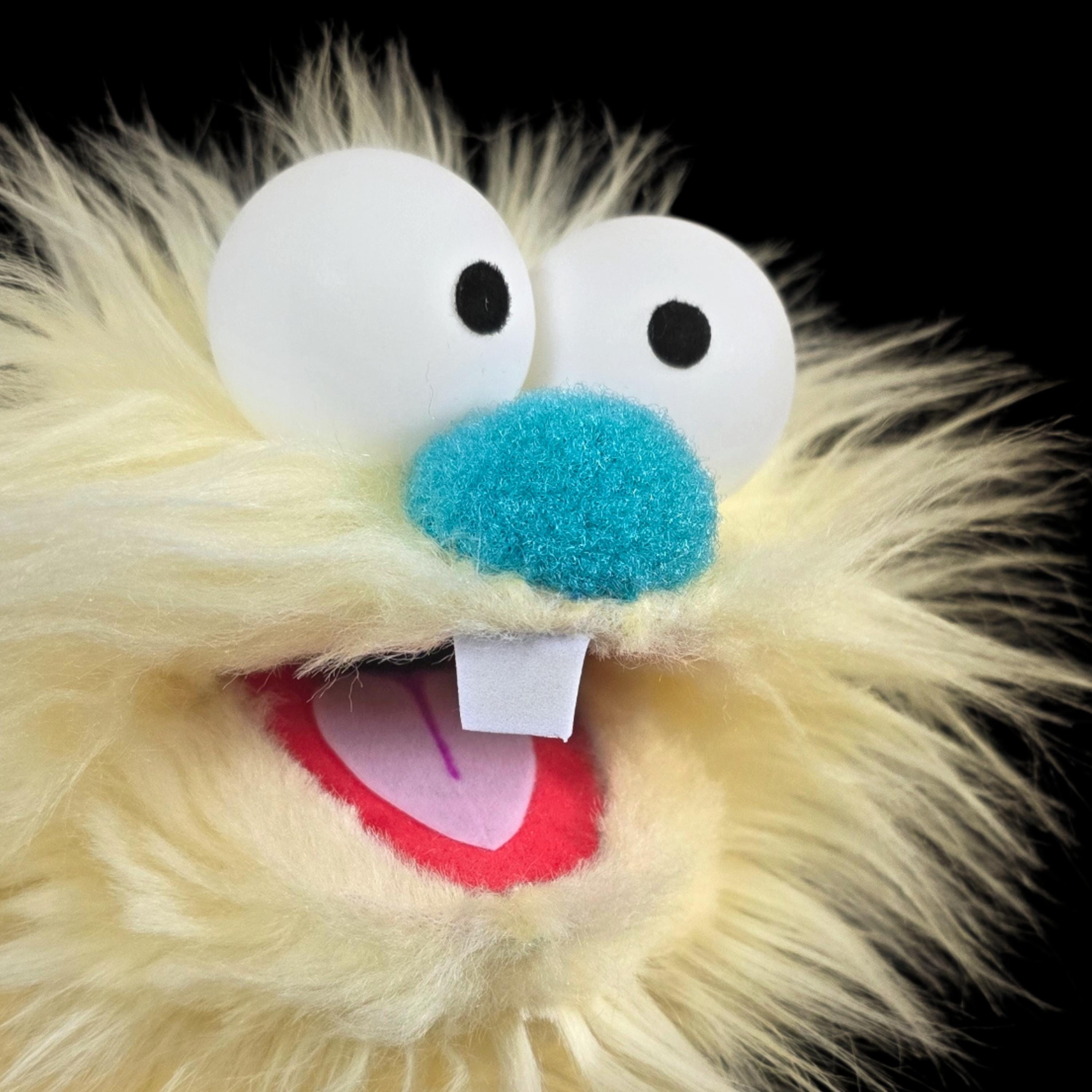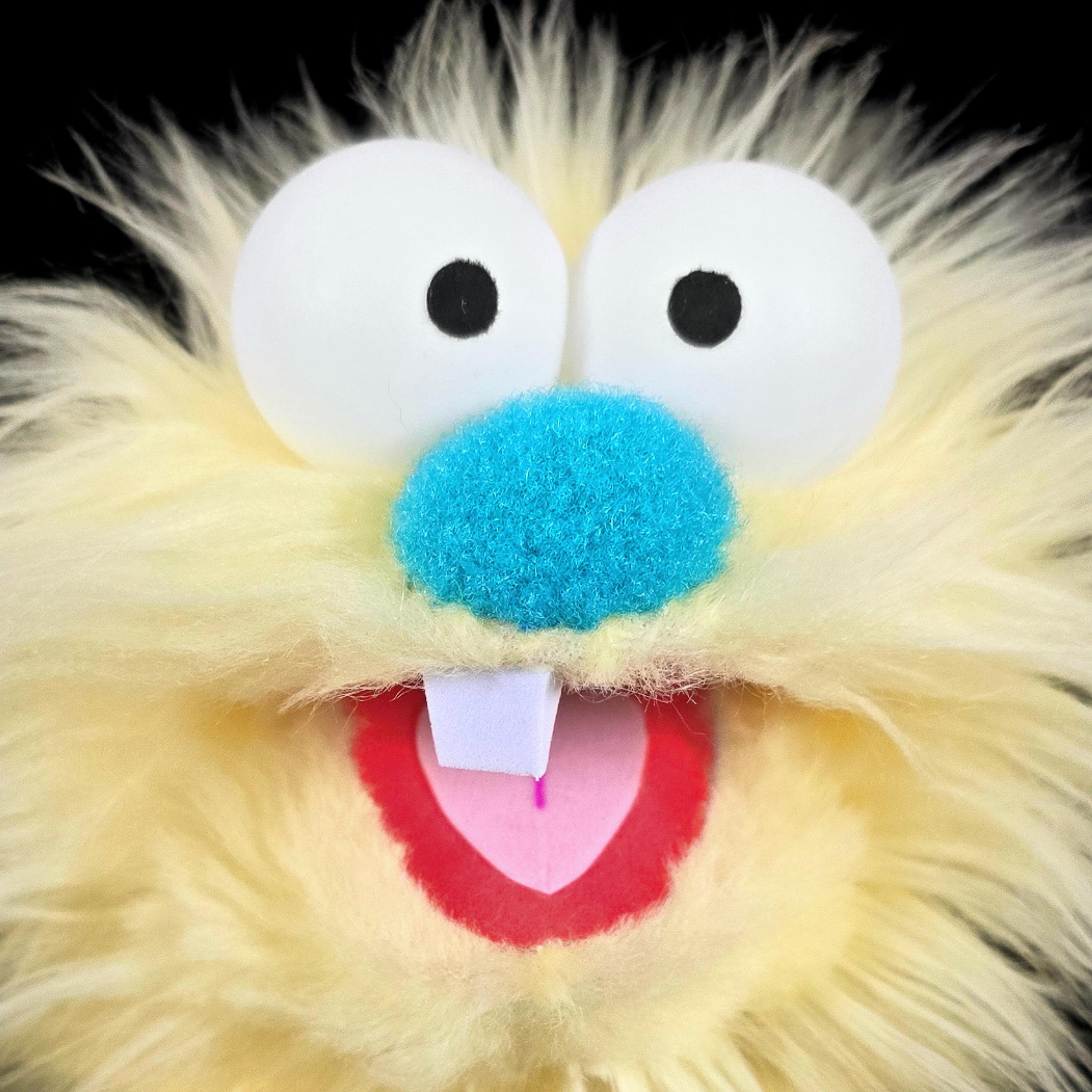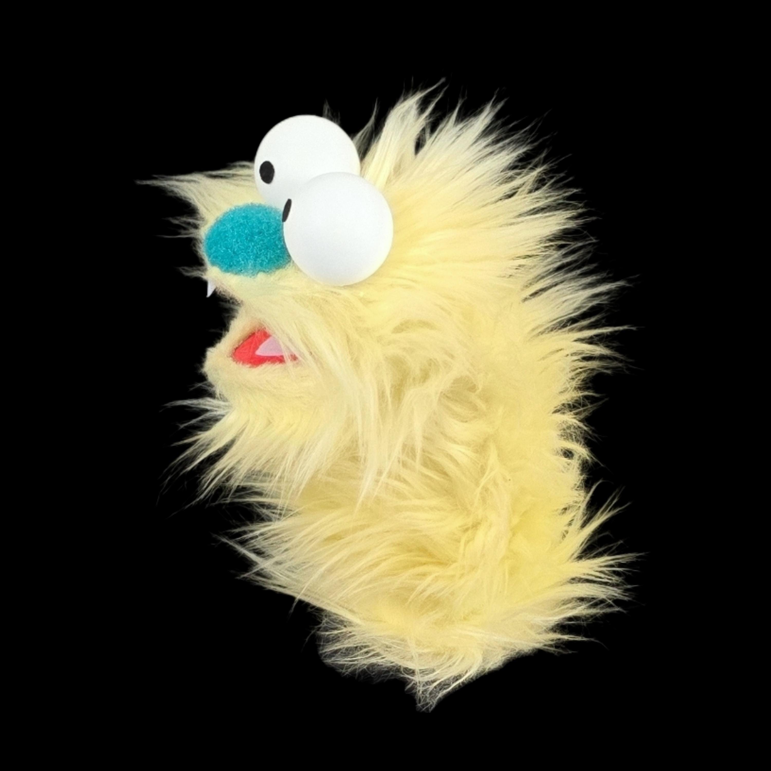 This is a practice puppet of a yellow monster creature with one tooth. Perfect for puppetry practice! It is of professional quality, using quality fabrics. Made of faux fur. See the attached photos for more!