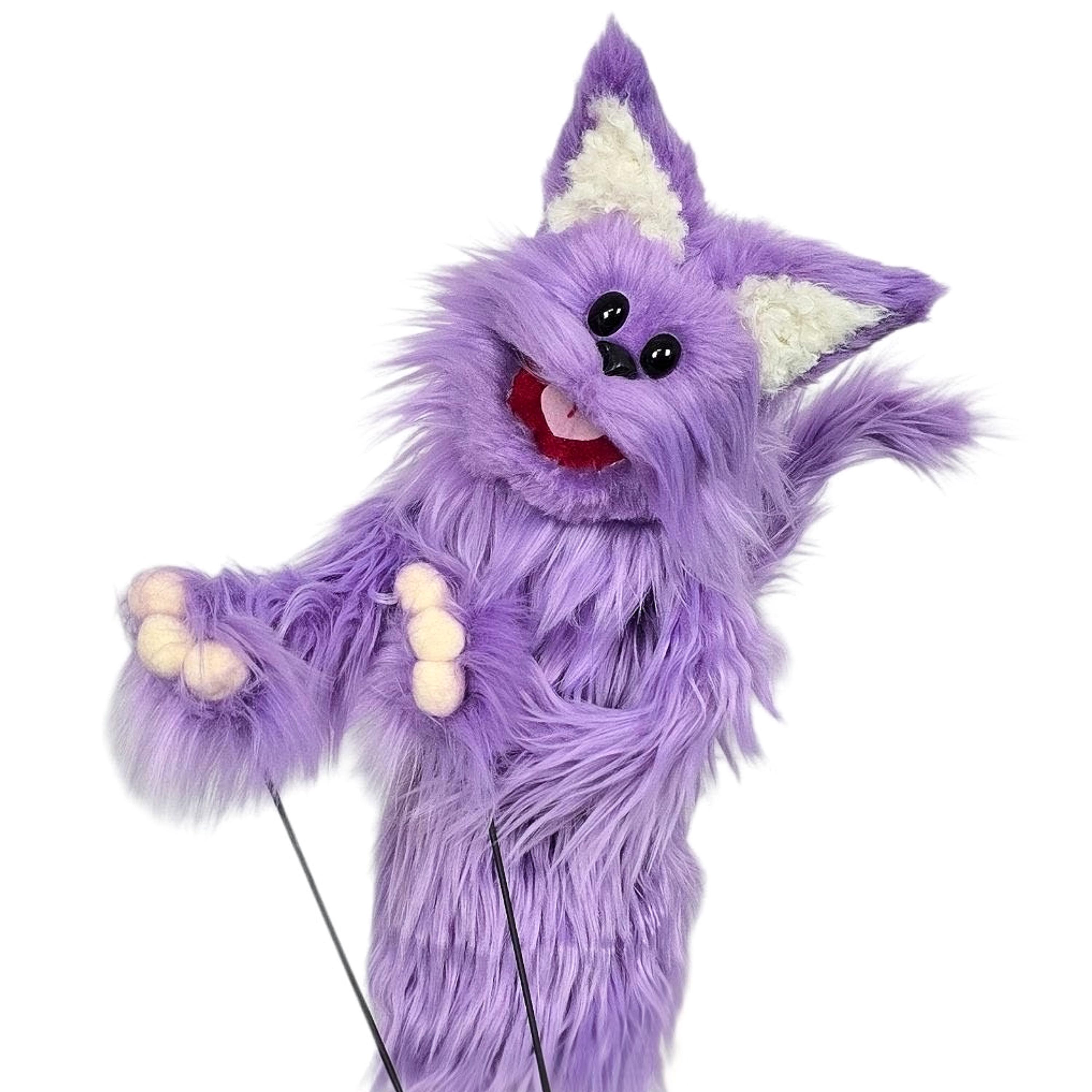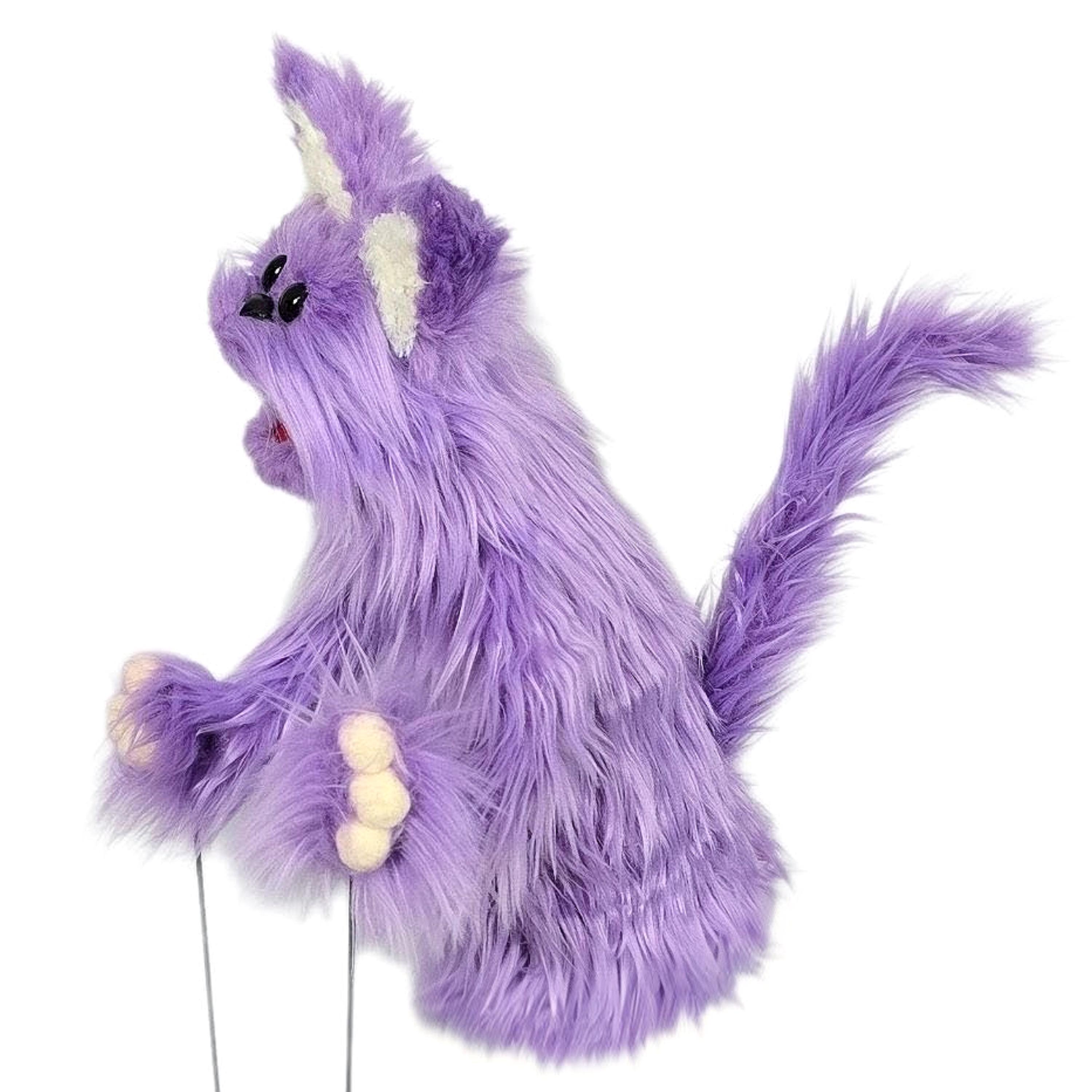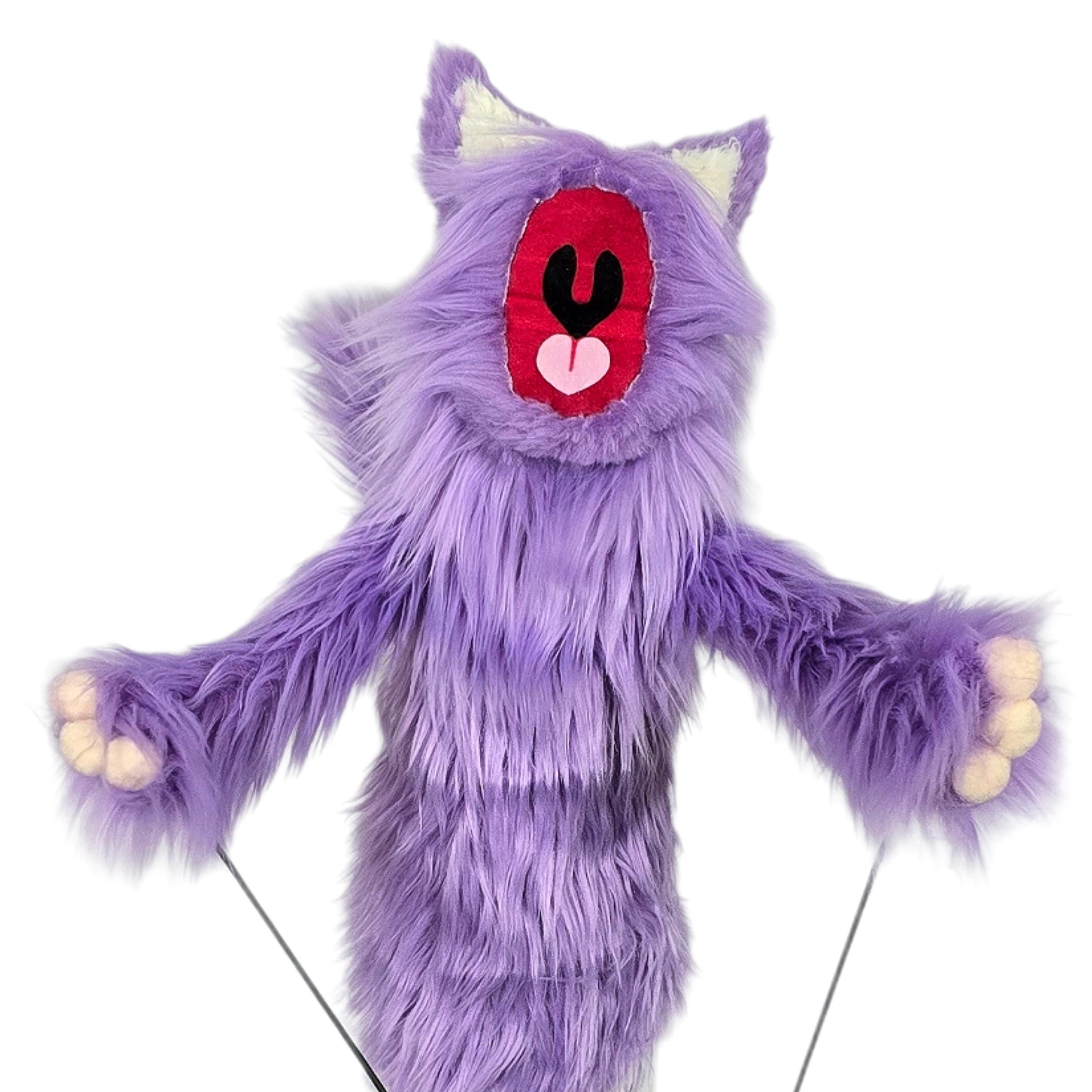 This is a hand and rod puppet of a purple cat character. It is of professional quality, using quality fabrics. Made of foam and super soft faux fur. With permanent arm rods and poseable tail. See the attached photos for more!