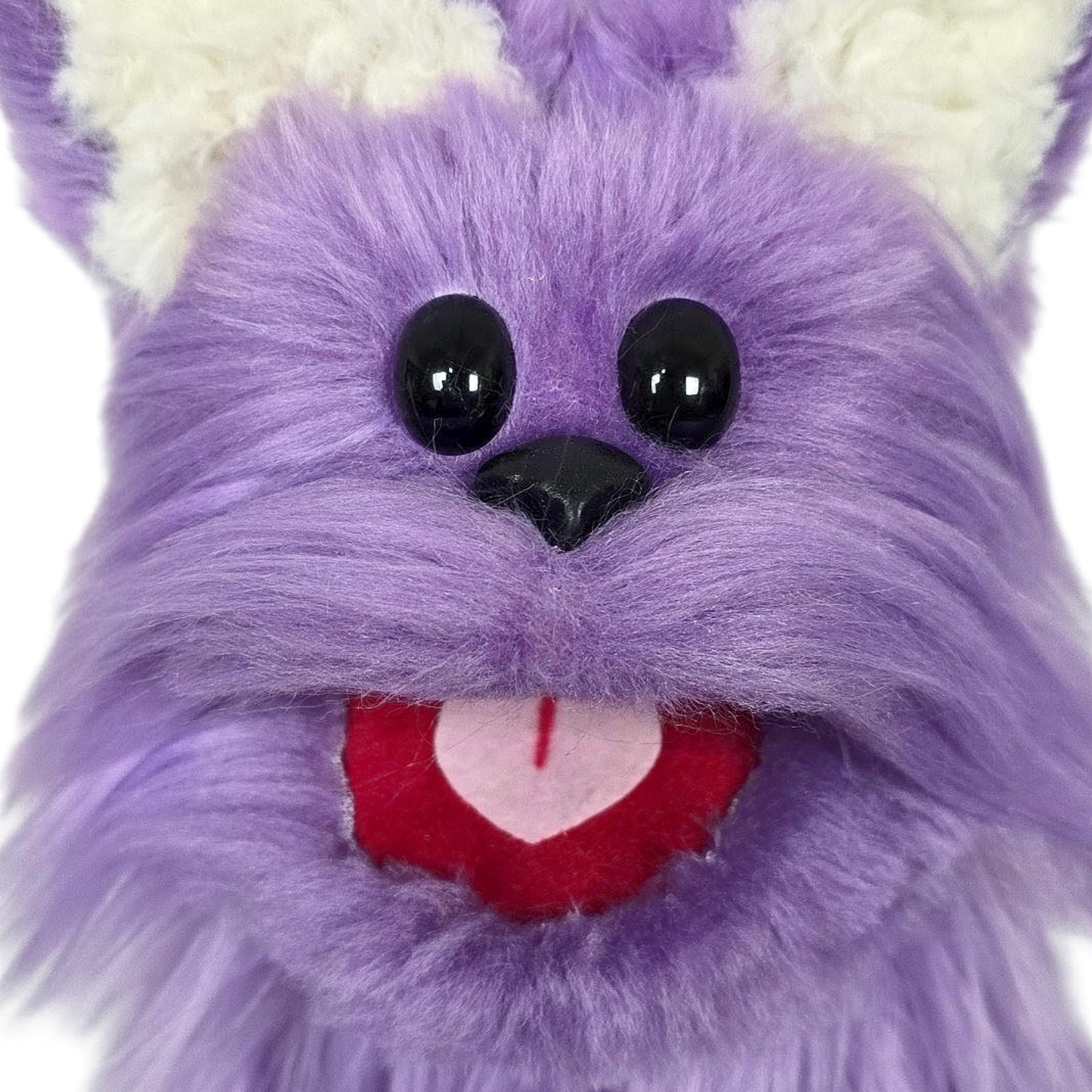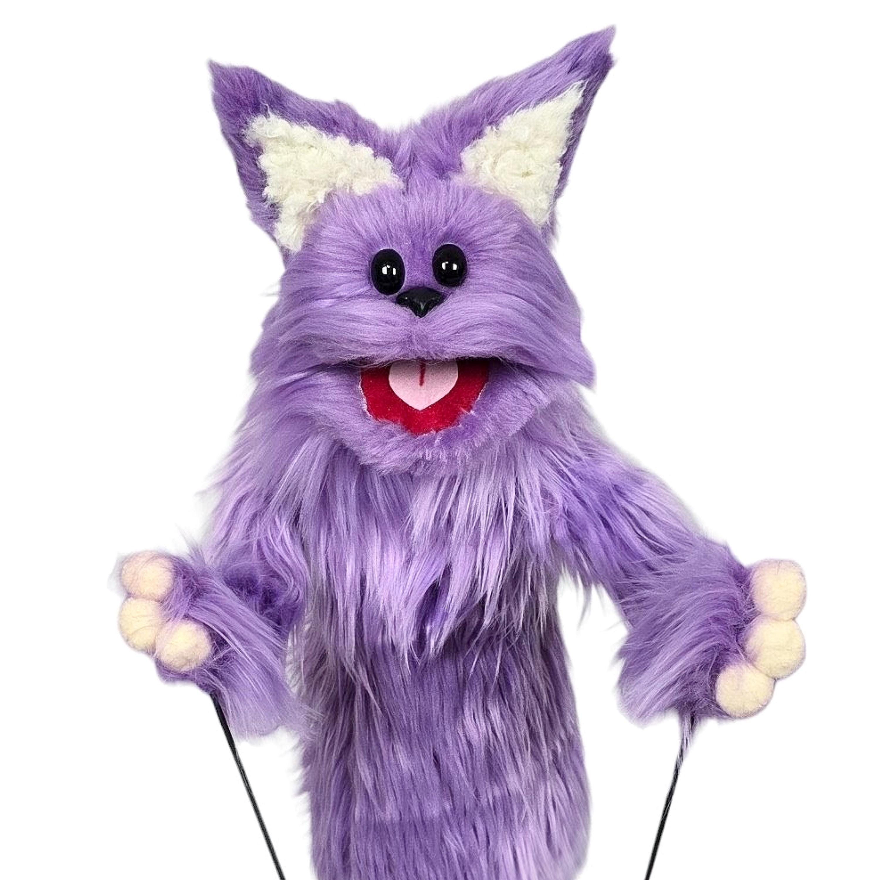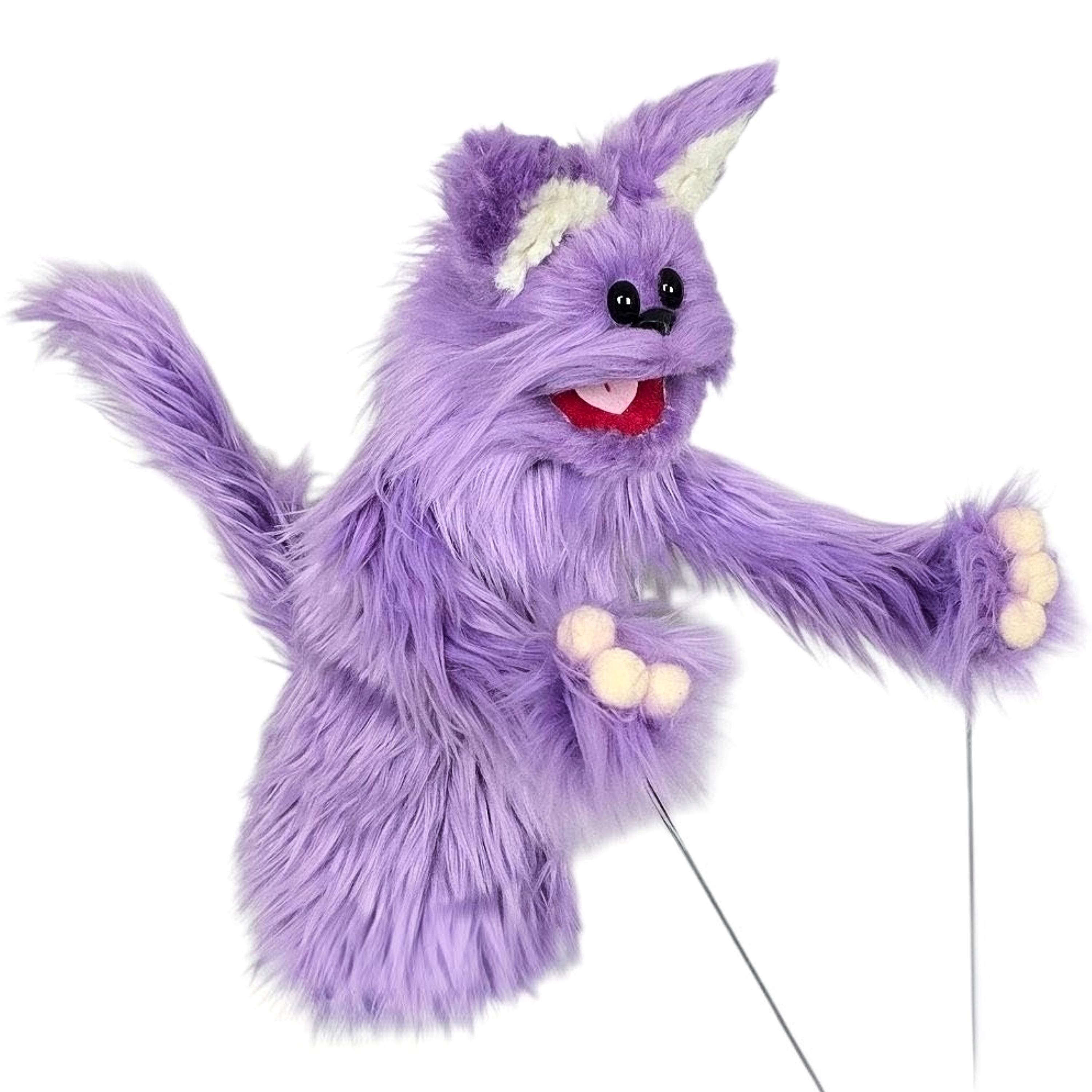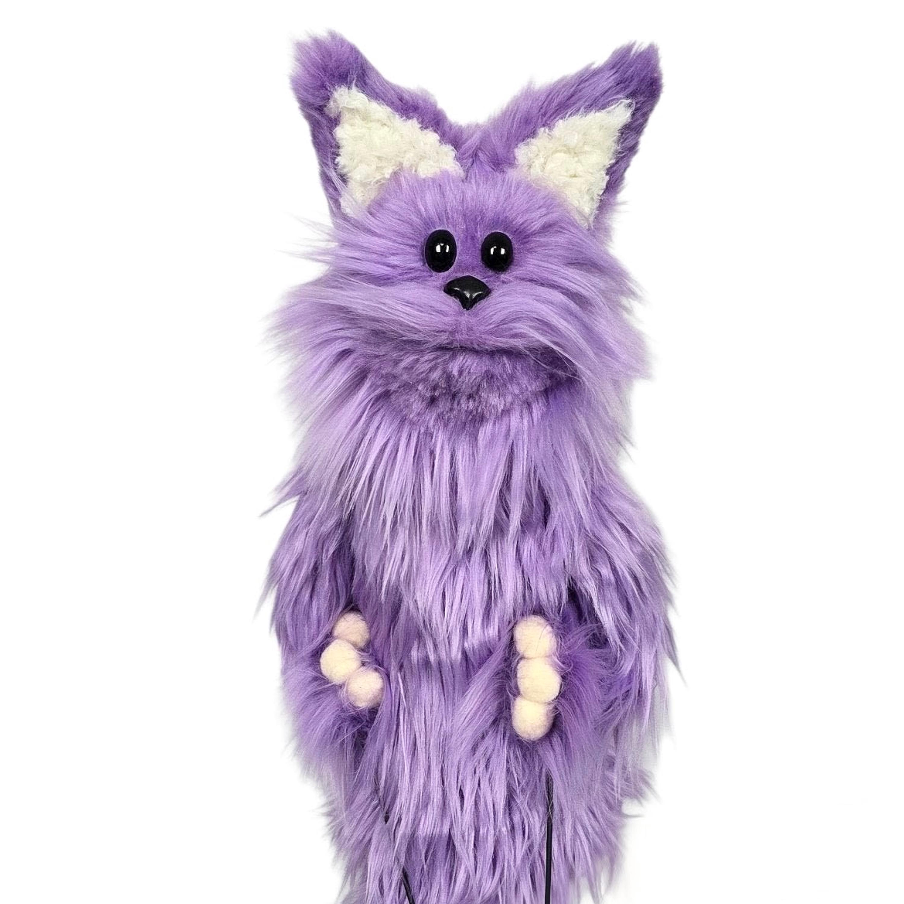 This is a hand and rod puppet of a purple cat character. It is of professional quality, using quality fabrics. Made of foam and super soft faux fur. With permanent arm rods and poseable tail. See the attached photos for more!