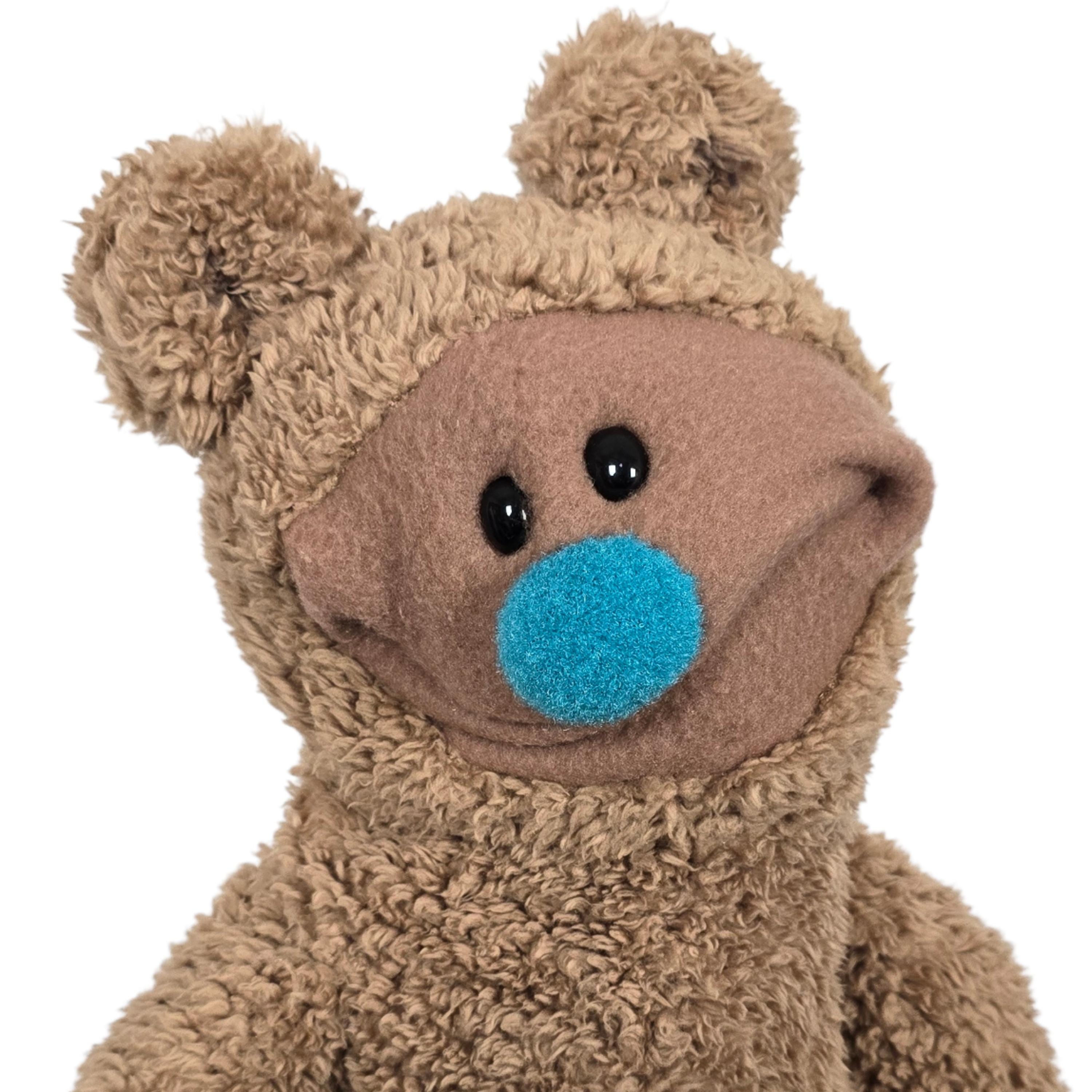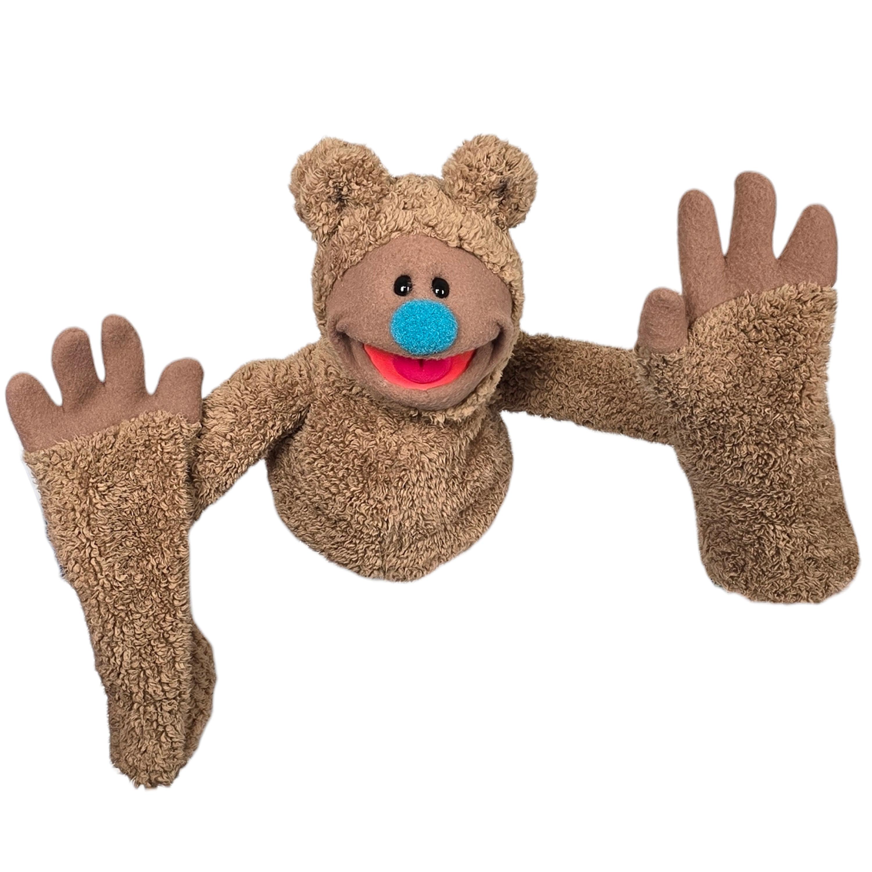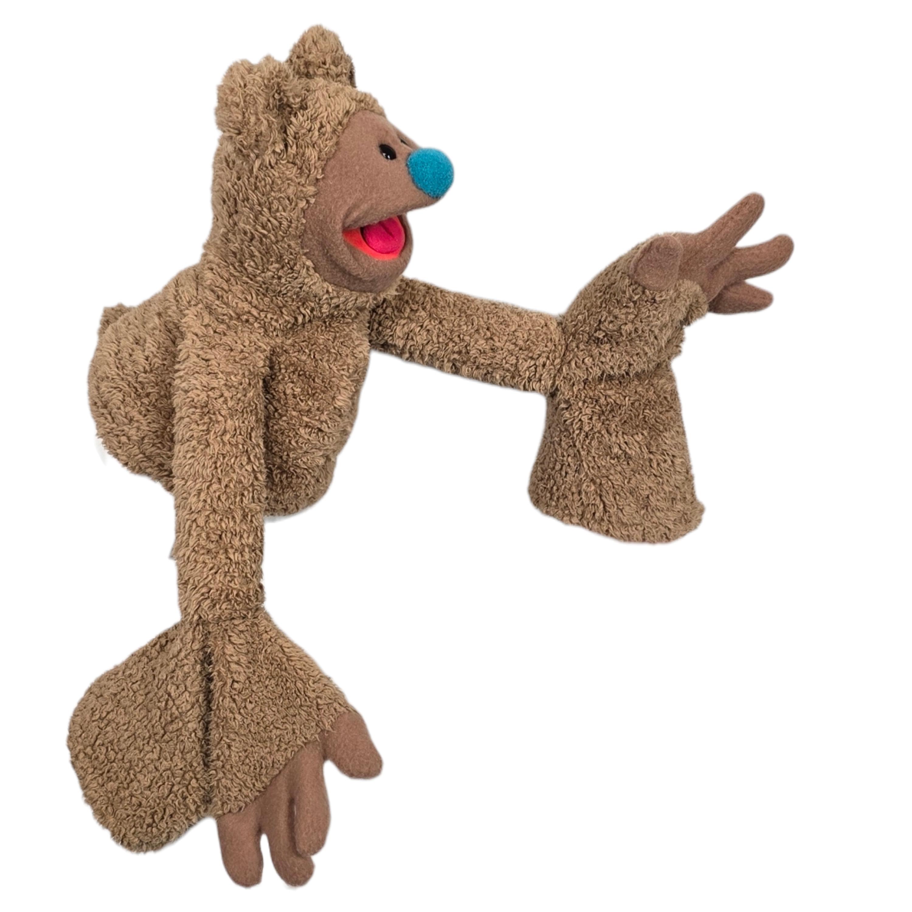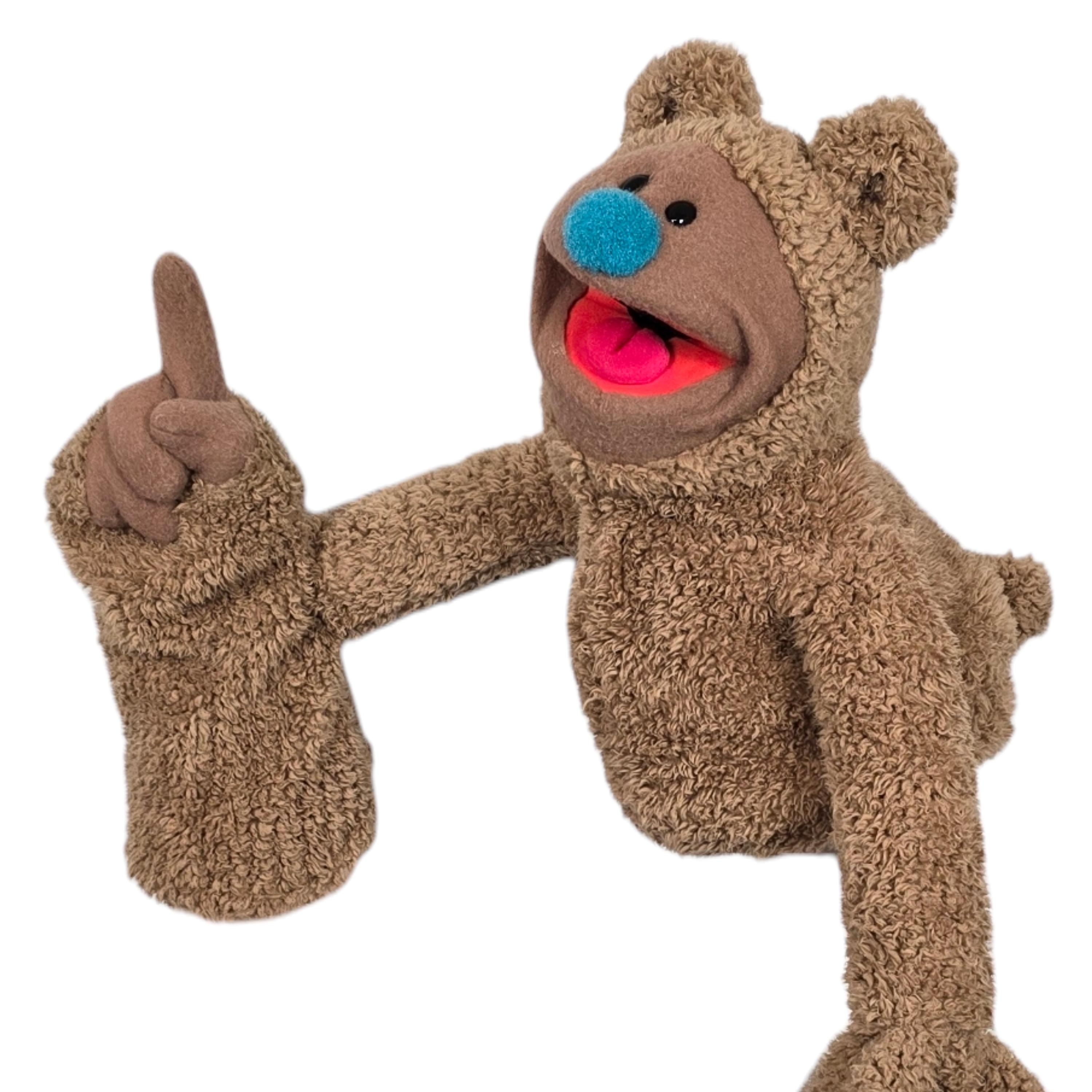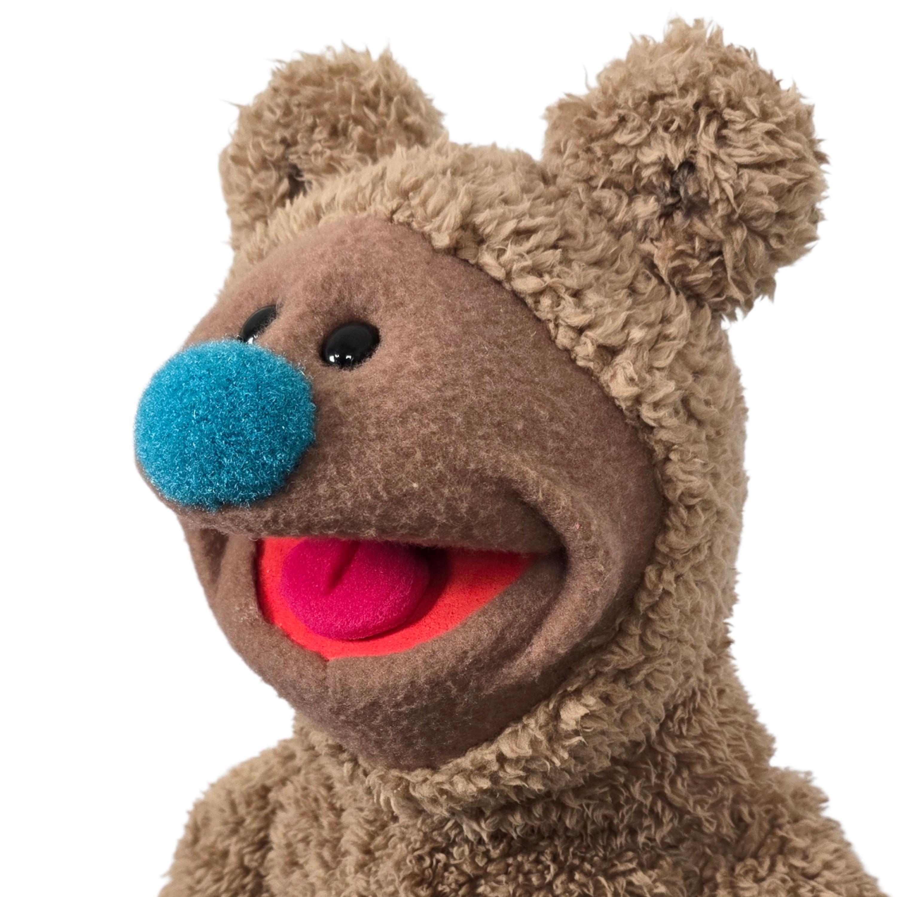 This is a hand puppet of a teddy bear character. It is of professional quality, using quality fabrics. Made of foam and faux fur. This is a live hand puppet and can be performed with two puppeteers or a solo performer. See the attached photos for more!