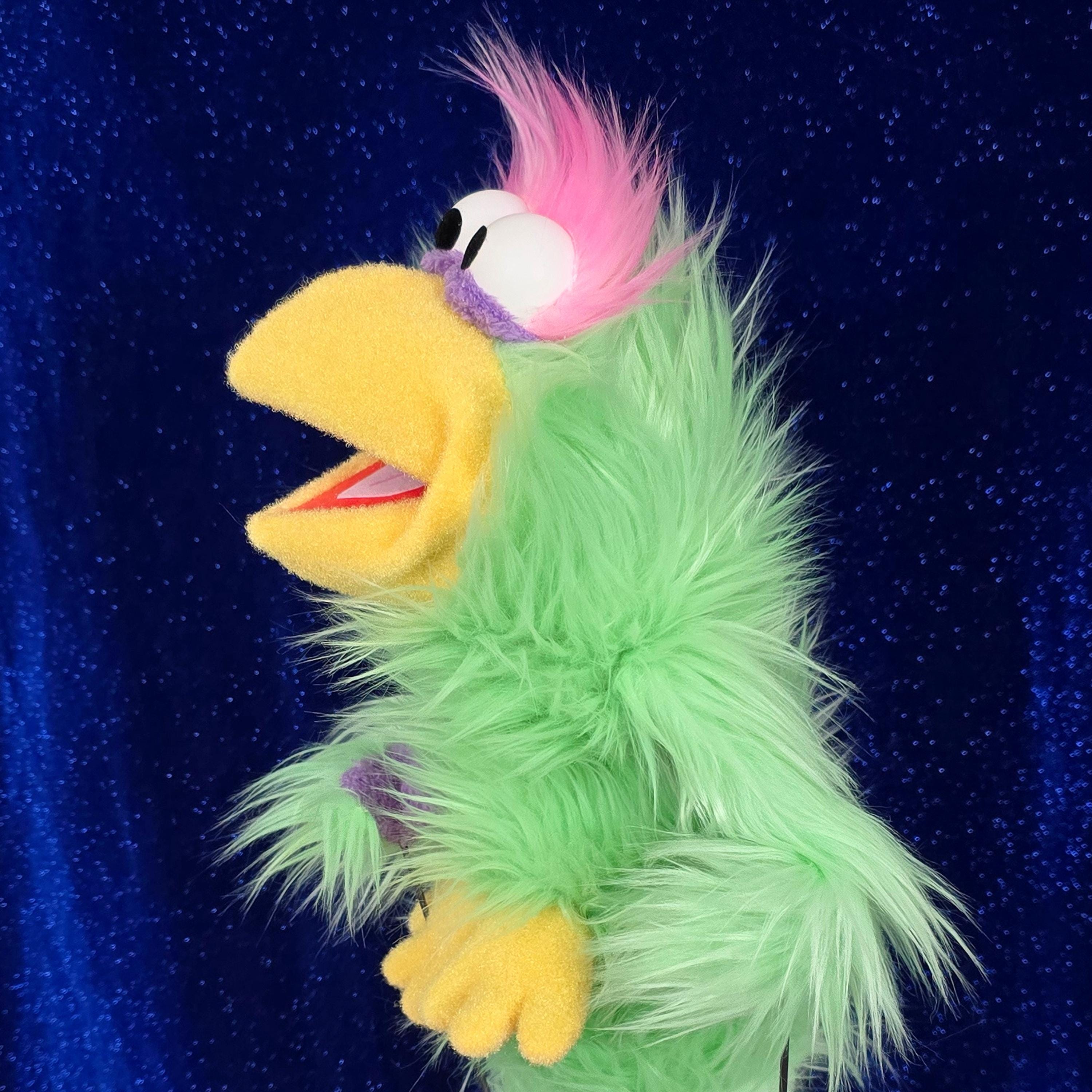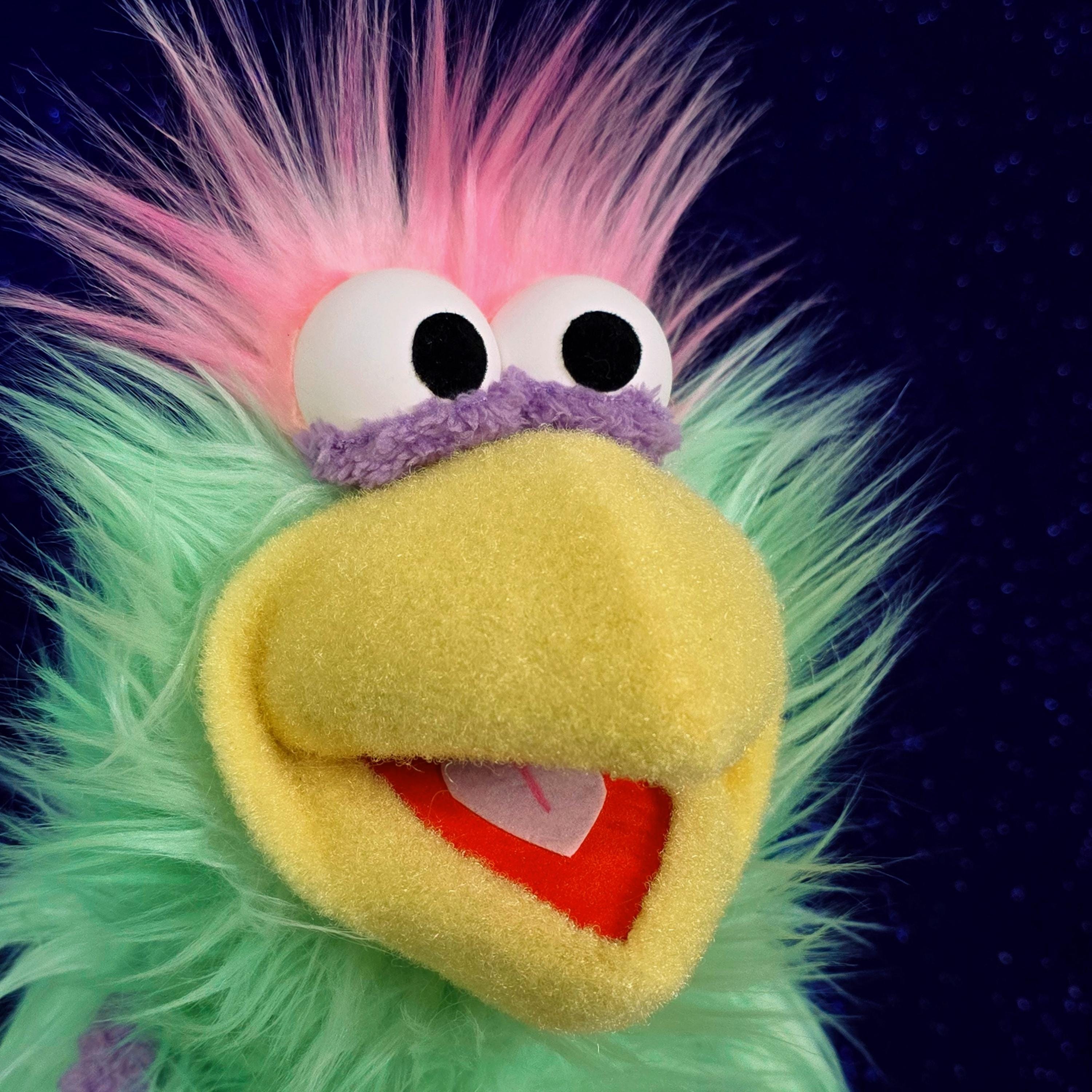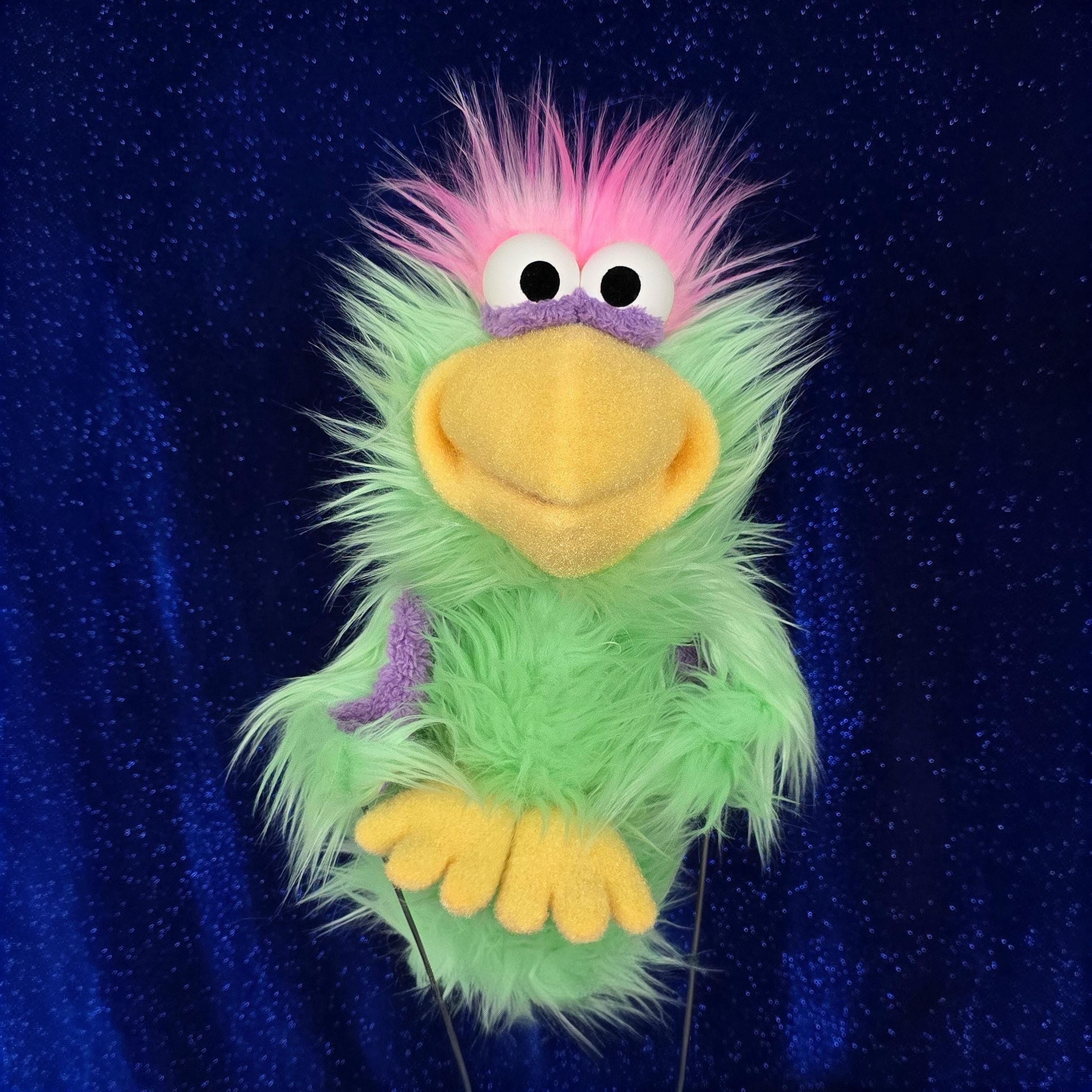 This is a hand and rod puppet of a bird character. It is of professional quality, using quality fabrics. Made of F3 nylon fleece, foam rubber and faux fur. With permanent arm rods. See the attached photos for more!