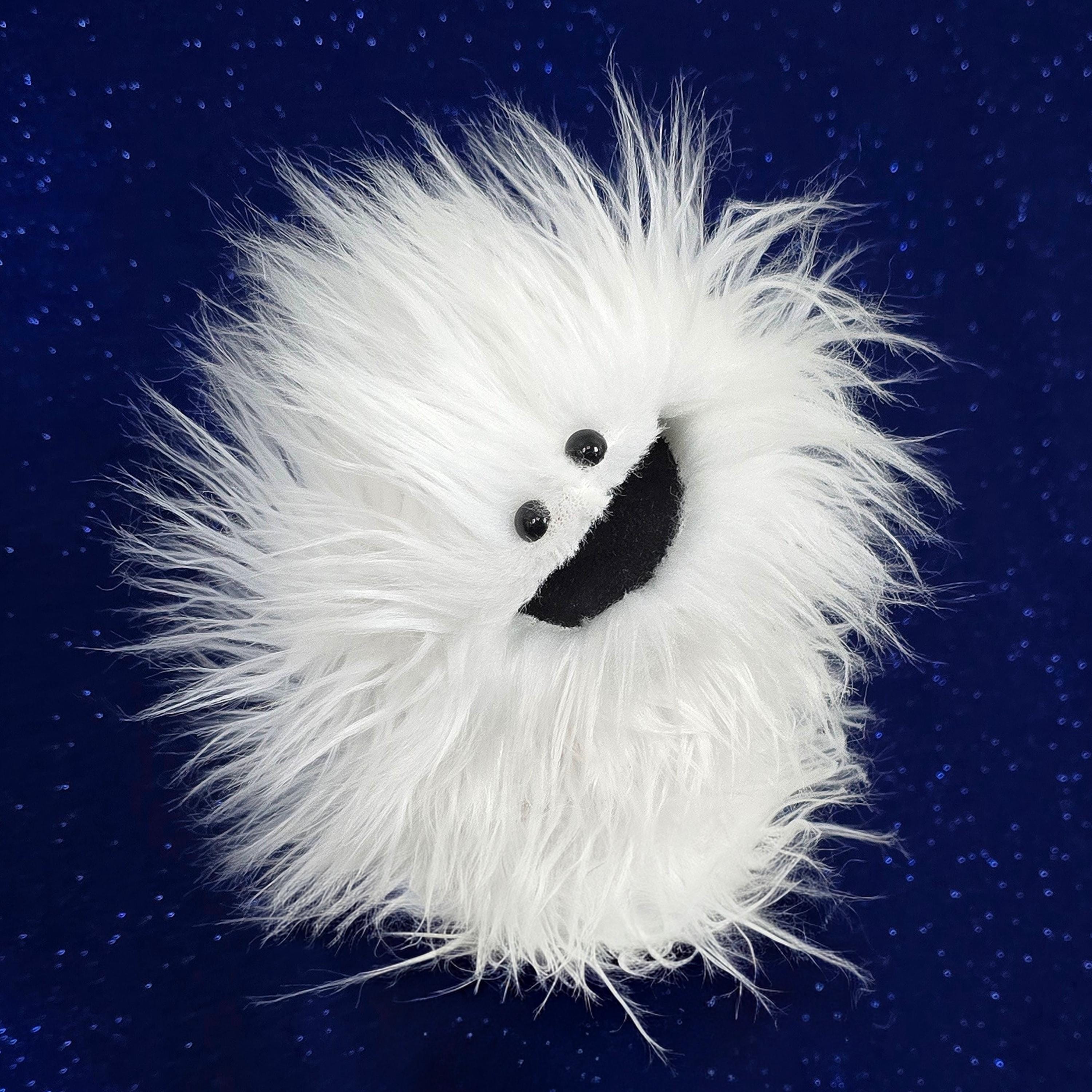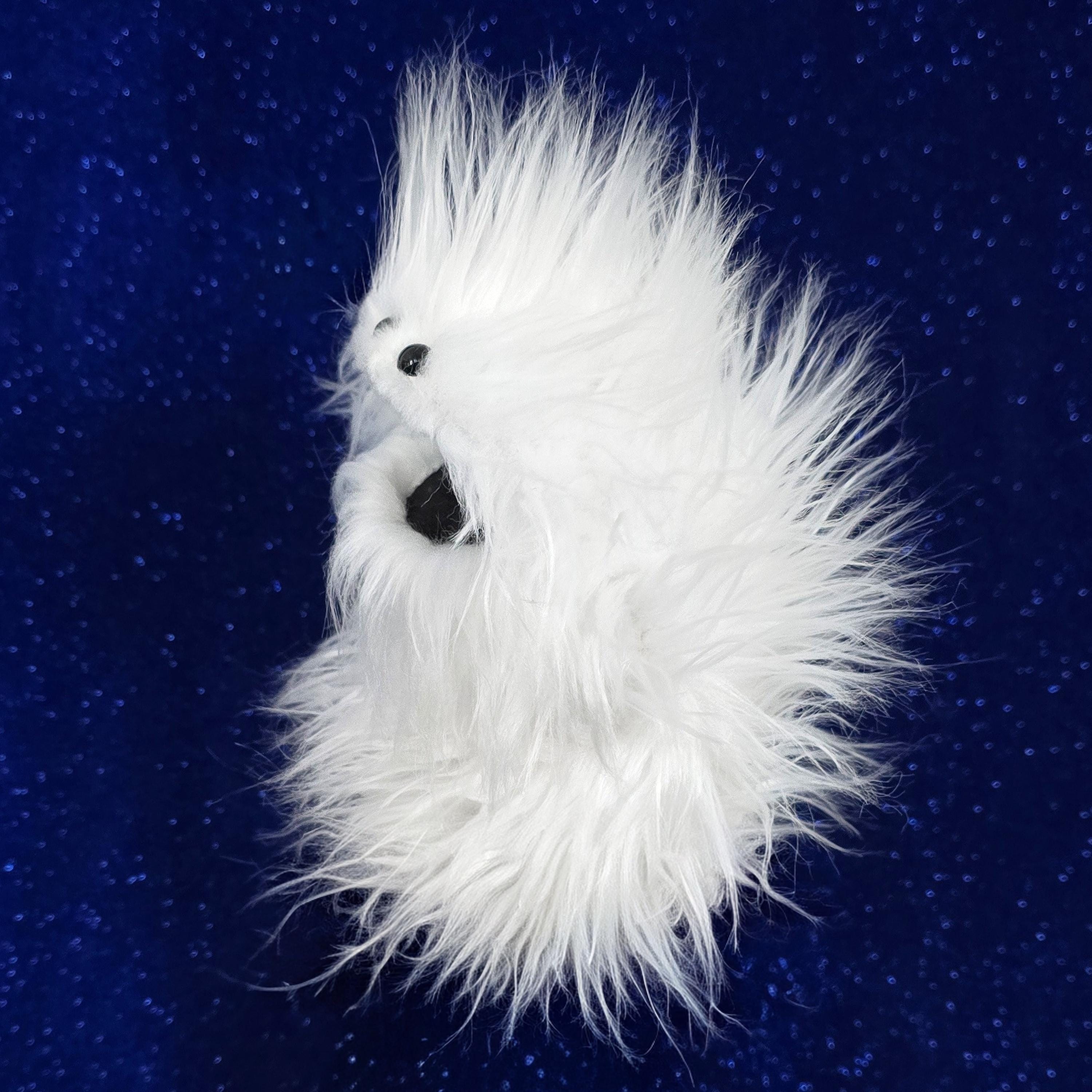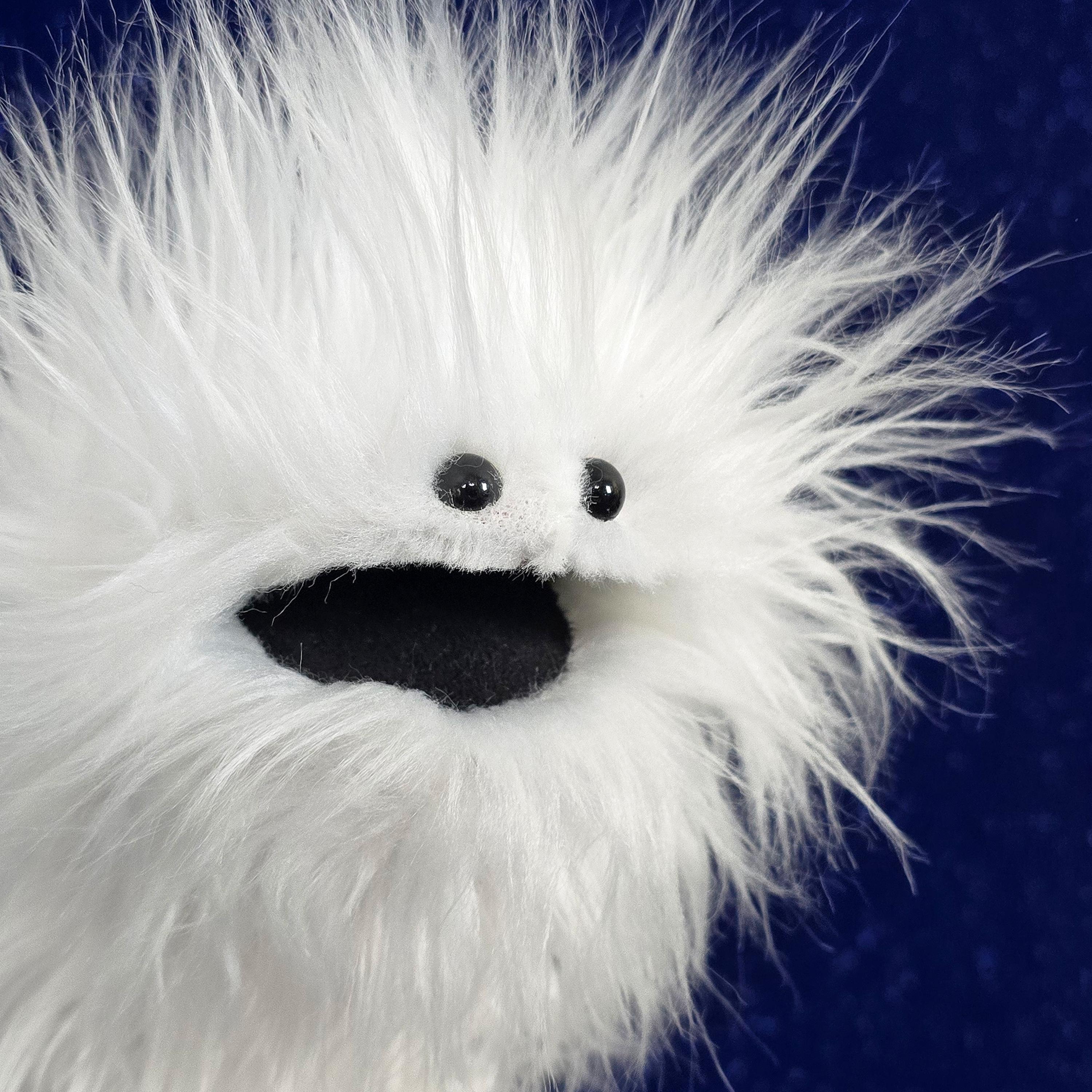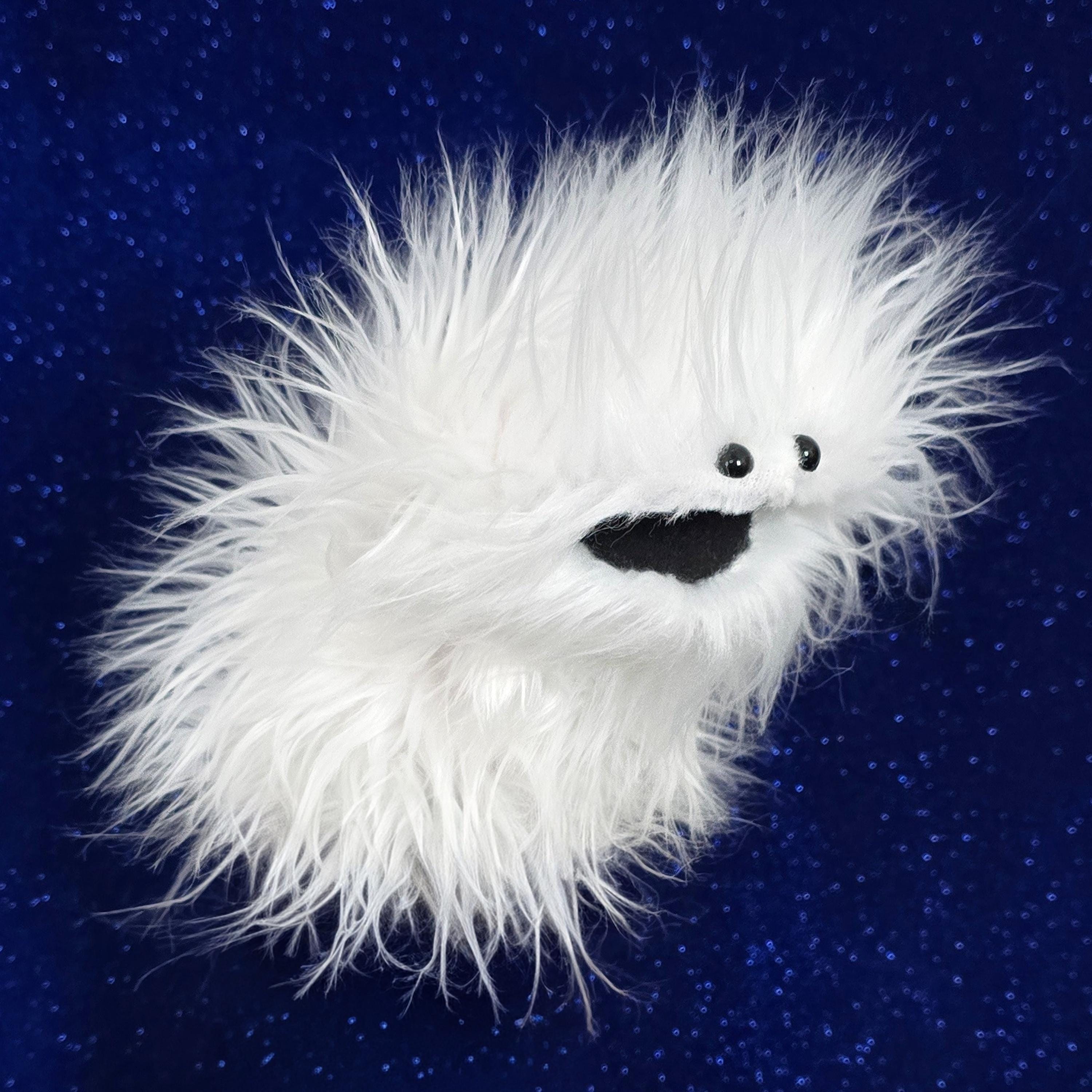 This is a practice puppet of a white monster with beady eyes. Perfect for puppetry practice! It is of professional quality, using quality fabrics. Made of faux fur. See the attached photos for more!