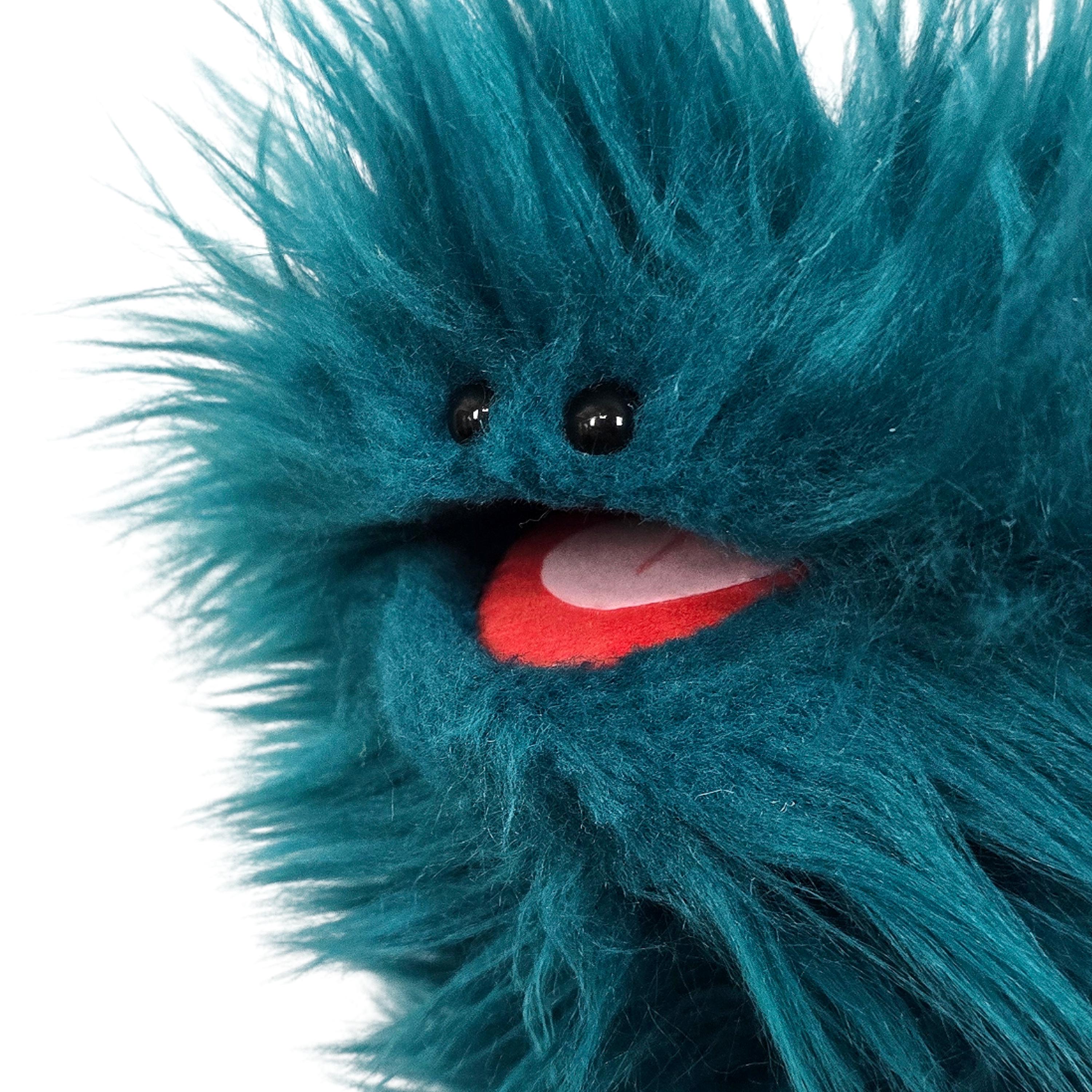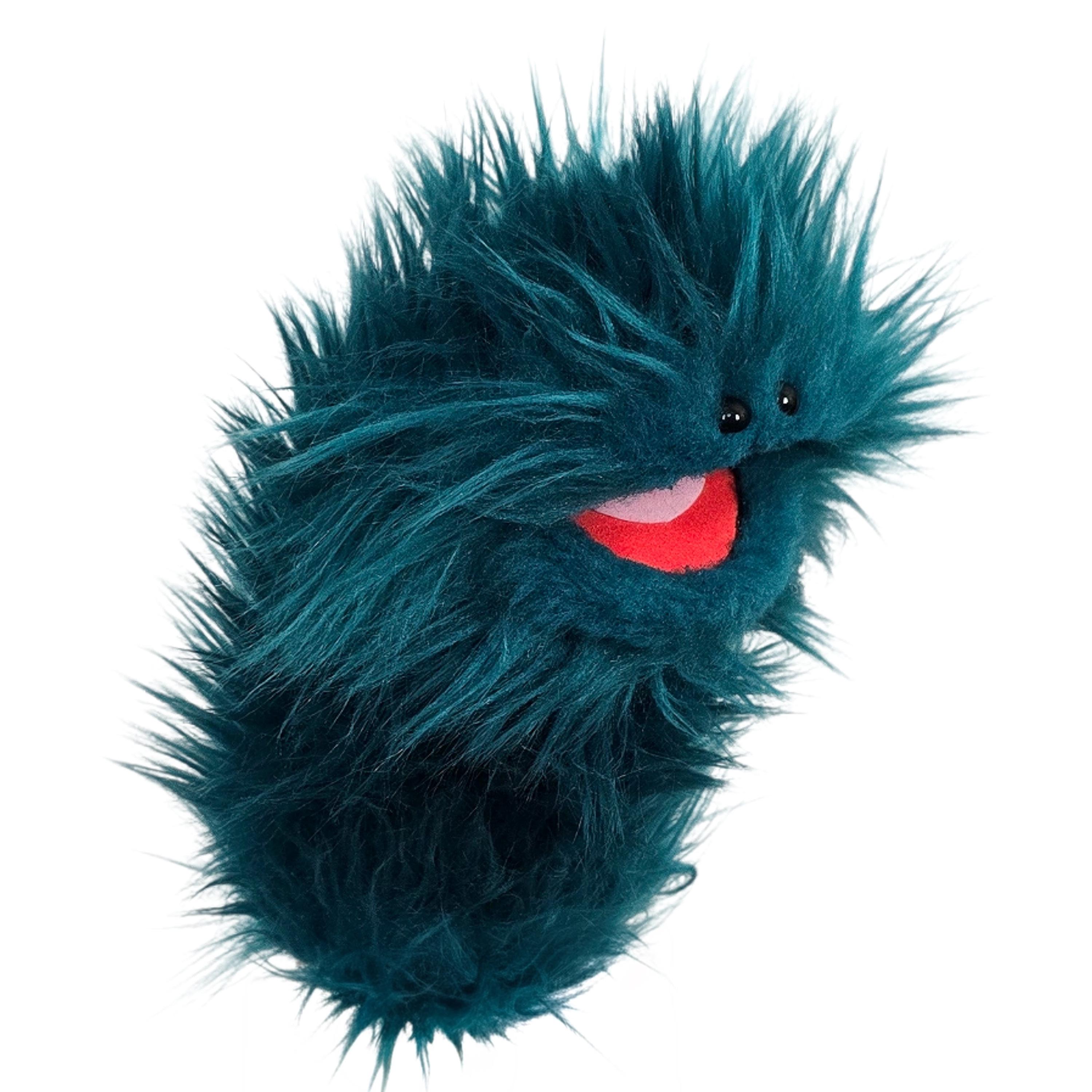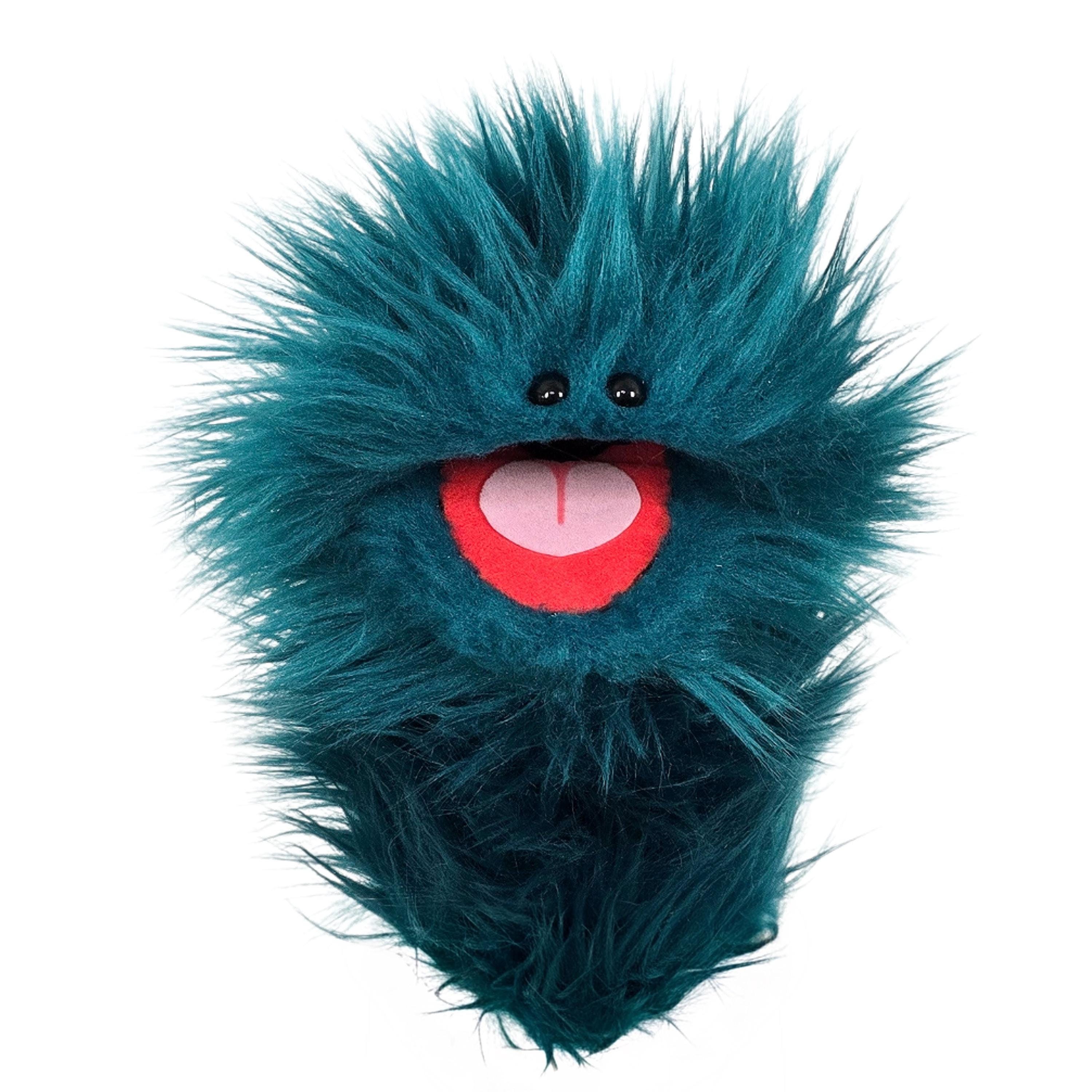 This is a practice puppet of a teal monster with beady eyes. Perfect for puppetry practice! It is of professional quality, using quality fabrics. Made of faux fur. See the attached photos for more!