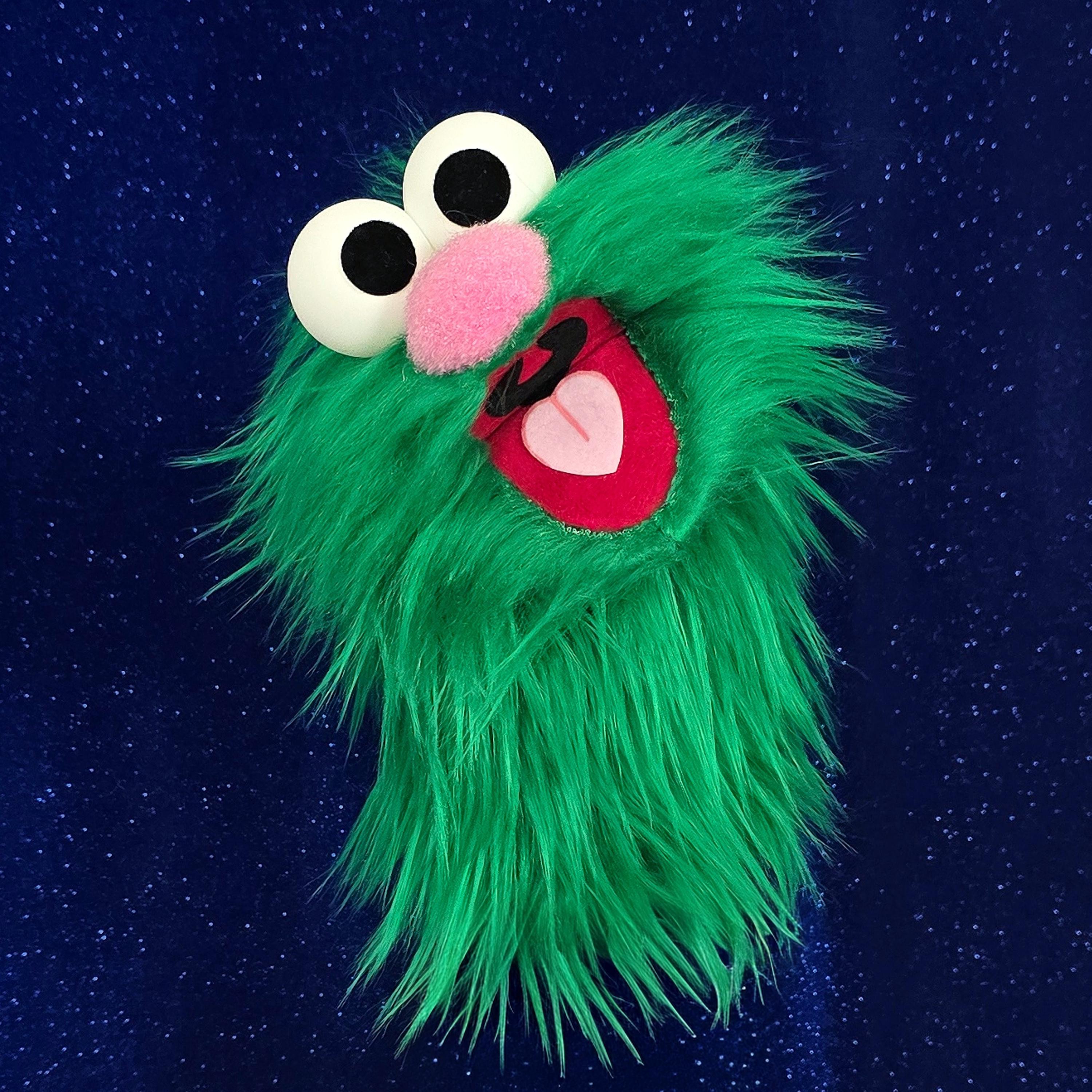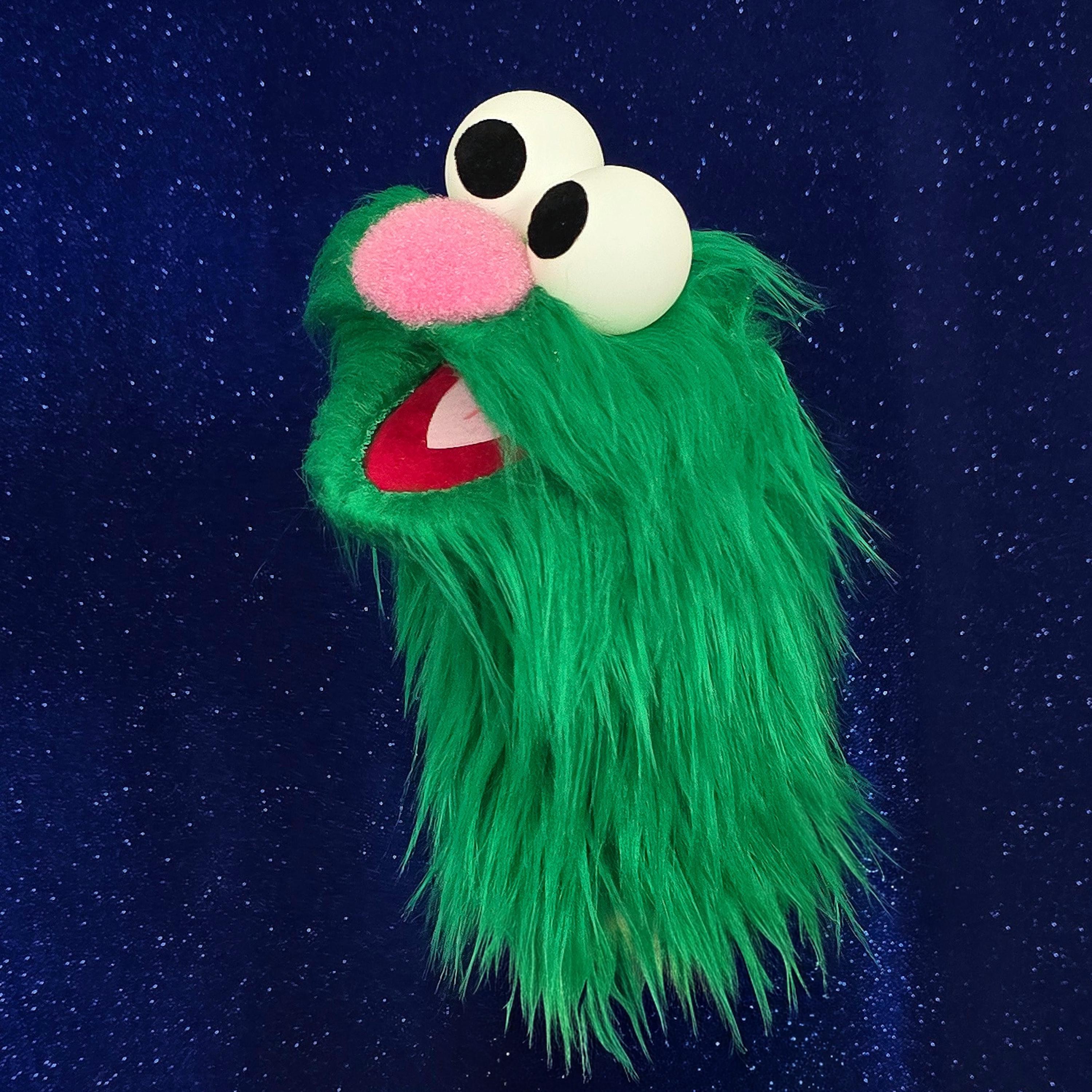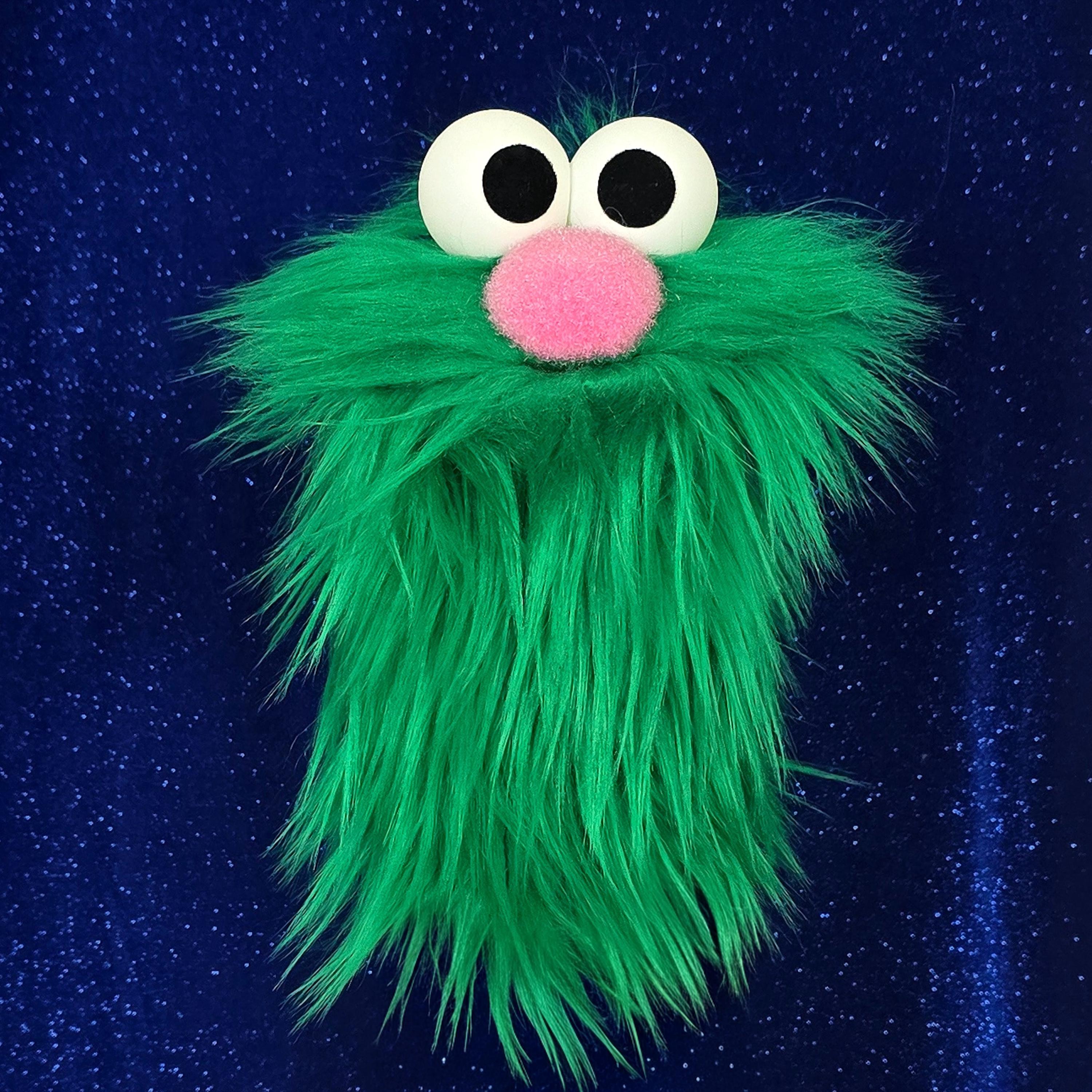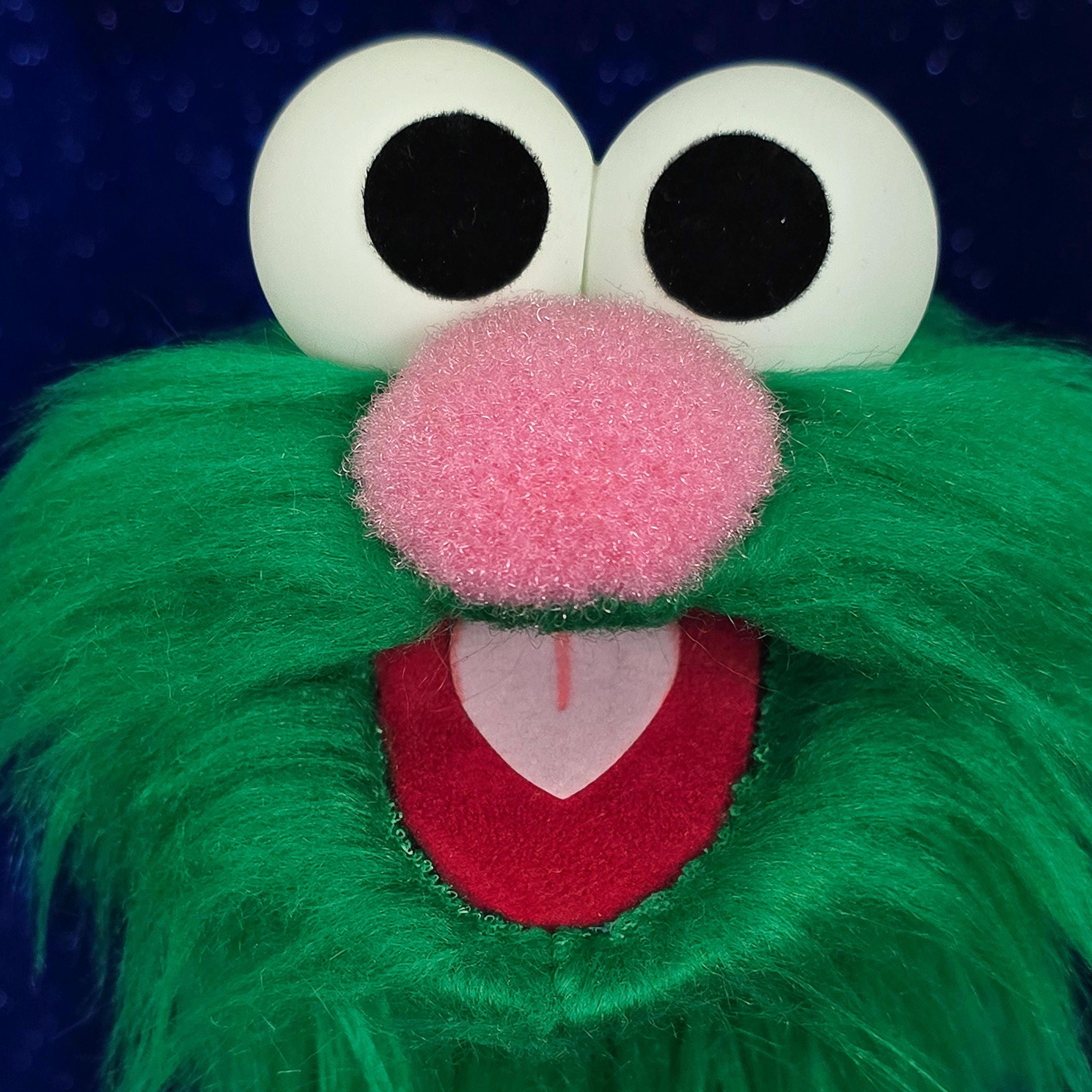This is a practice puppet of a green monster with a pink nose. Perfect for puppetry practice! It is of professional quality, using quality fabrics. Made of faux fur. See the attached photos for more!