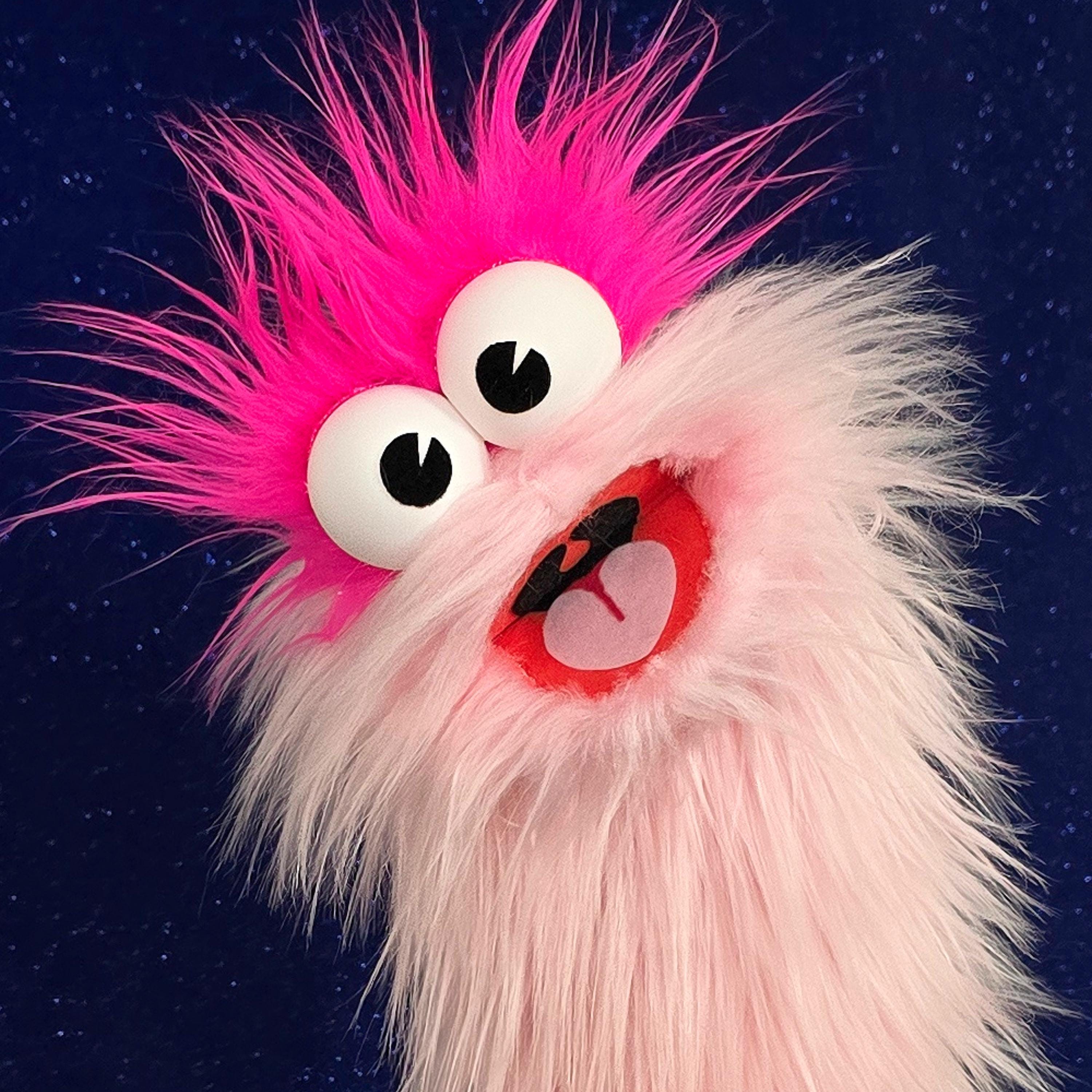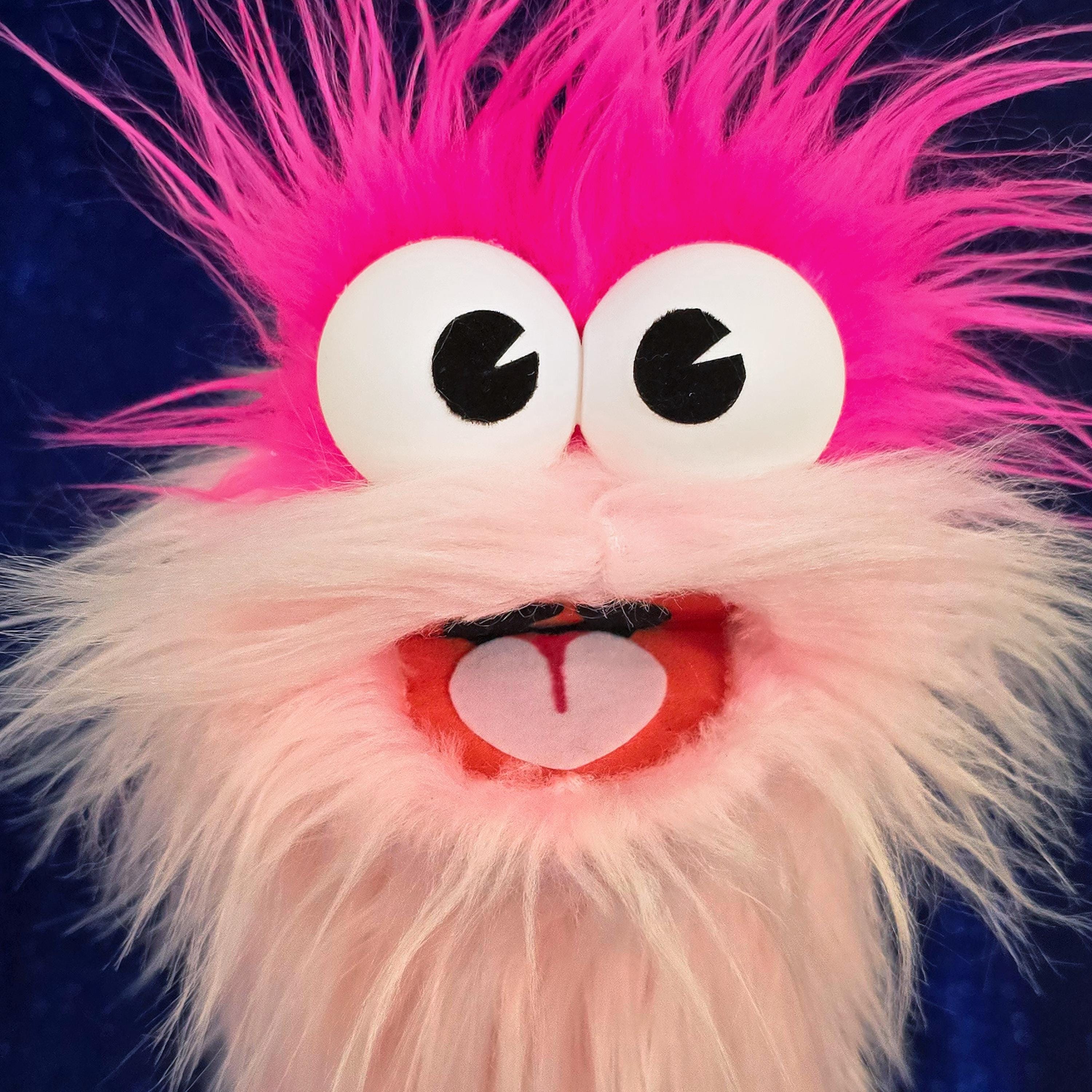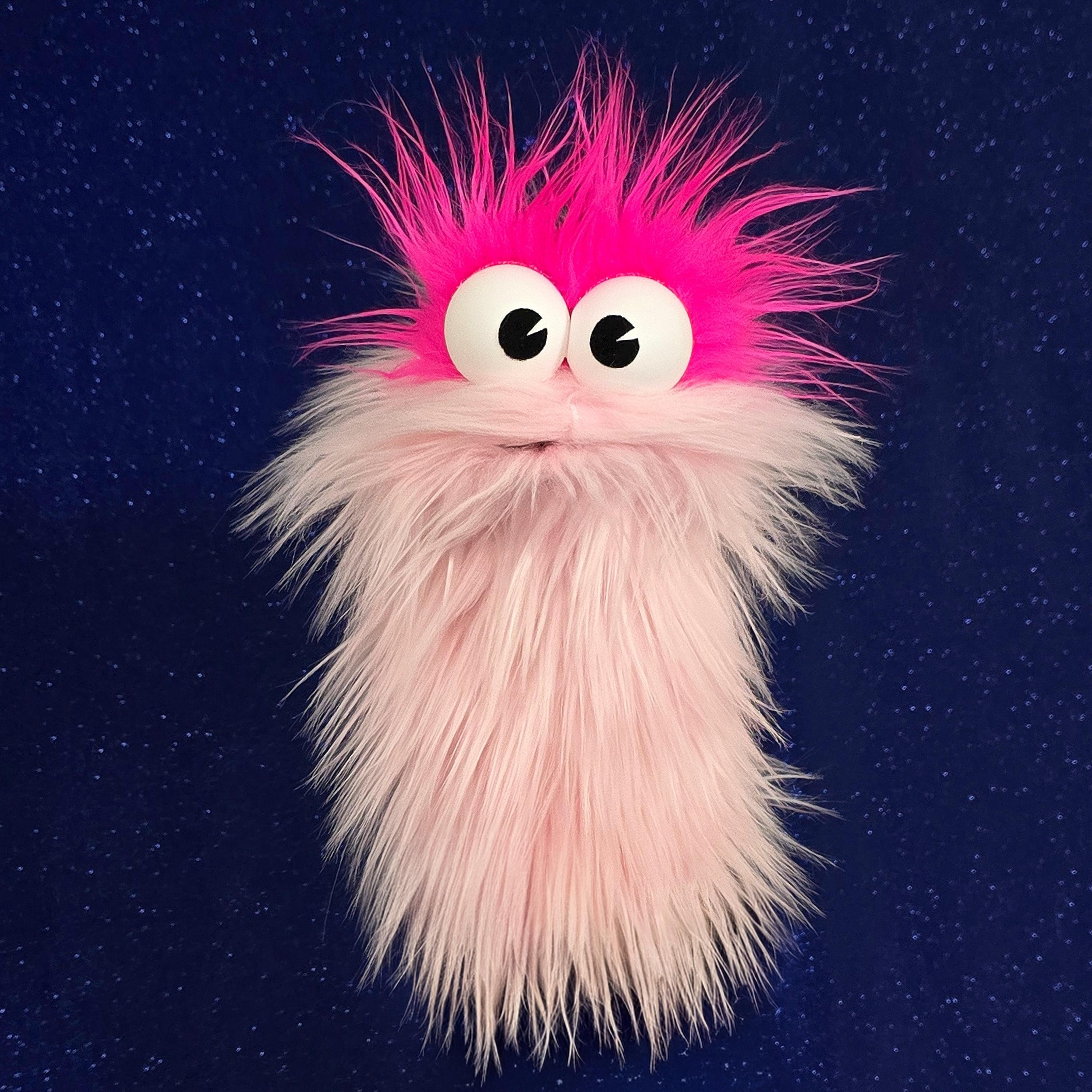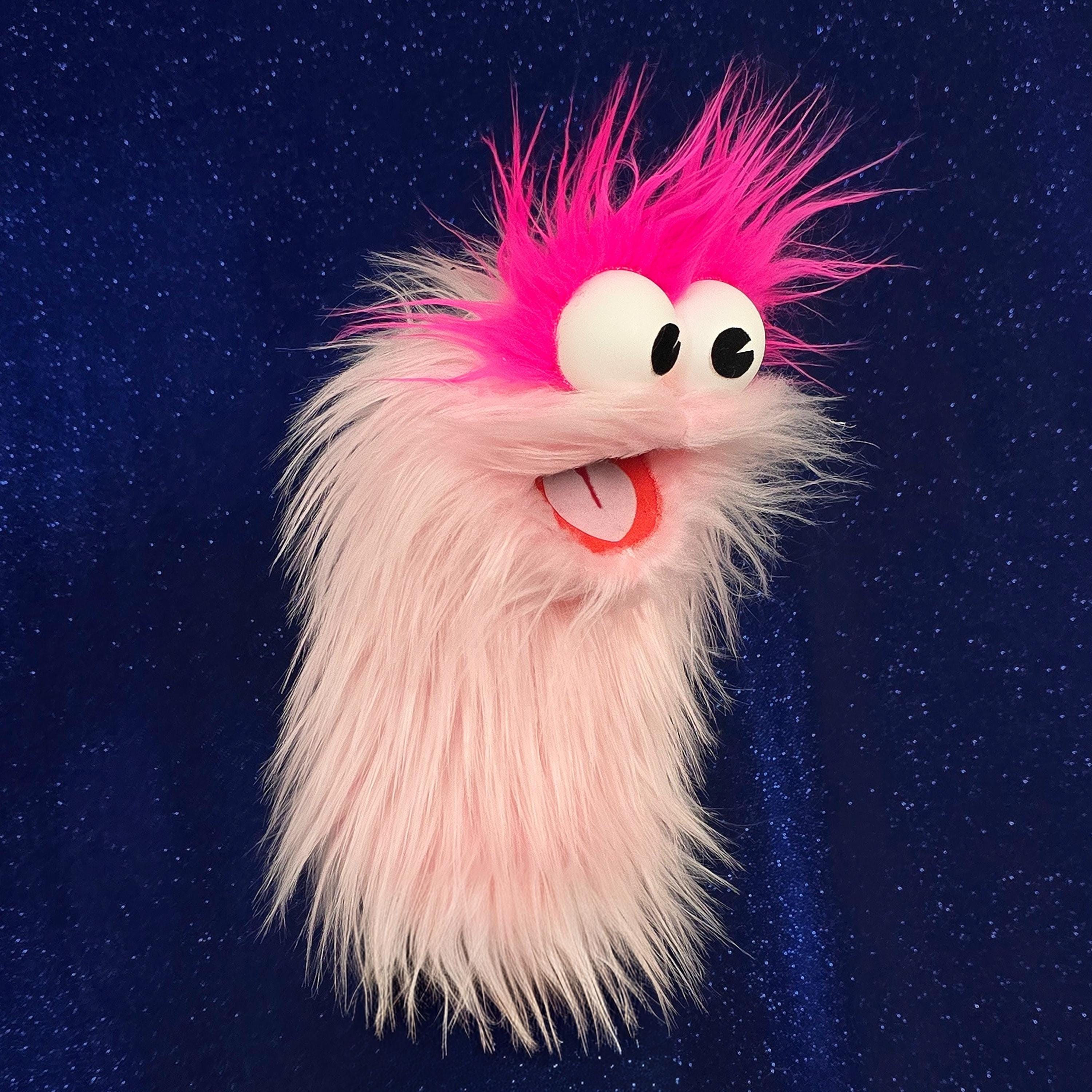 This is a practice puppet of a light pink monster with hot pink hair. Perfect for puppetry practice! It is of professional quality, using quality fabrics. Made of faux fur. See the attached photos for more!