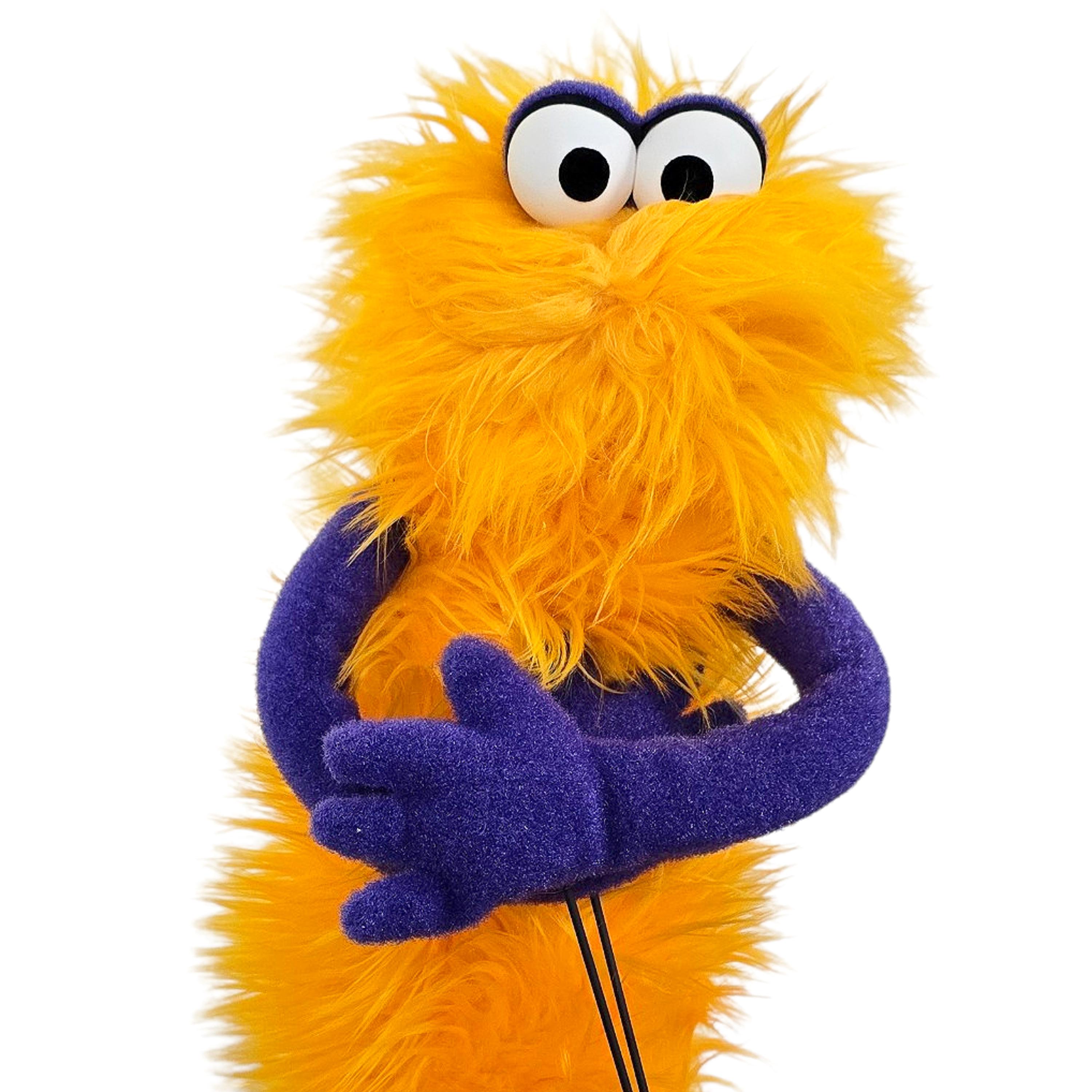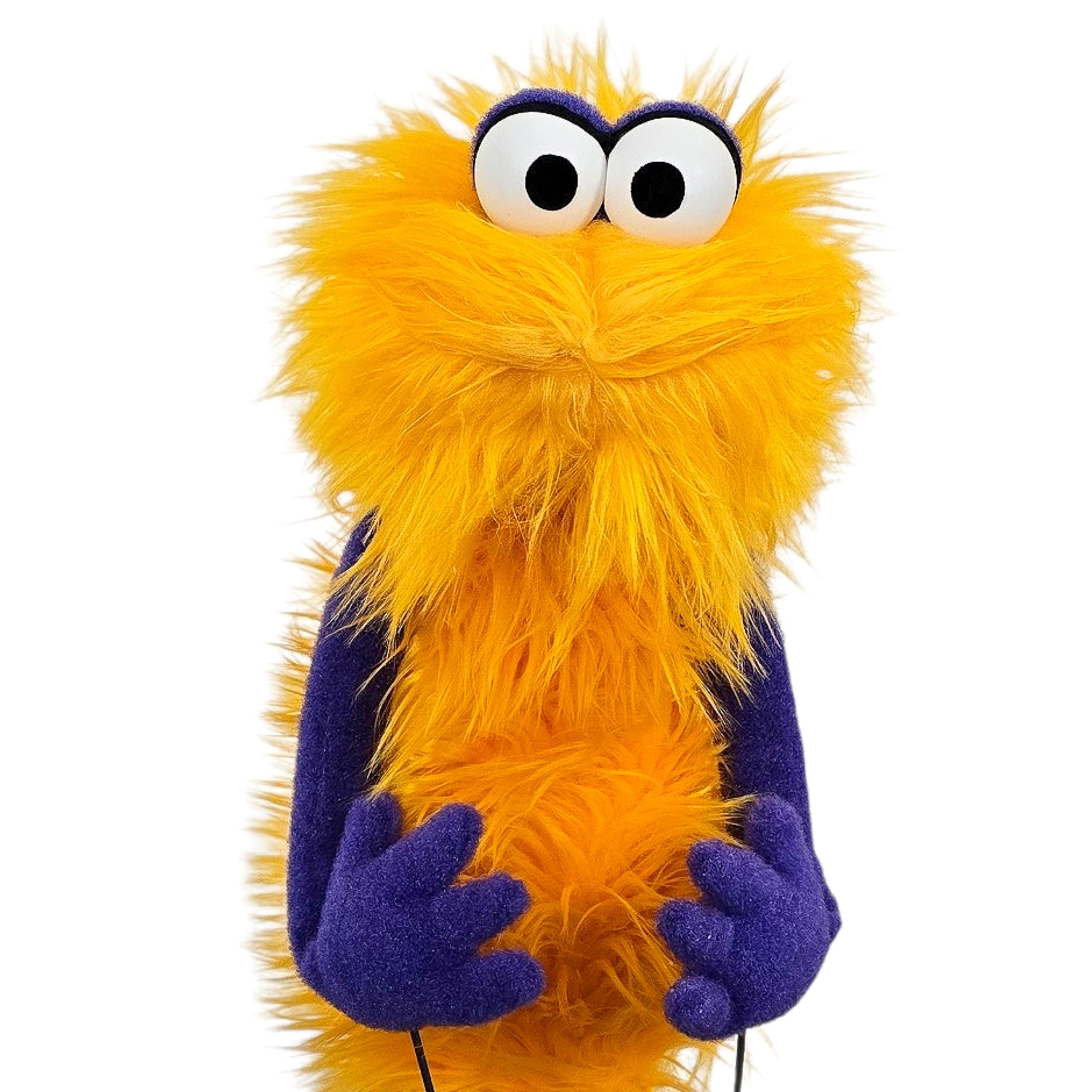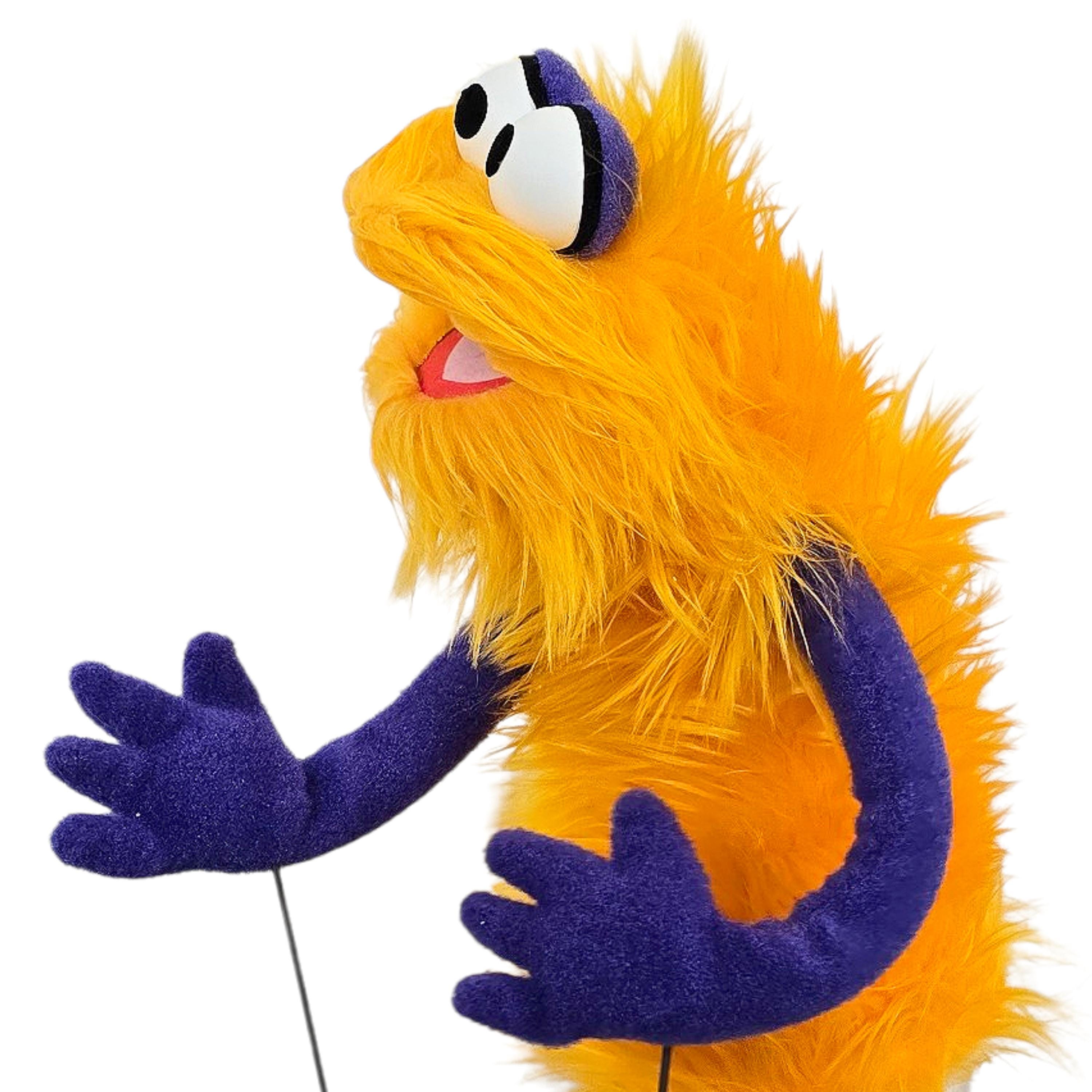 This is a hand and rod puppet of a monster character. It is of professional quality, using quality fabrics. Made of yellow faux fur and F3 nylon fleece. With permanent arm rods. Perfect for puppetry practice. See the attached photos for more!