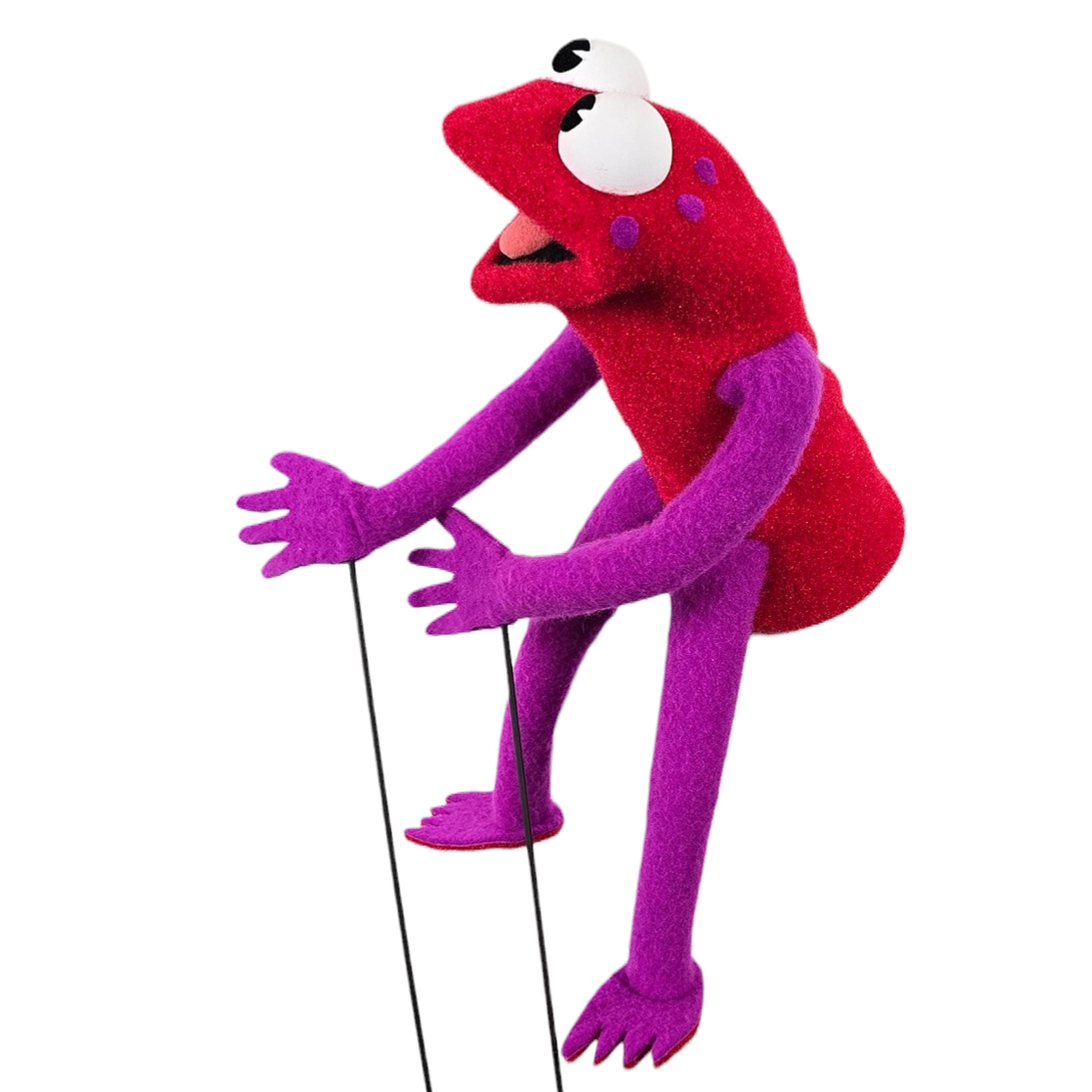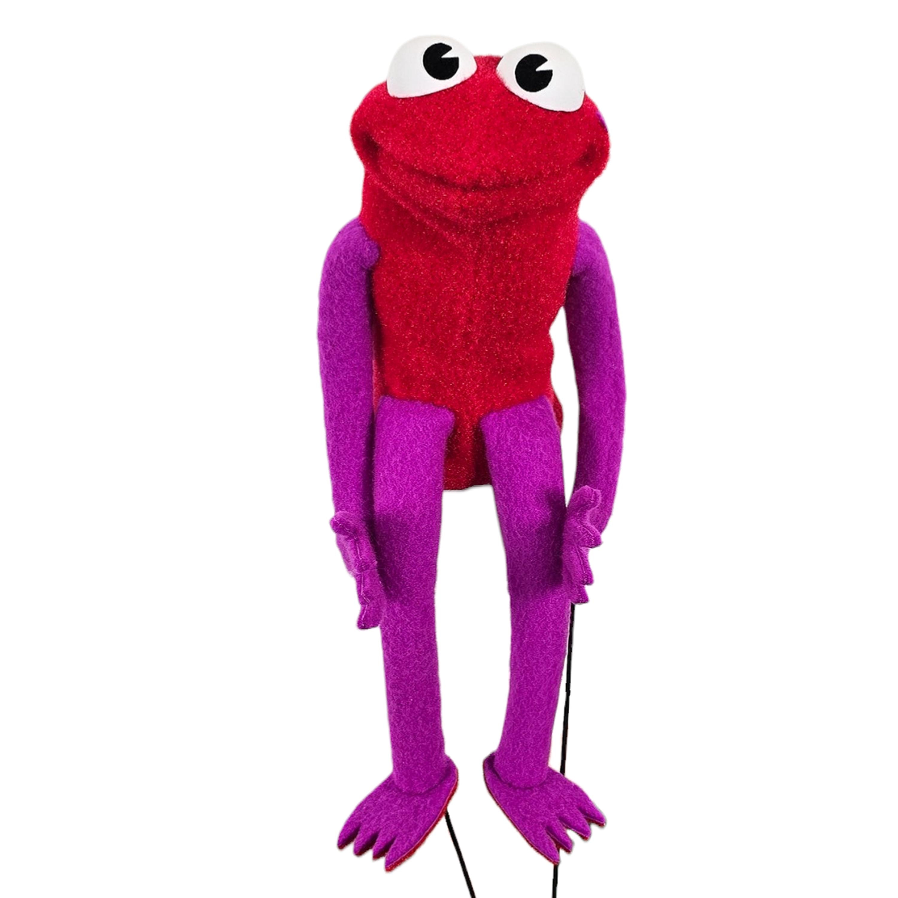 This is a hand and rod puppet of a frog character. It is of professional quality, using quality fabrics. Hand and machine stitched.