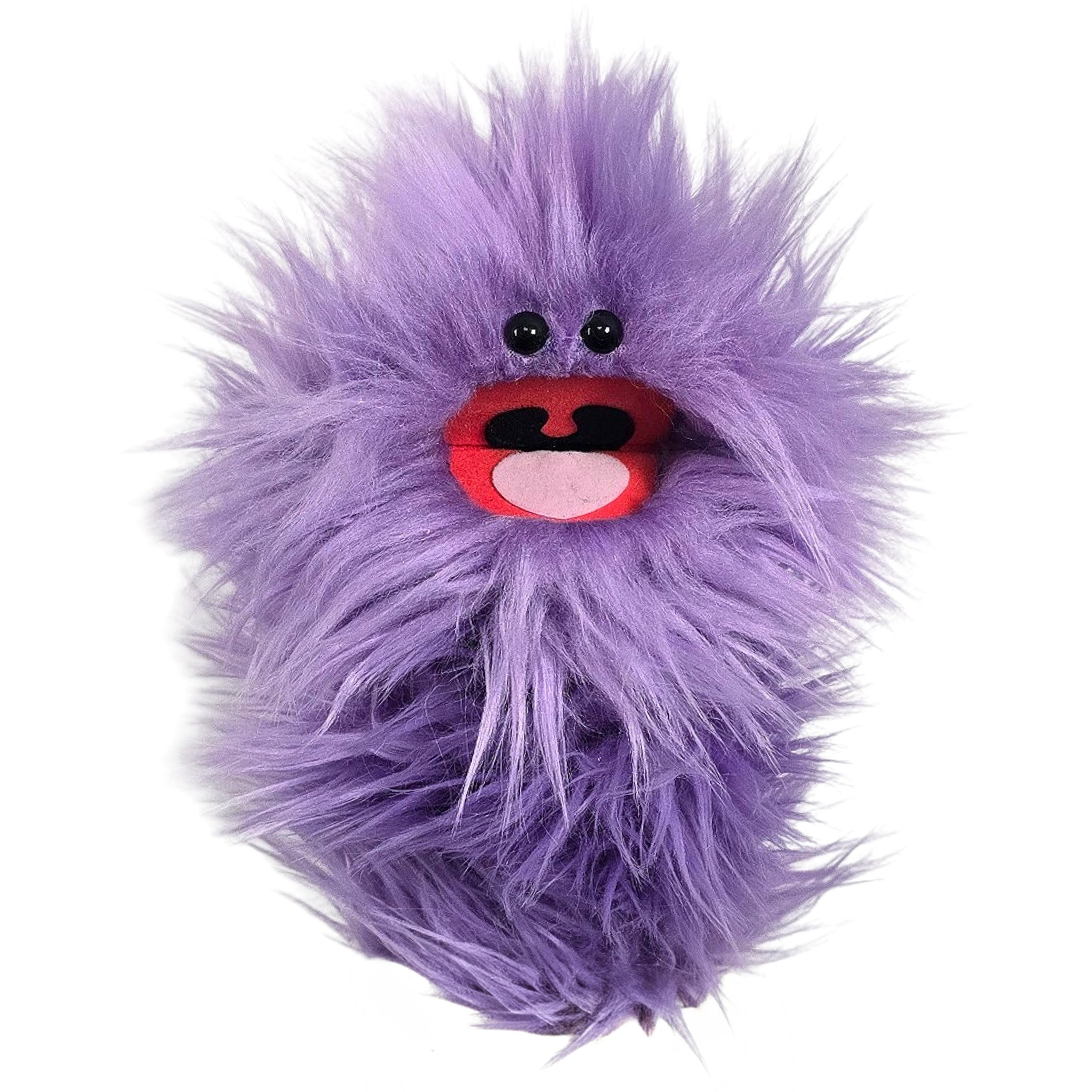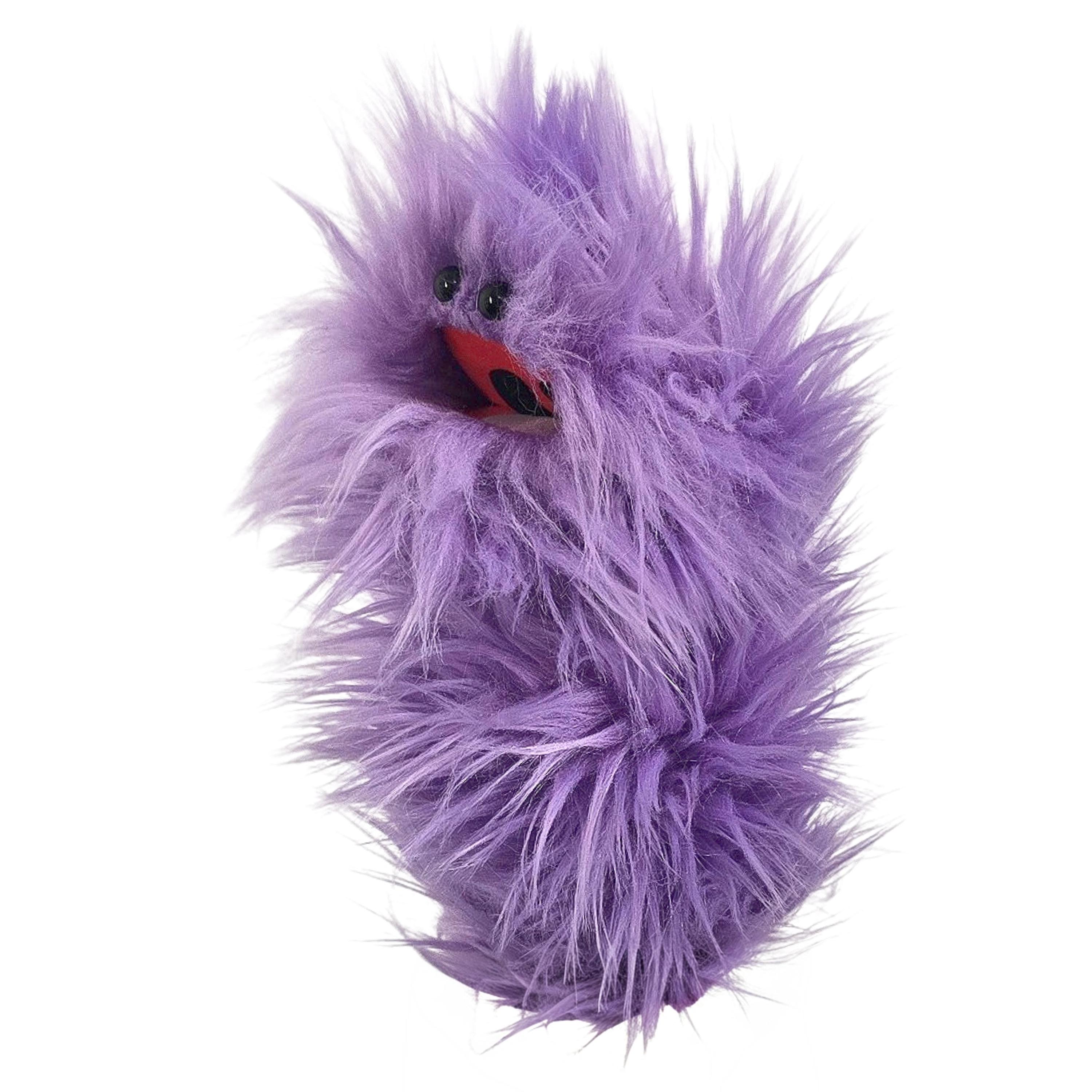 This is a practice puppet of a purple monster with beady eyes. Perfect for puppetry practice! It is of professional quality, using quality fabrics. Made of faux fur. See the attached photos for more!