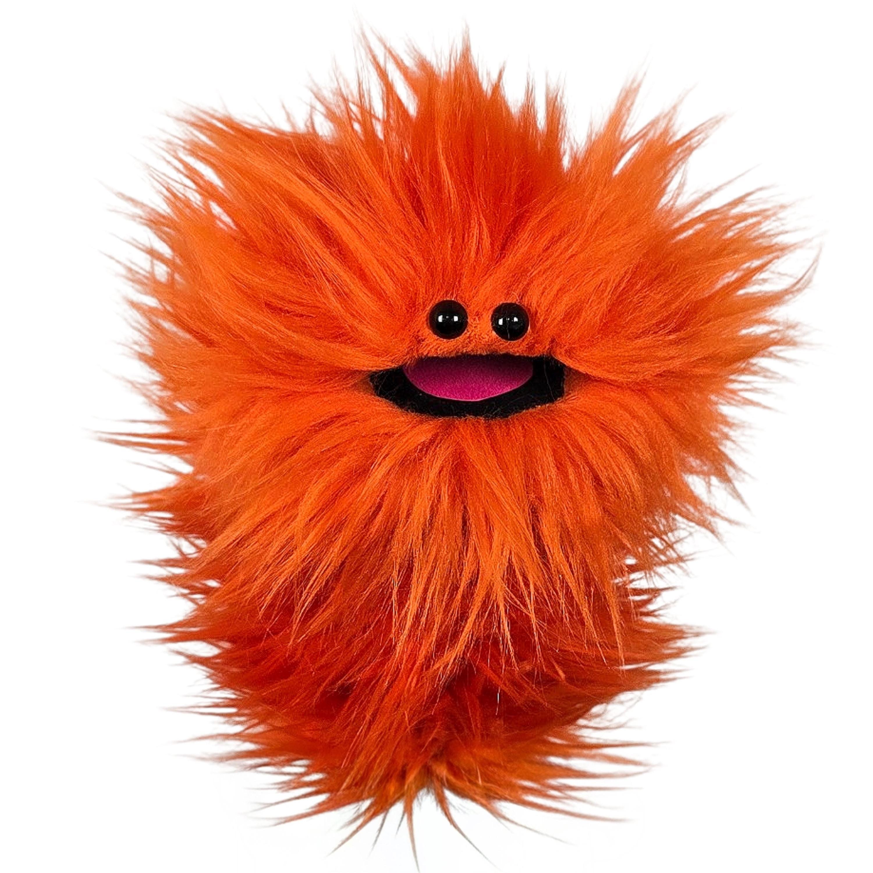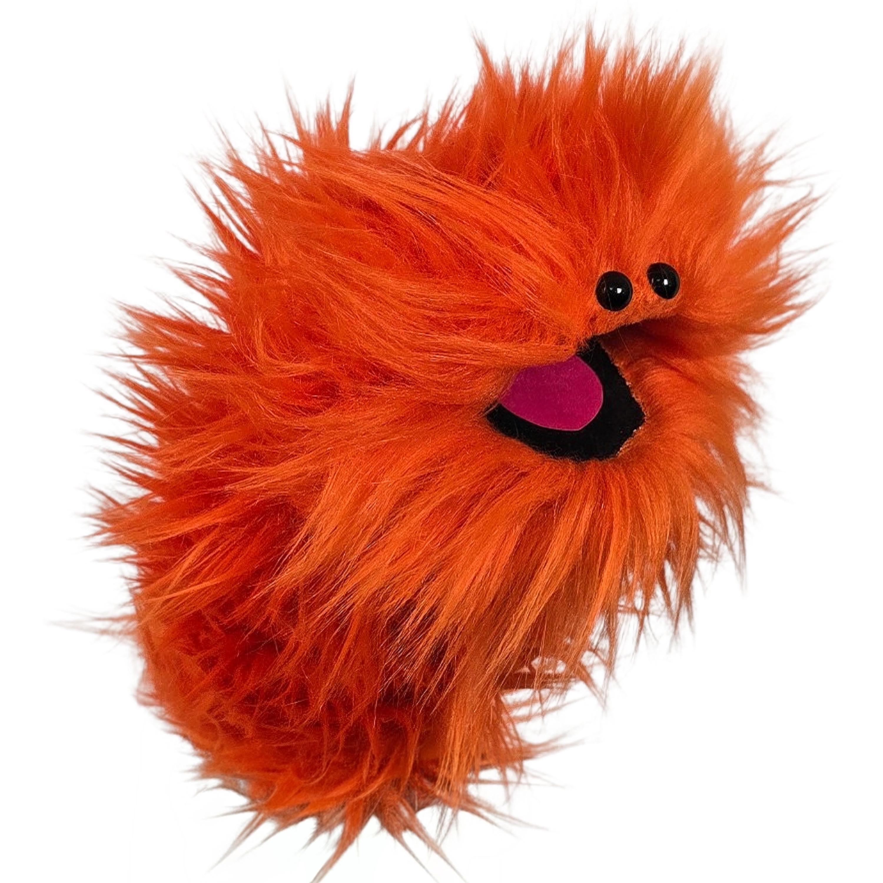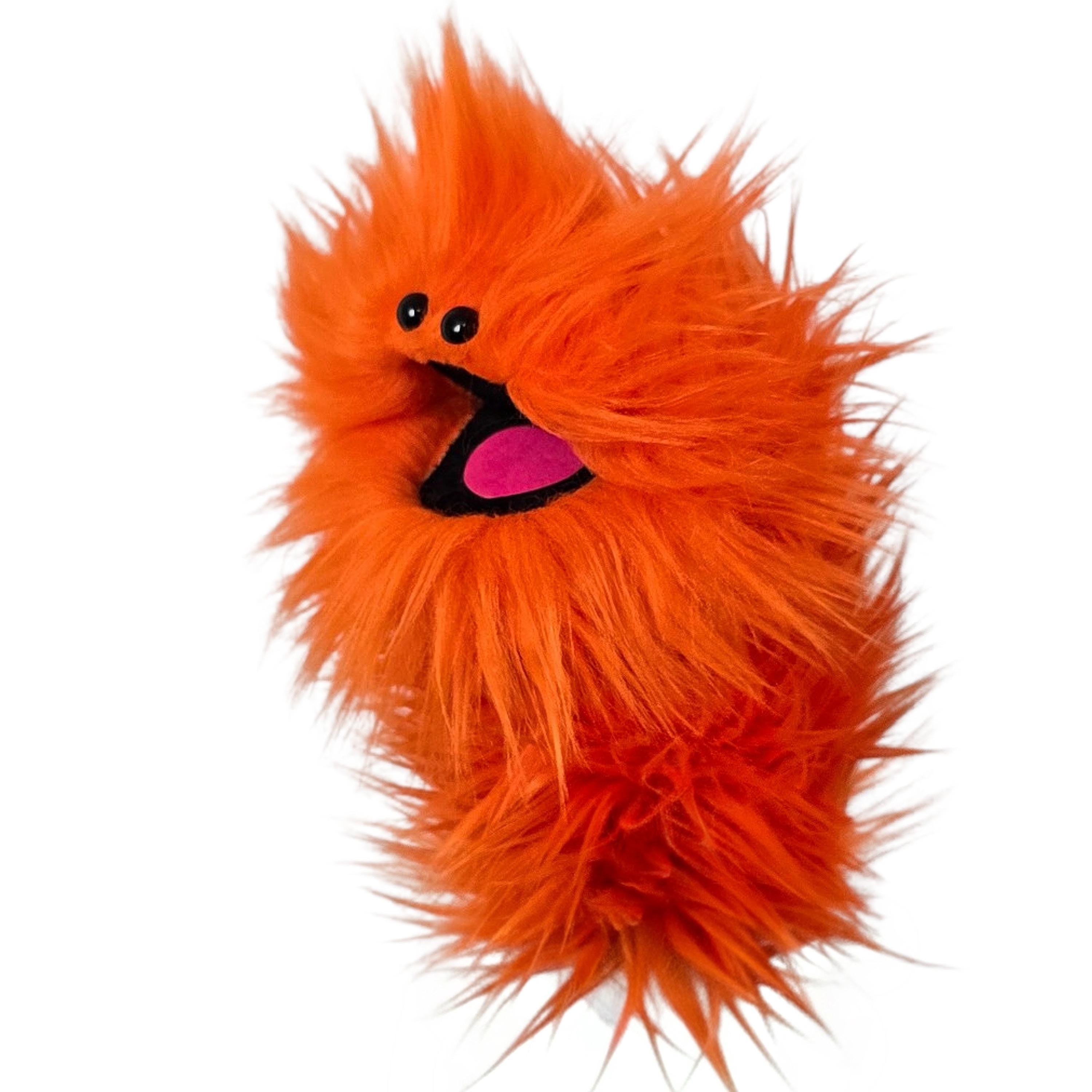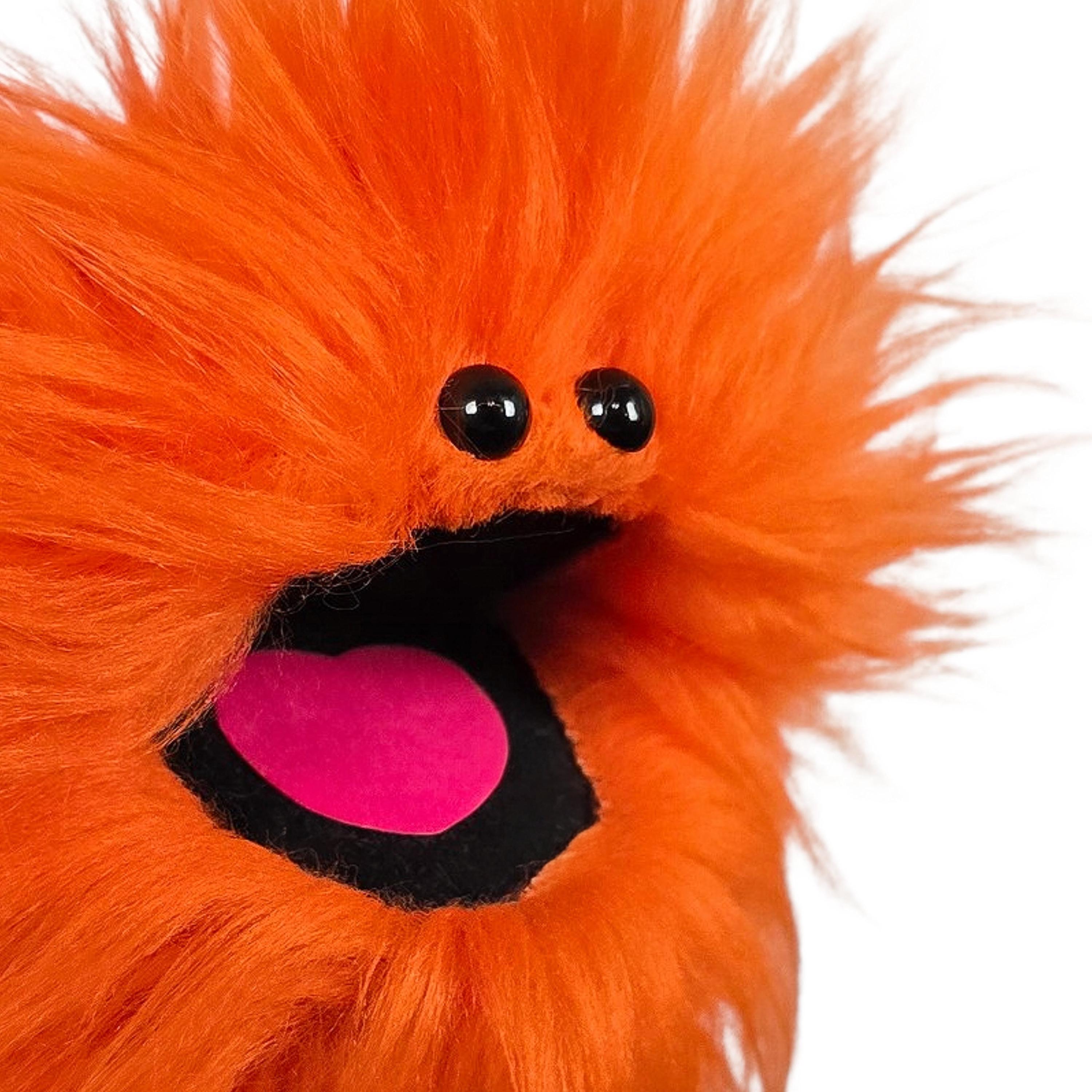 This is a practice puppet of an orange monster with beady eyes. Perfect for puppetry practice!