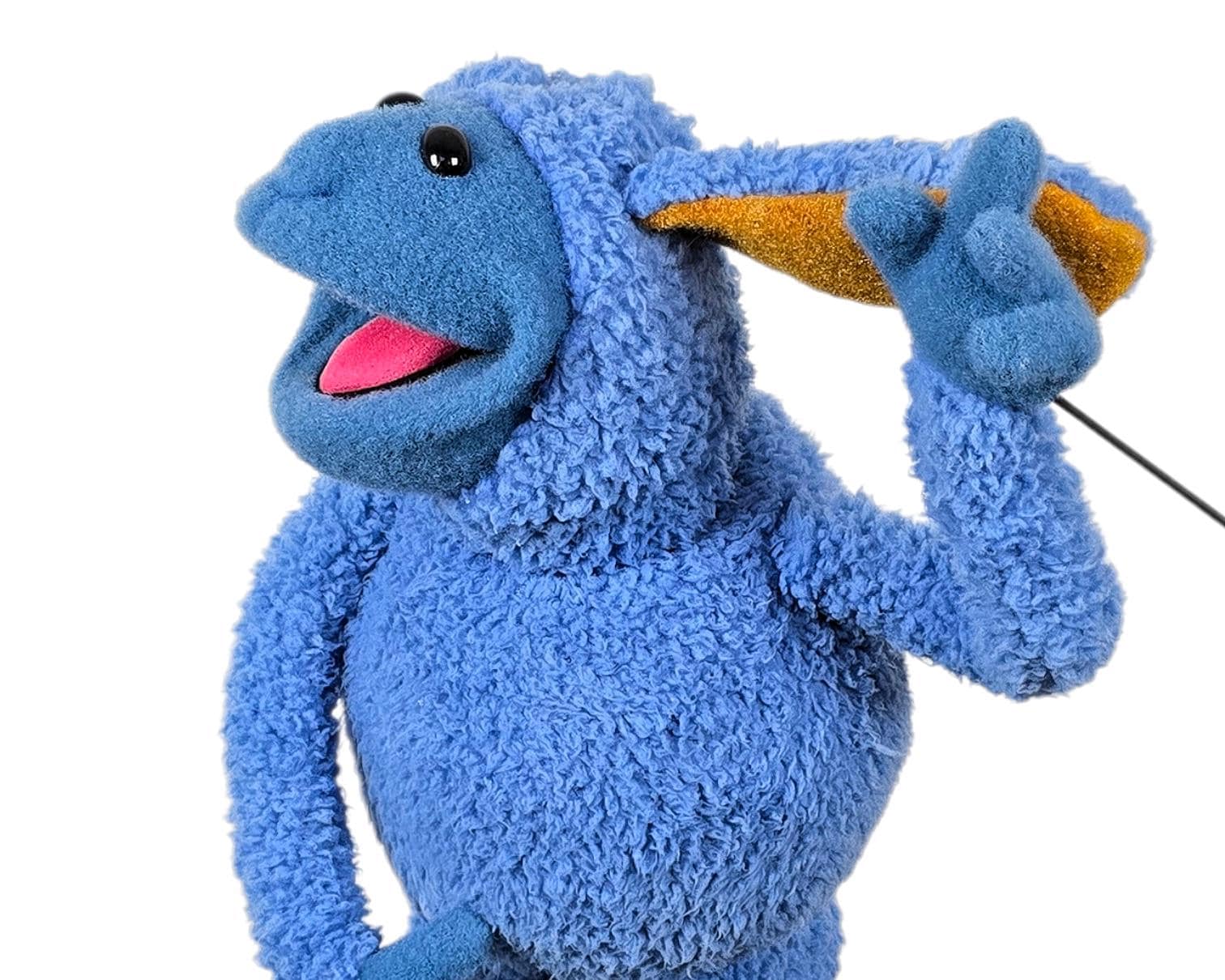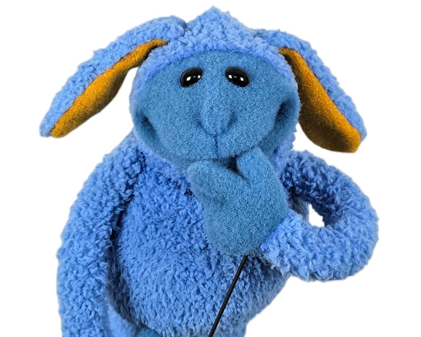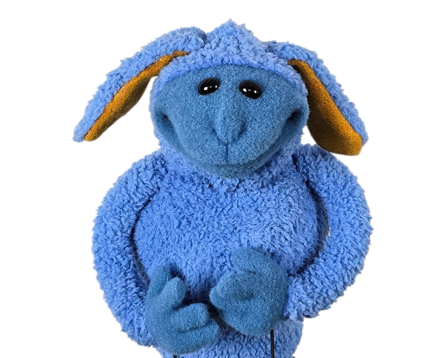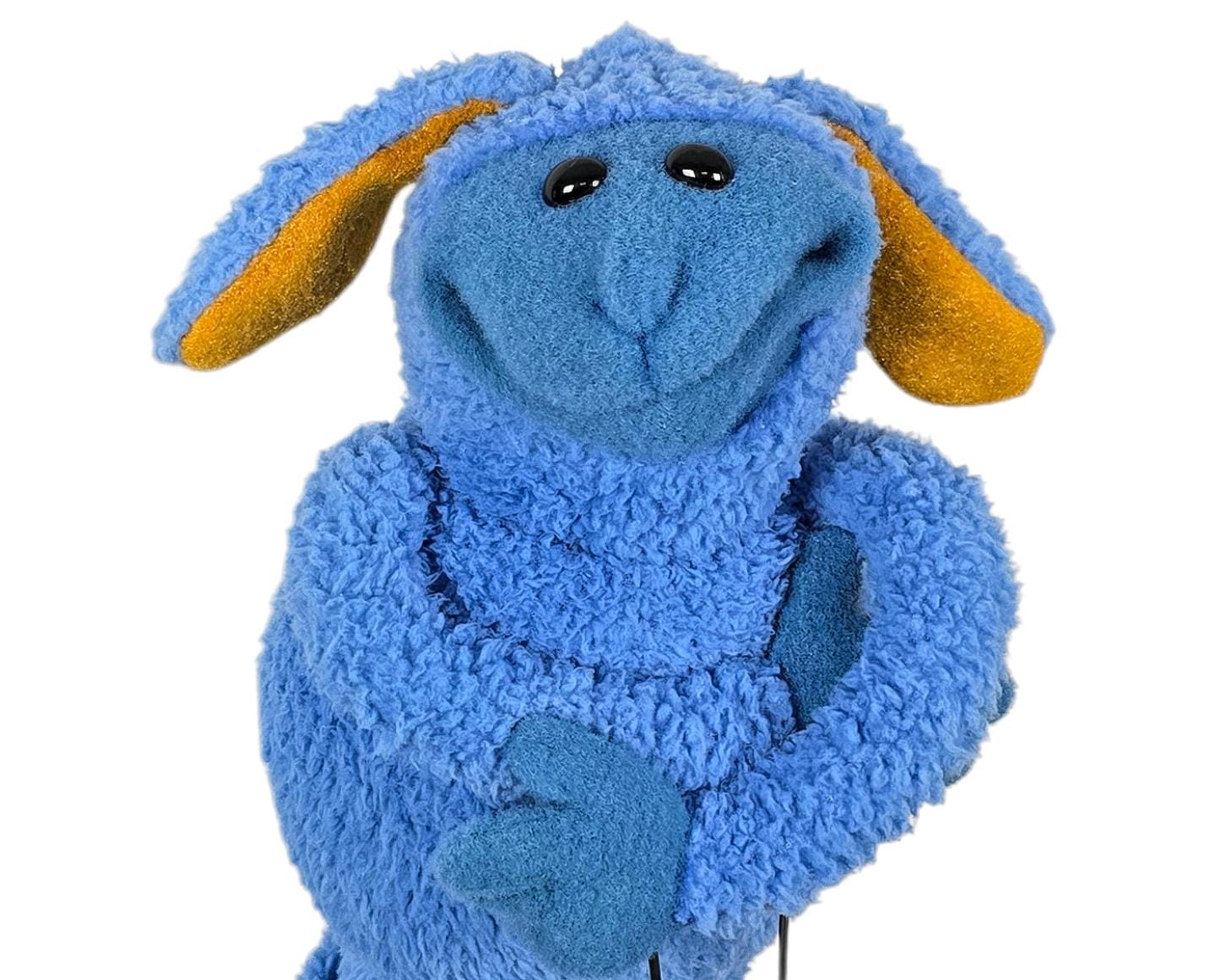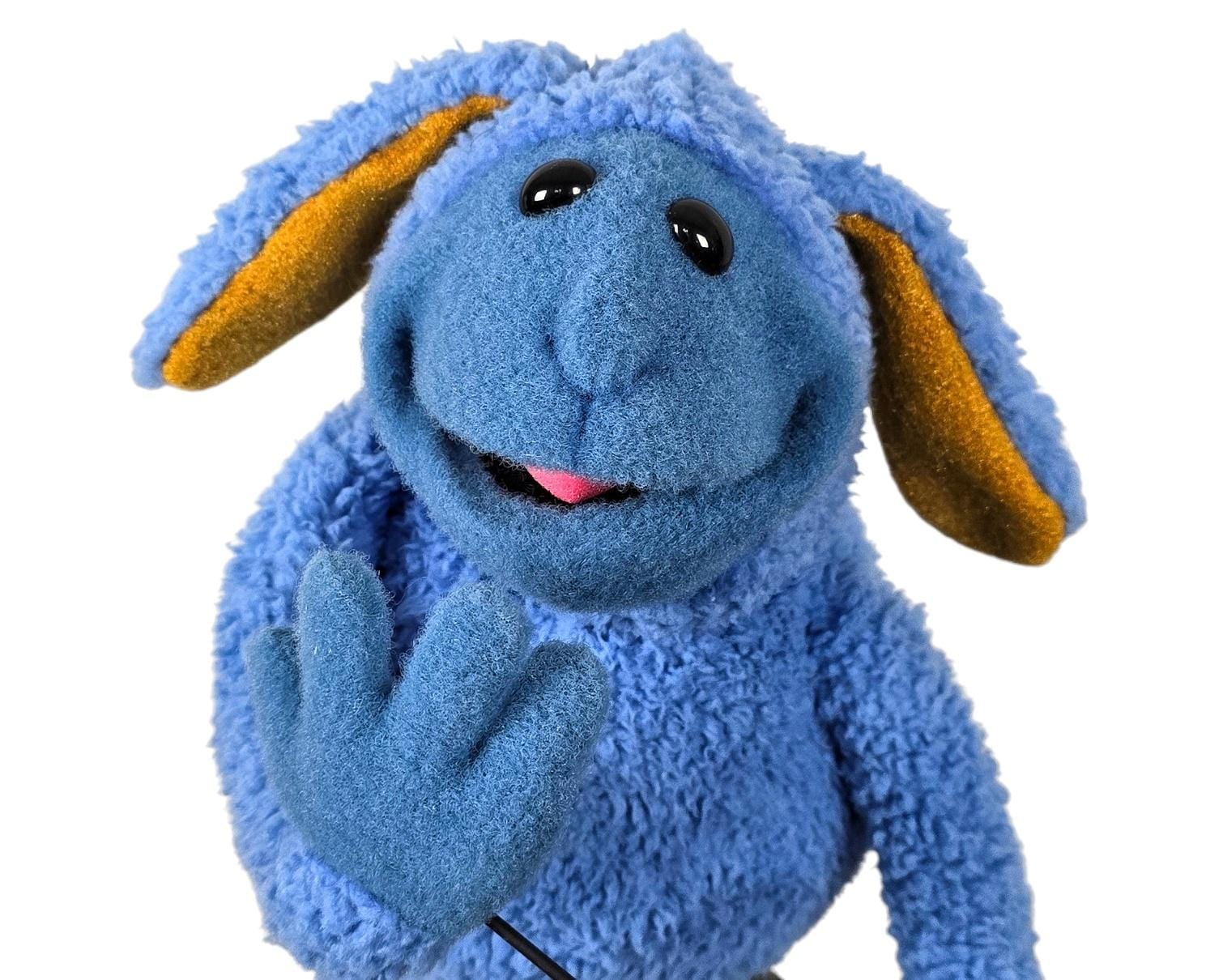 This is a hand and rod puppet of an adorable blue sheep character. It is of professional quality, using quality fabrics. Made of foam and super soft sherpa faux fur, "Fuzzelle" nylon fleece, and F3 Fleece. With small black eyes, and permanent arm rods. See the attached photos for more!