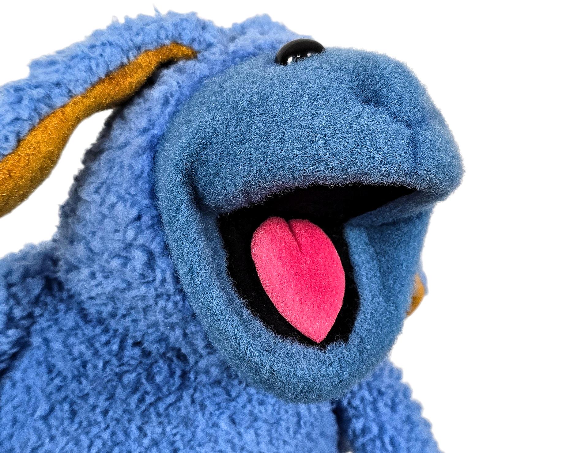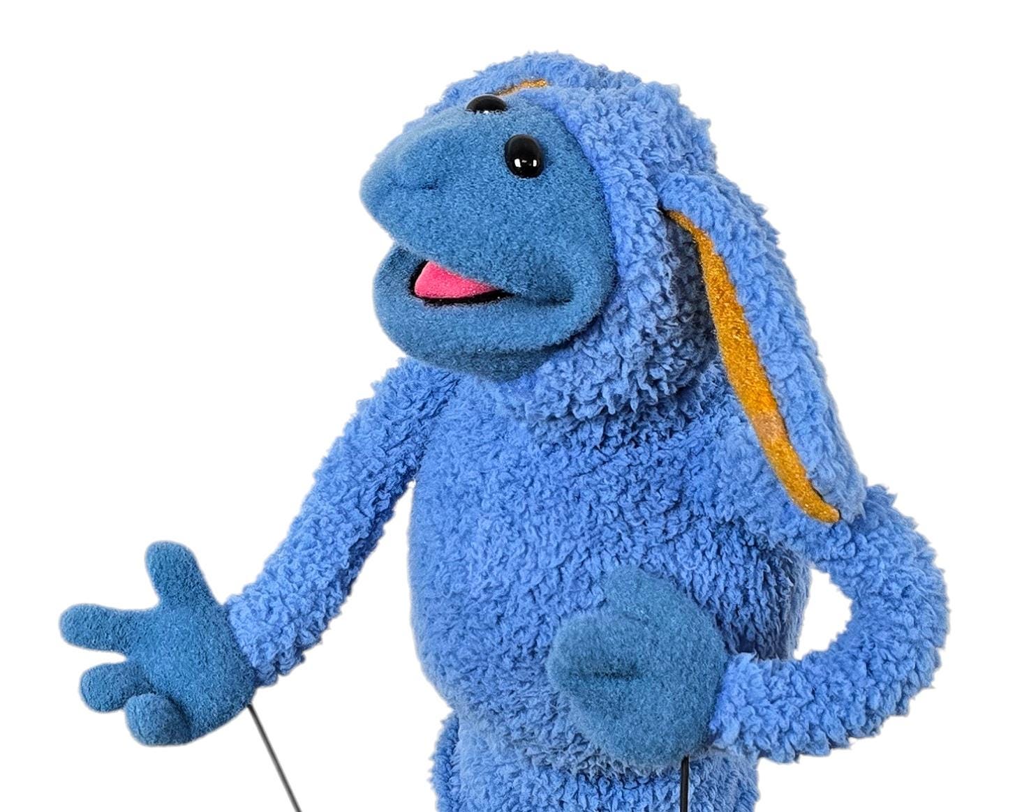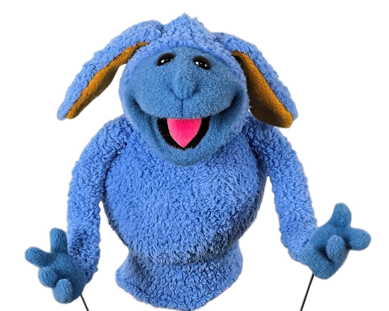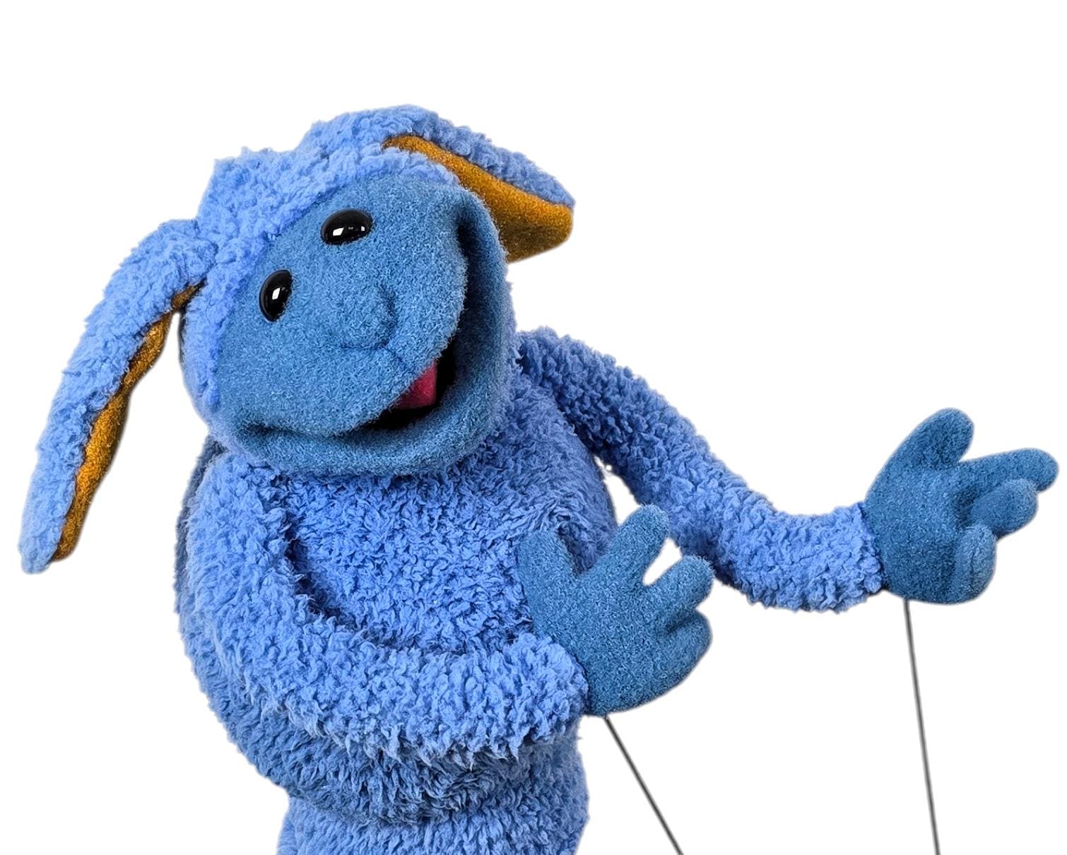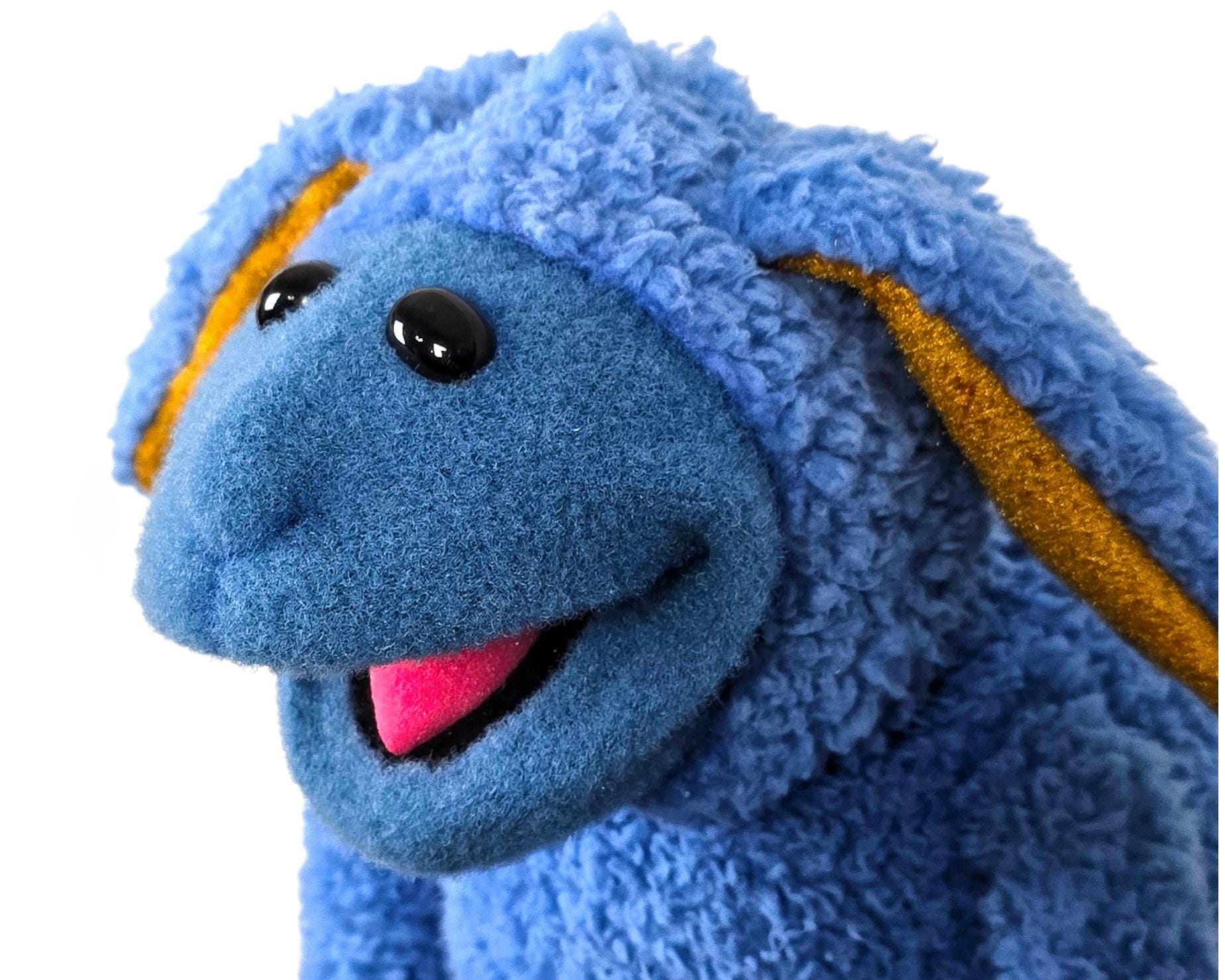 This is a hand and rod puppet of an adorable blue sheep character. It is of professional quality, using quality fabrics. Made of foam and super soft sherpa faux fur, "Fuzzelle" nylon fleece, and F3 Fleece. With small black eyes, and permanent arm rods. See the attached photos for more!