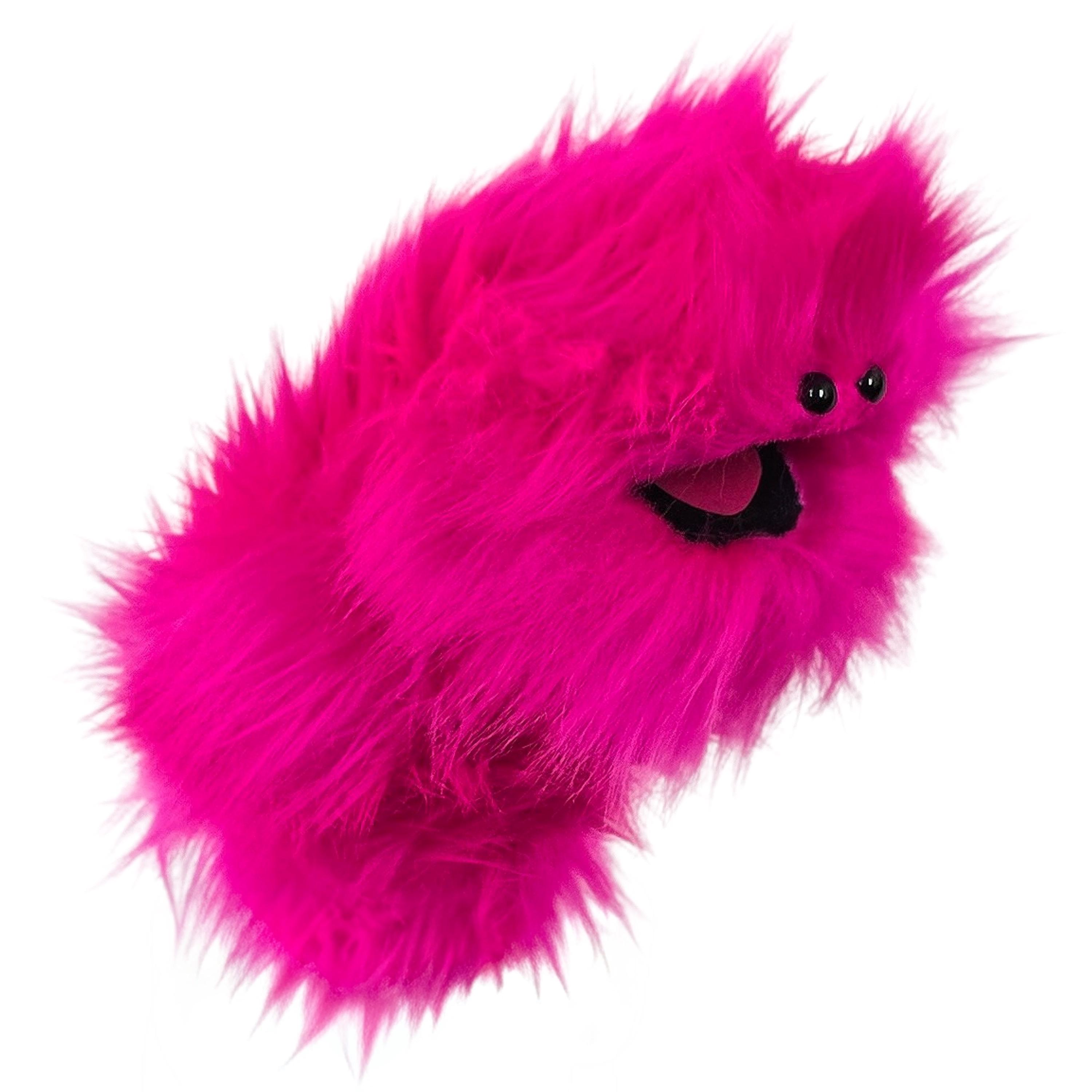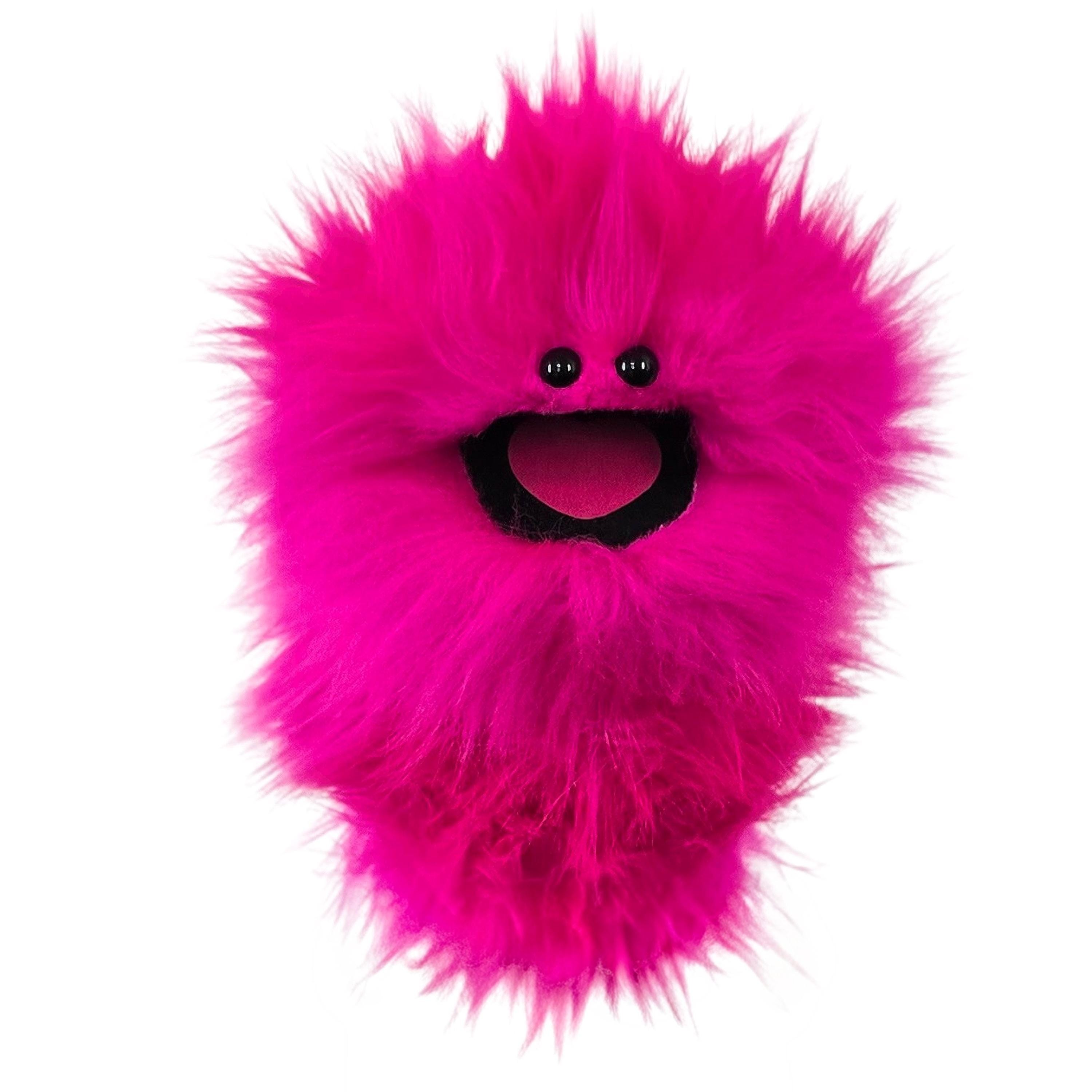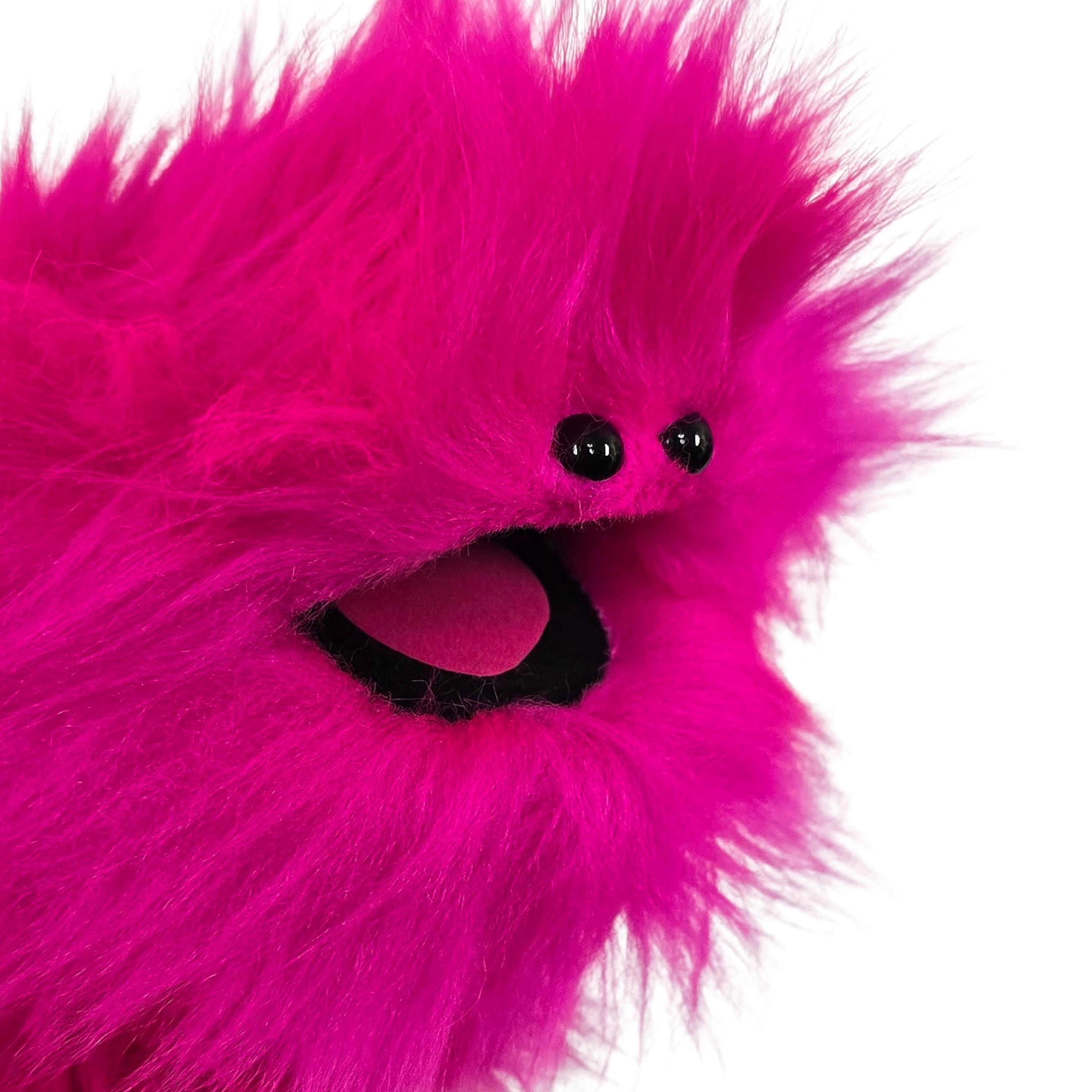 This is a practice puppet of a pink/ fuchsia monster with beady eyes. Perfect for puppetry practice! It is of professional quality, using quality fabrics. Made of faux fur. See the attached photos for more!